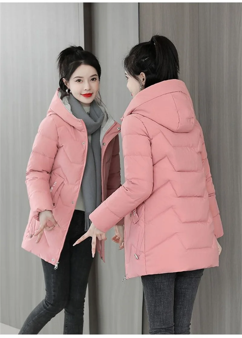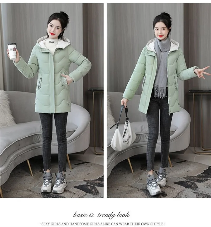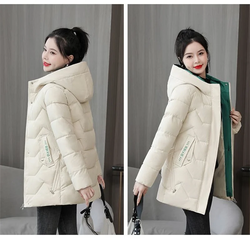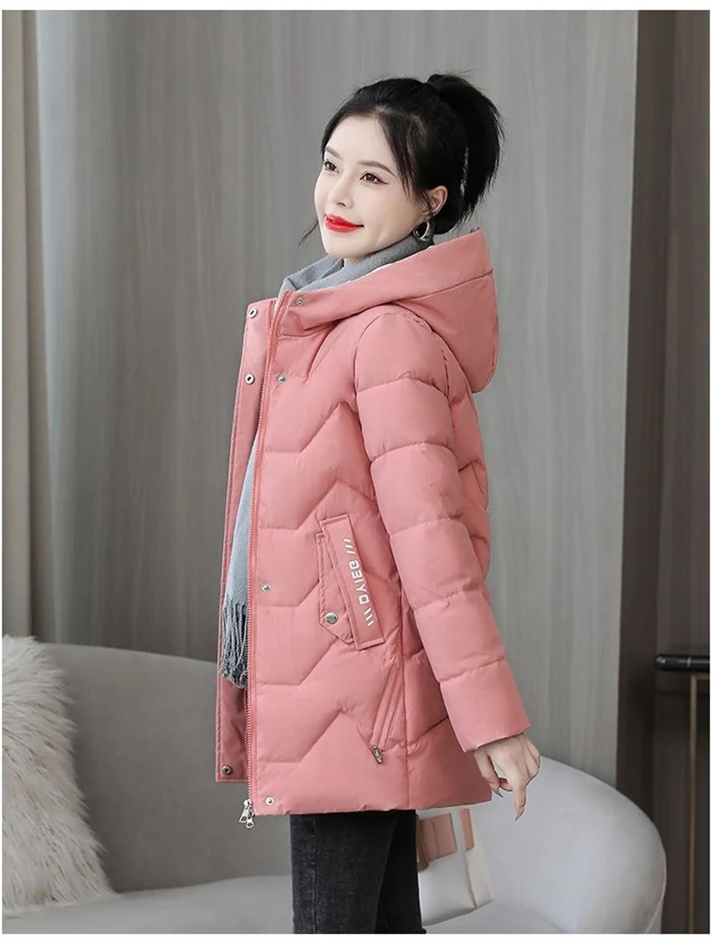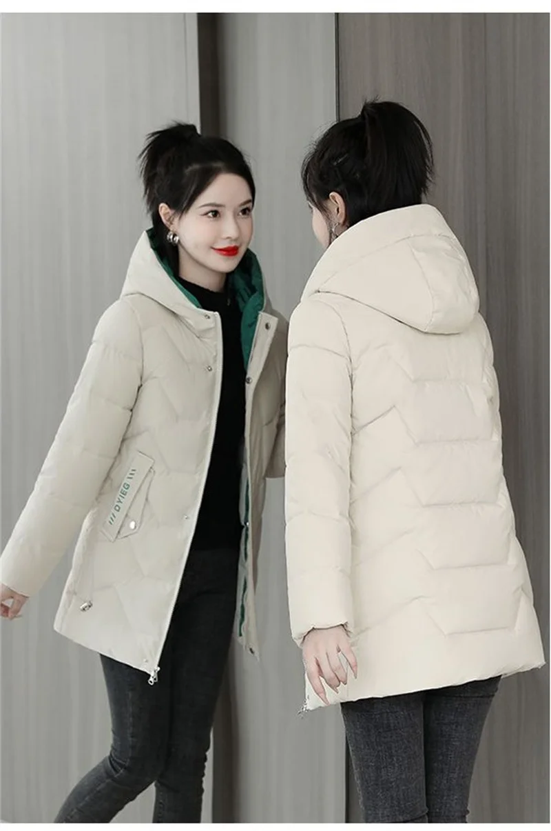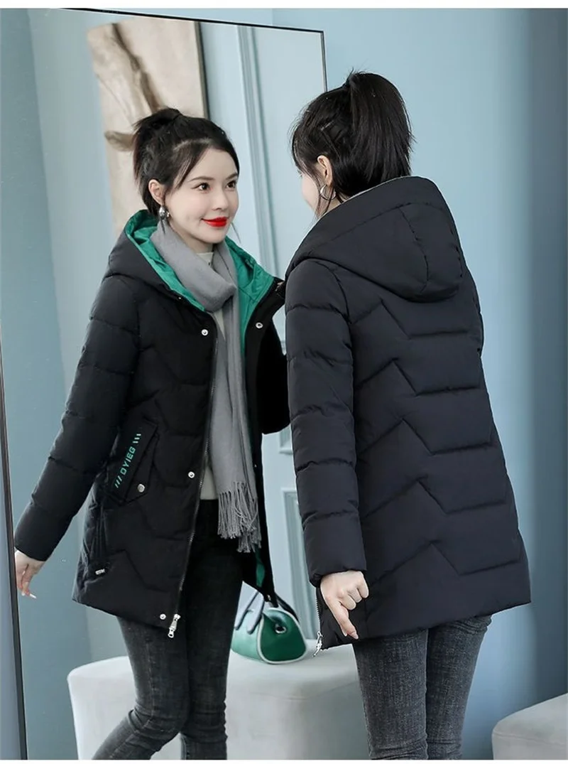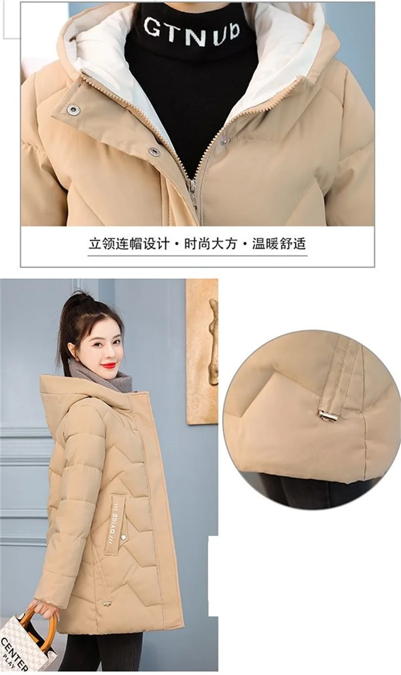 New Winter Printed Letters Women Jacket Long Hooded Parka Cotton Padded Jacket Female Parkas Casual Warm Outwear Snow Wear Coats