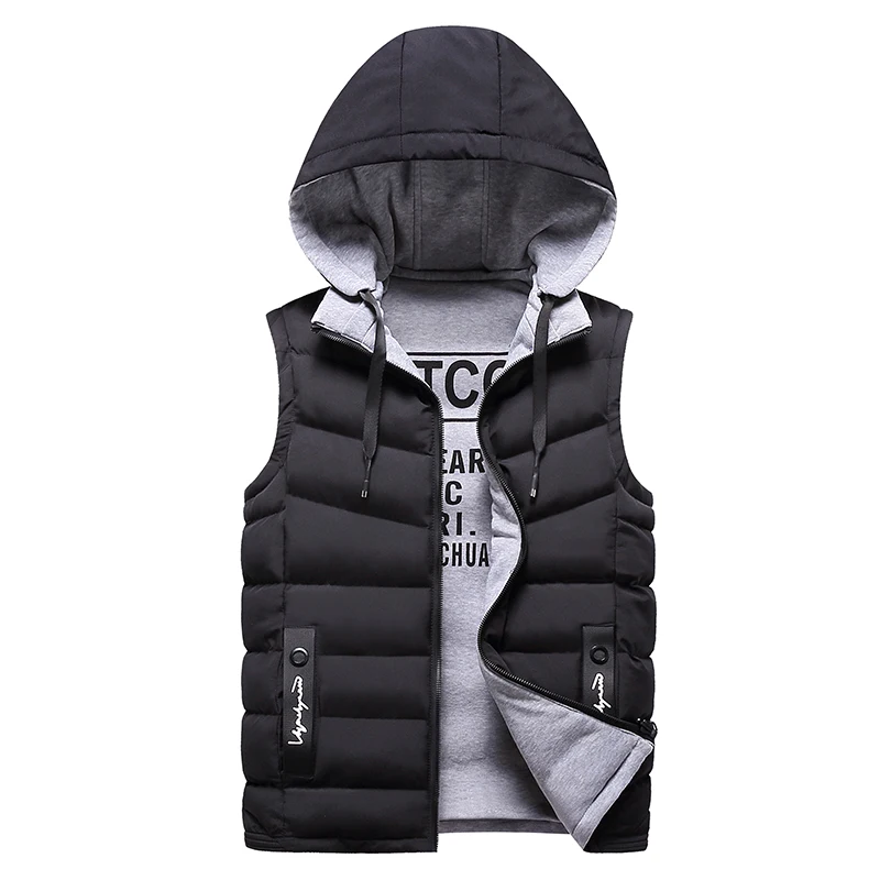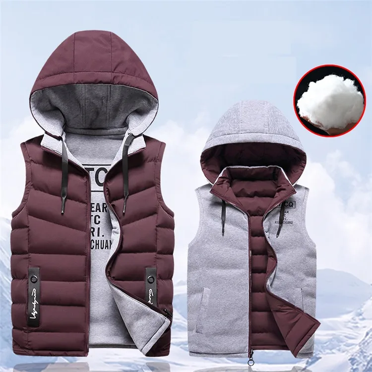 New Winter Warm Vest Down Vest Men Casual Waistcoat Sleeveless Jackets Autumn Men Hooded Vest Worn On Both Sides Hat Detachable