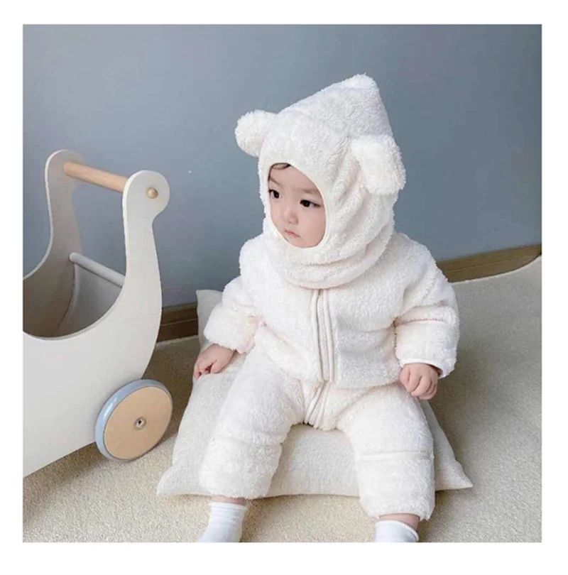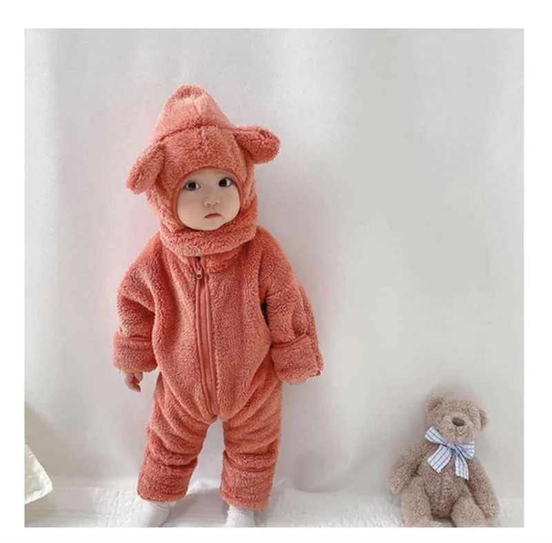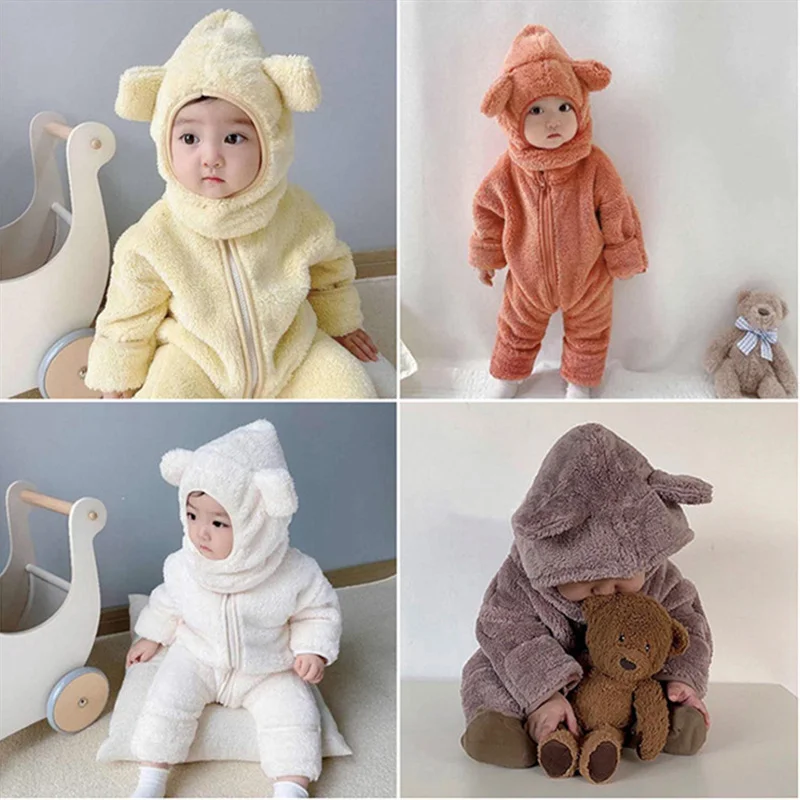 Newborn Baby Rompers Autumn Winter Warm Fleece Baby Boys Costume Girls Clothing Solid Color Overall Baby Hooded Jumpsuit