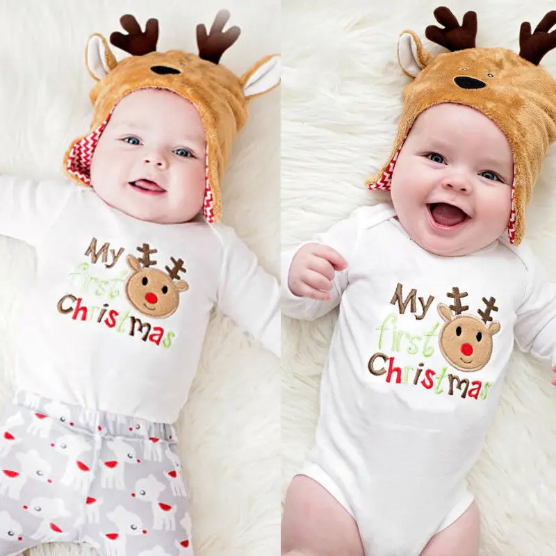 Newborn Infant Kids Baby Boys Girls Cotton Christmas Romper Jumpsuit Clothes Outfit PP03