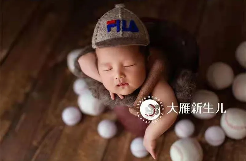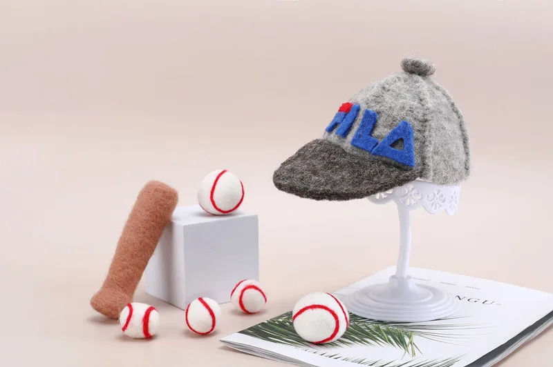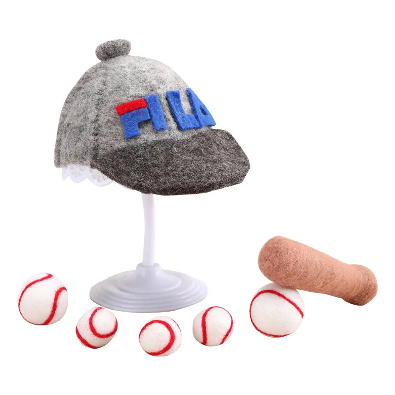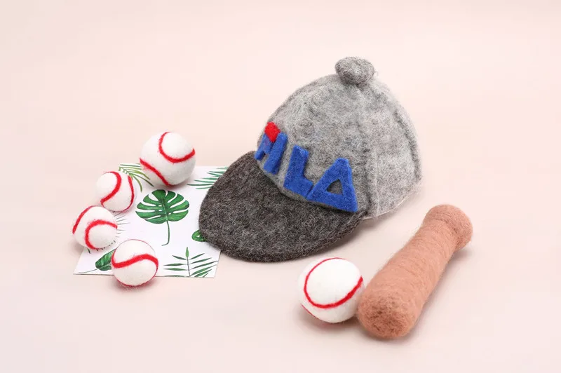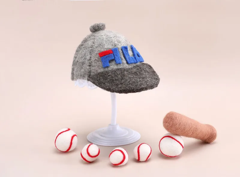 Newborn Photography Accessories Handmade Wool Felt Baseball Cap Set Creative Baby Boy Photo Props Sports Theme Hat Background