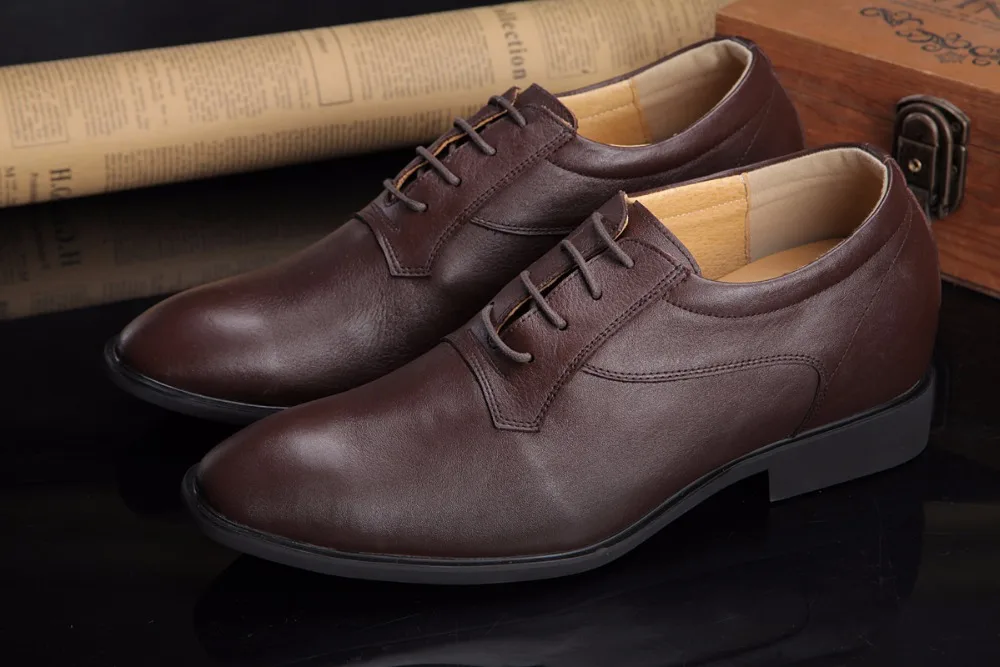 Newest 2018 Men’s 100% Genuine Leather Dress Oxfords Height Increasing Shoes Grow Taller 5.5CM for Men Wedding Party