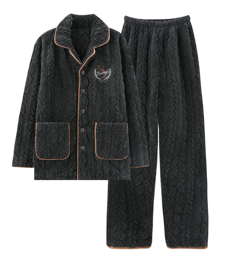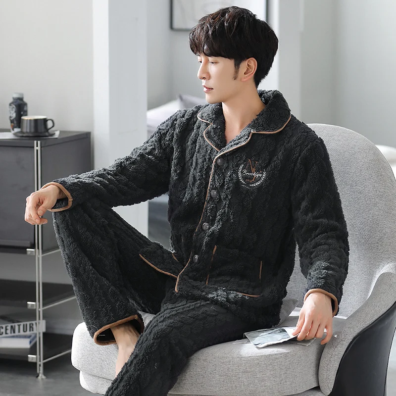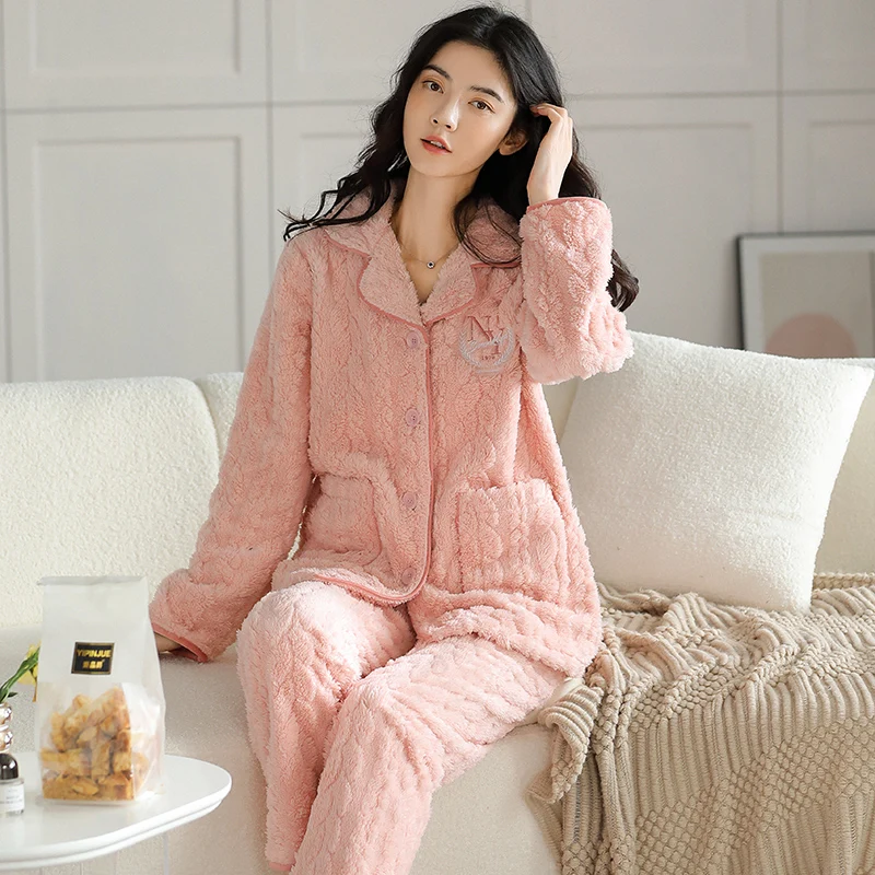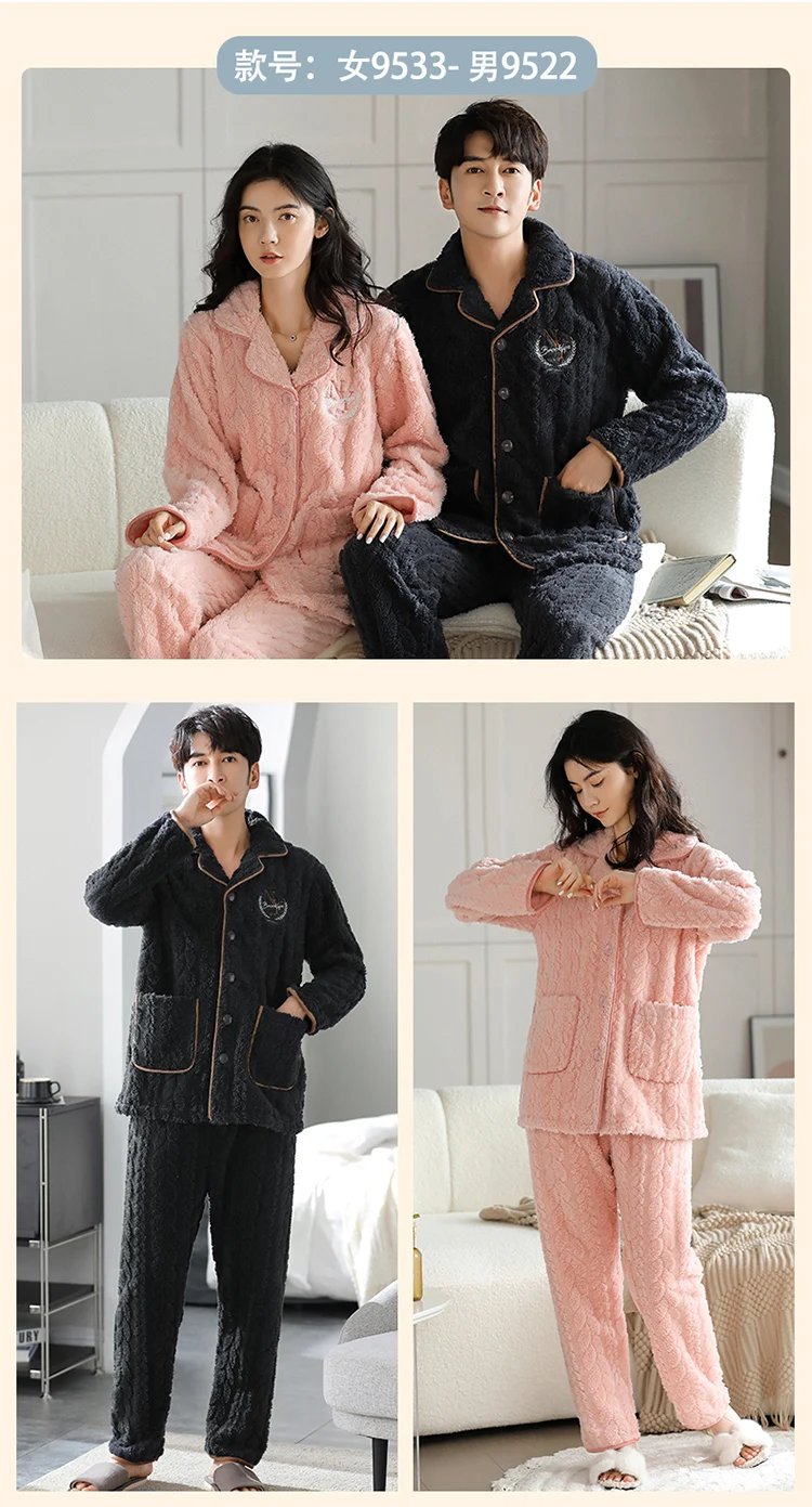 Newest Couple Pajama Set Winter Women Men Turn-down Collar Sleepwear Warm Flannel Pijama