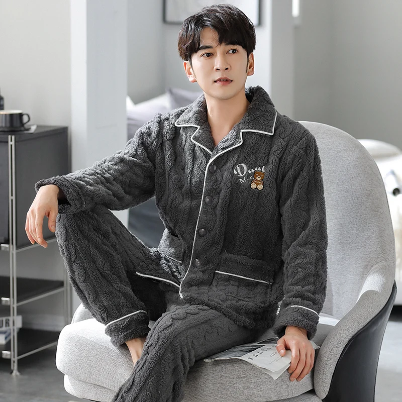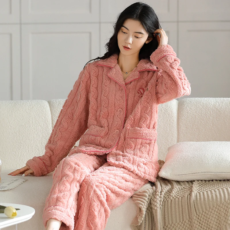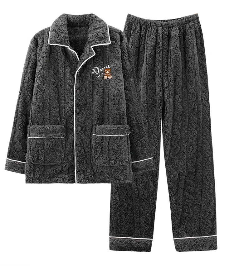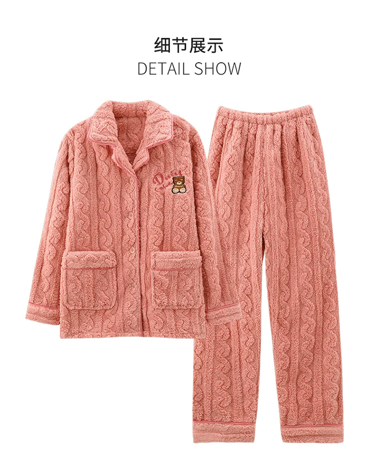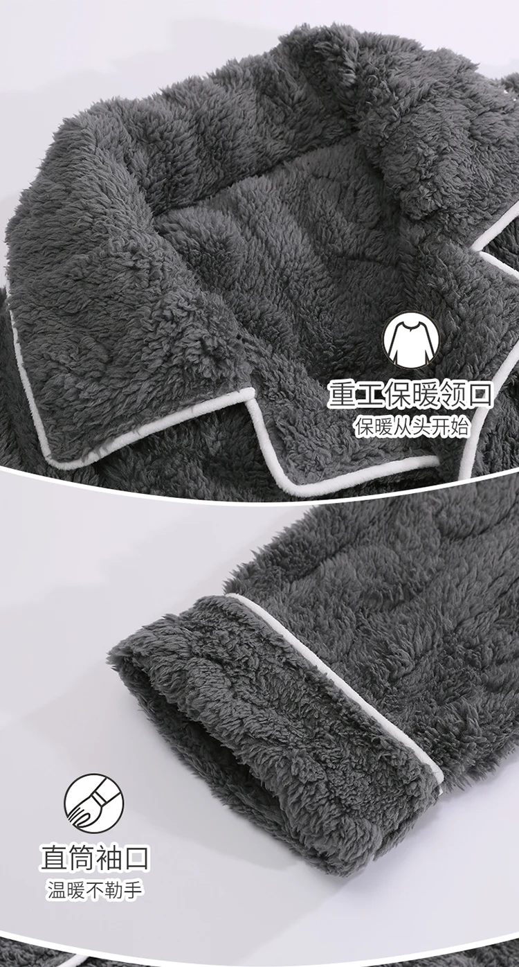 Newest Couple Pajama Set Winter Women Men Turn-down Collar Sleepwear Warm Flannel Pyjamas
