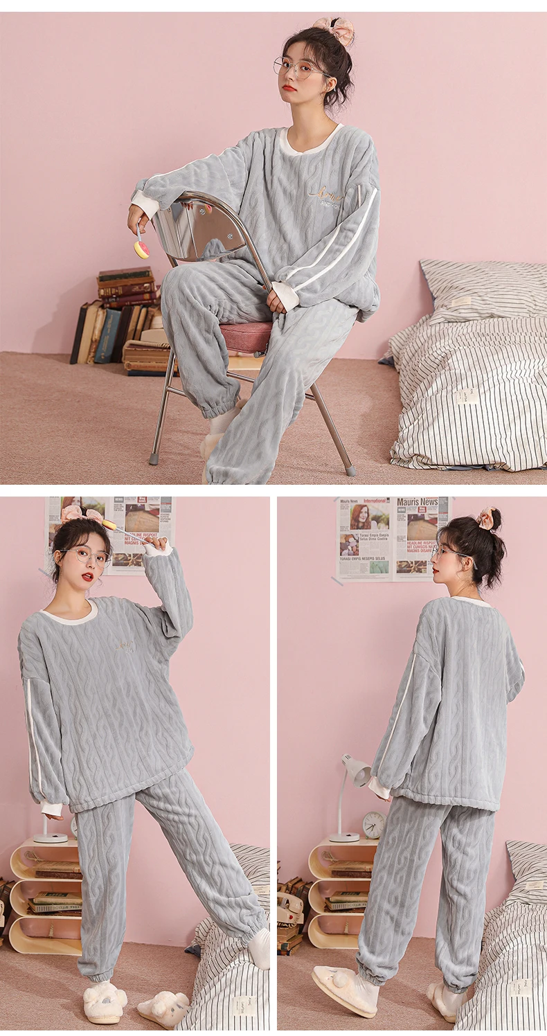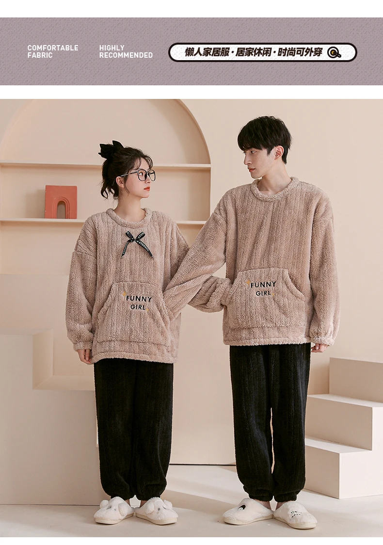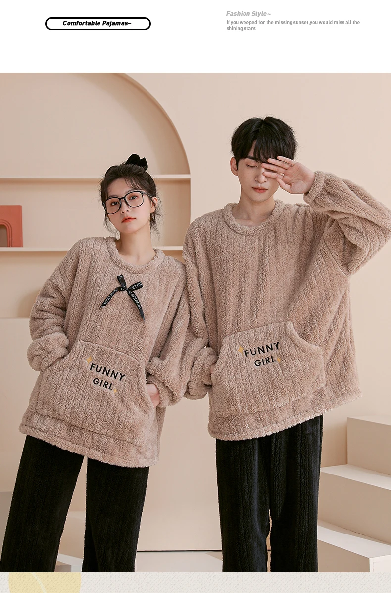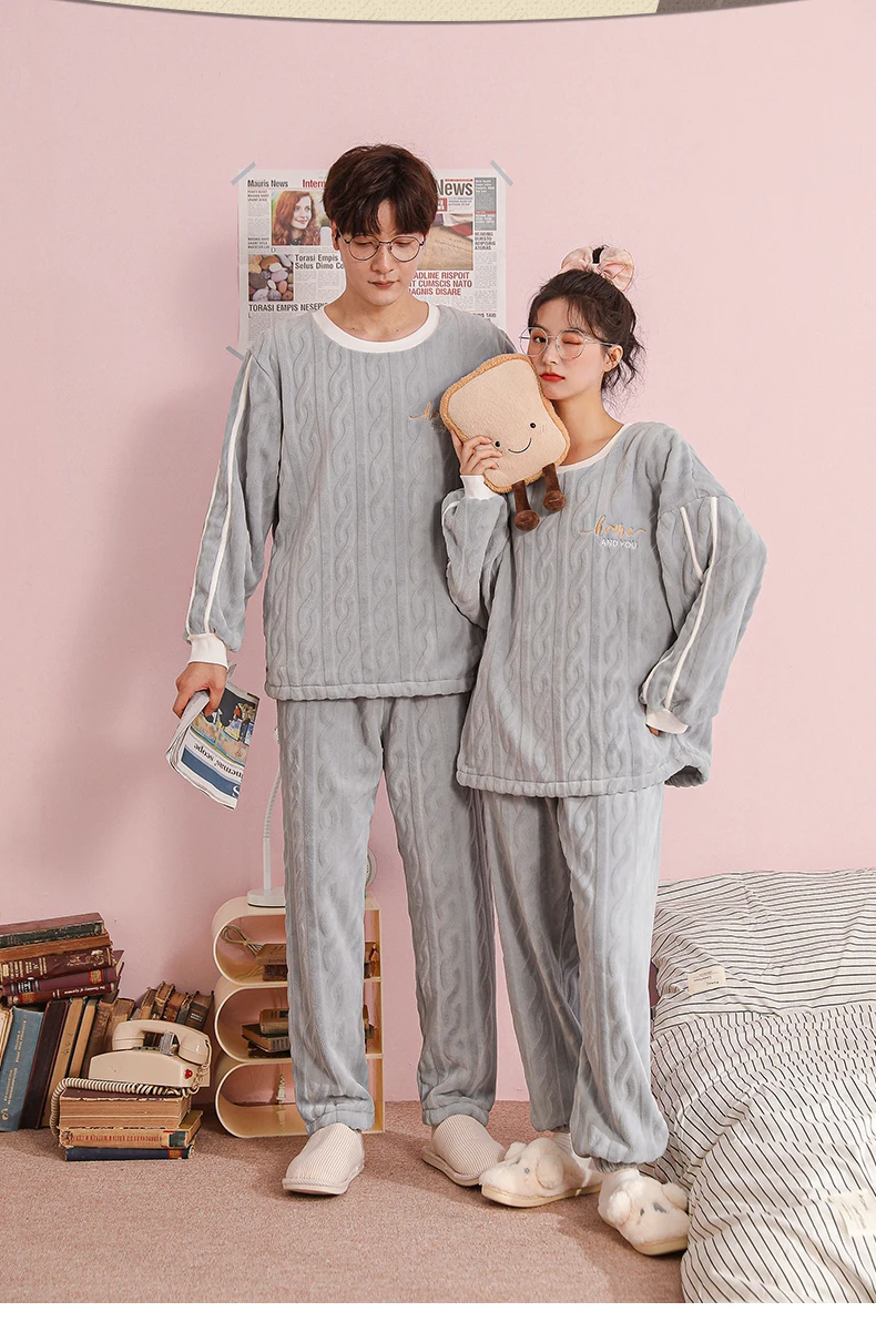 Newest Couple Winter Flannel Pajama Set Fleece Pajamas Sleepwear Homewear Thick Warm Velvet Male And Female Suit Ladies Pyjama