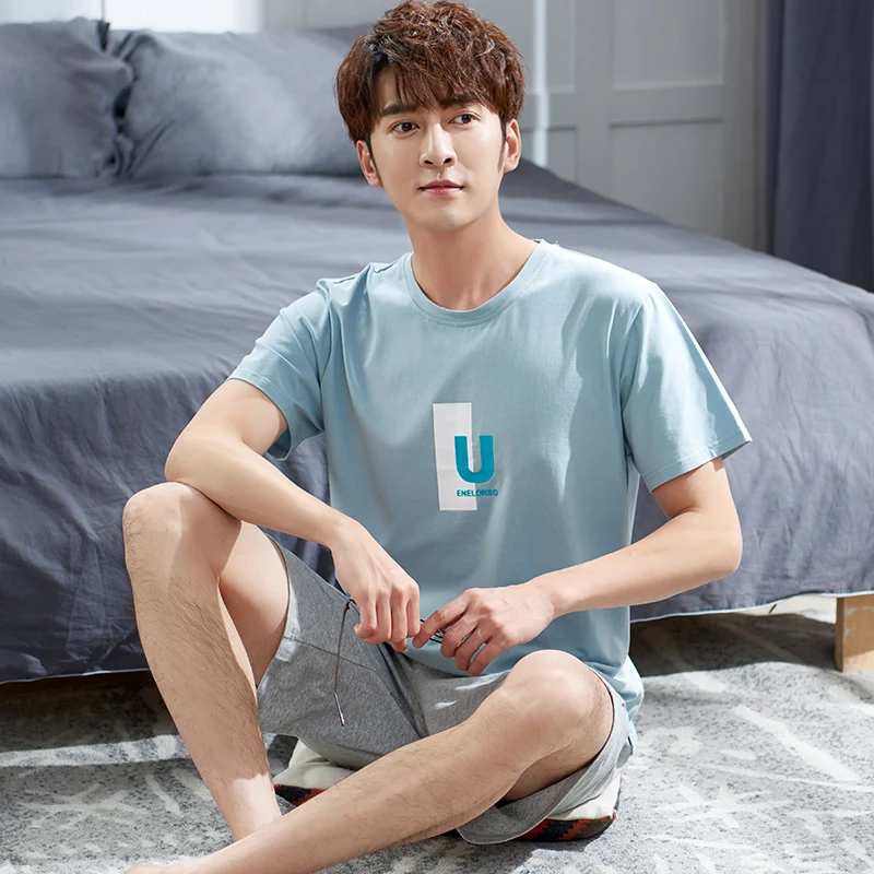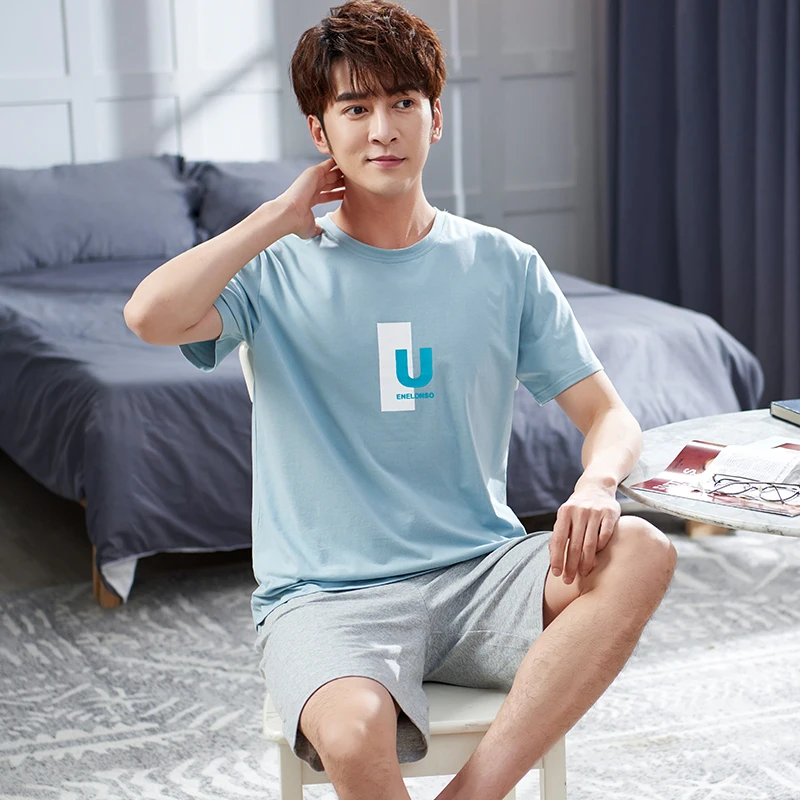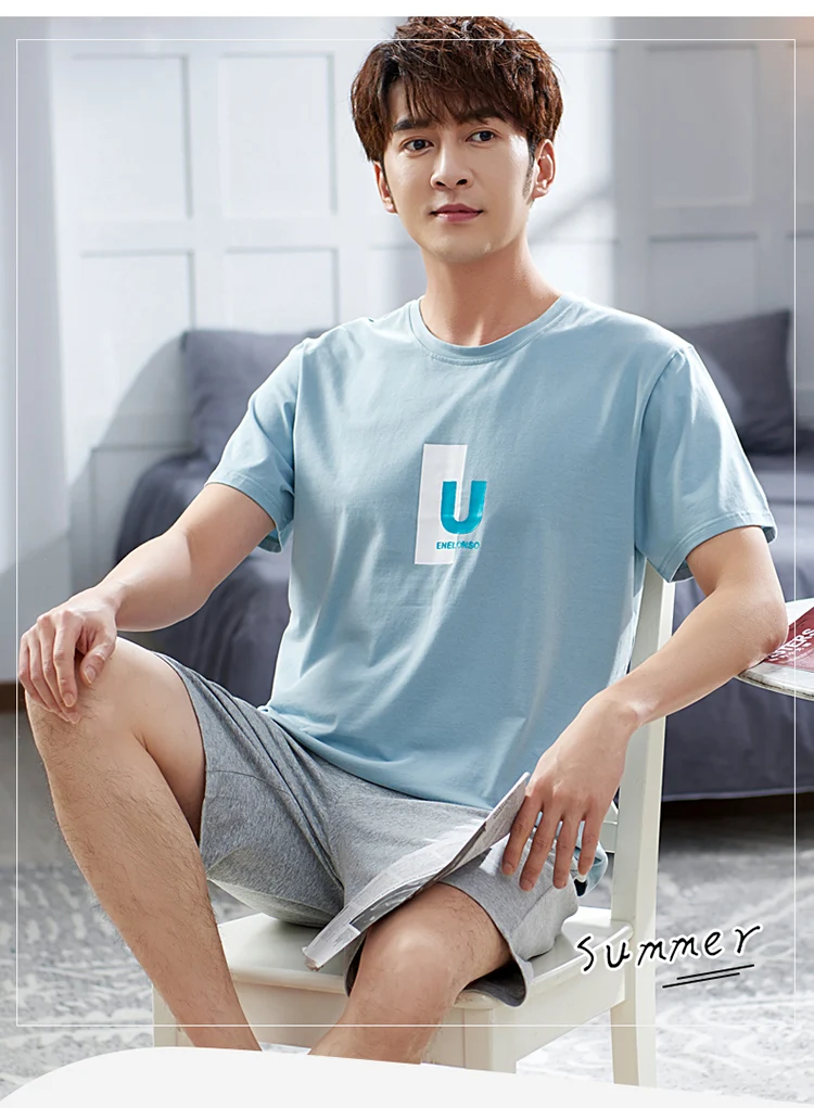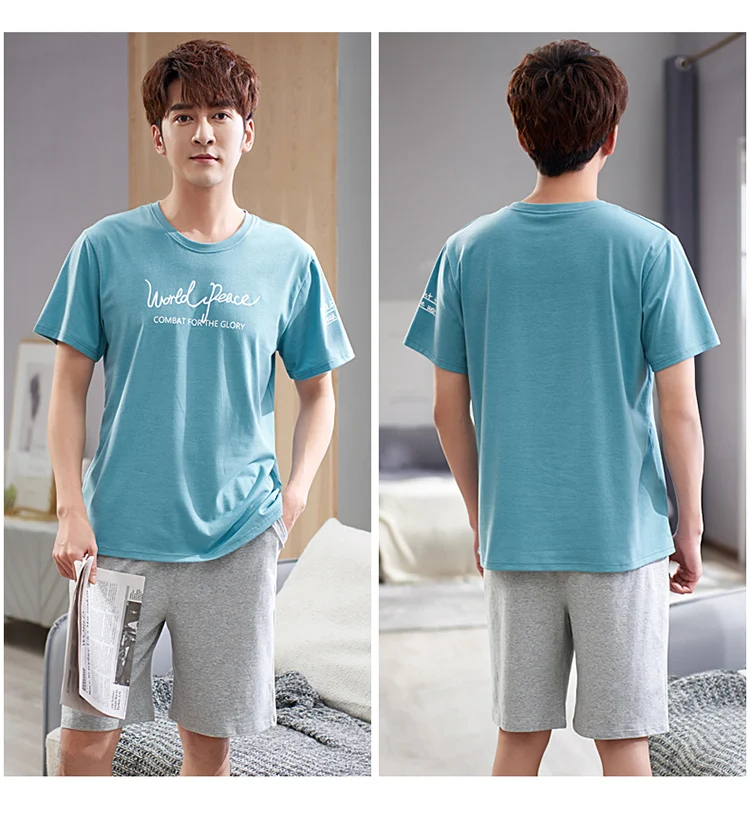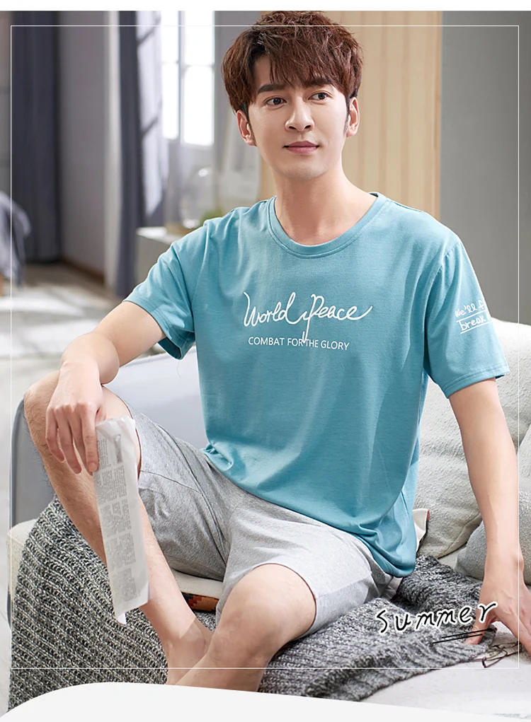 Newest M-4XL Men Pajama Set Solid Round Neck Modal Pijamas Male Summer Casual Sleepwear