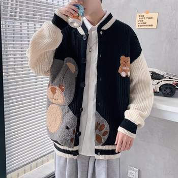 Nice autumn and winter Pop sweater men’s European and American solid color long sleeve knitted cardigan coat