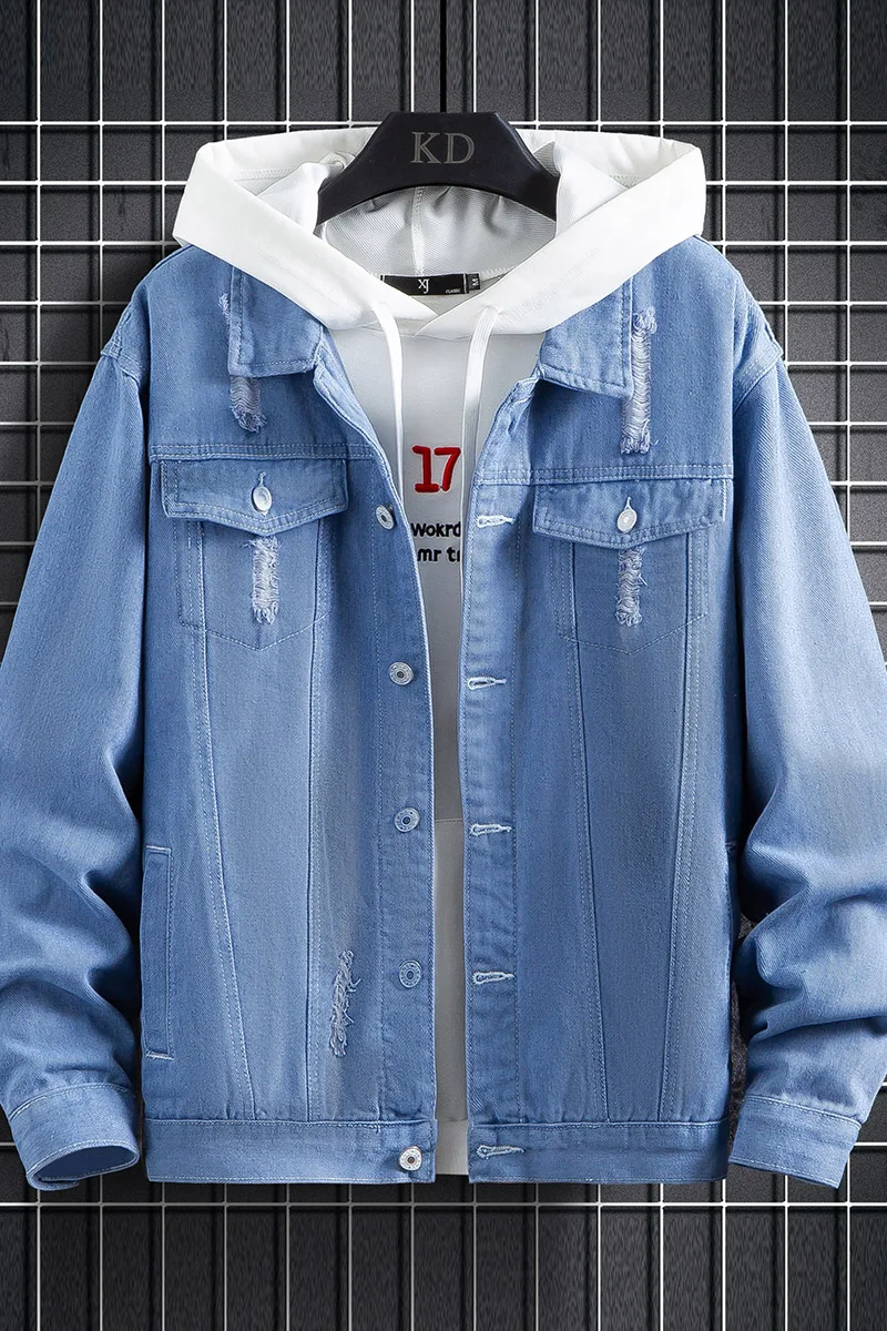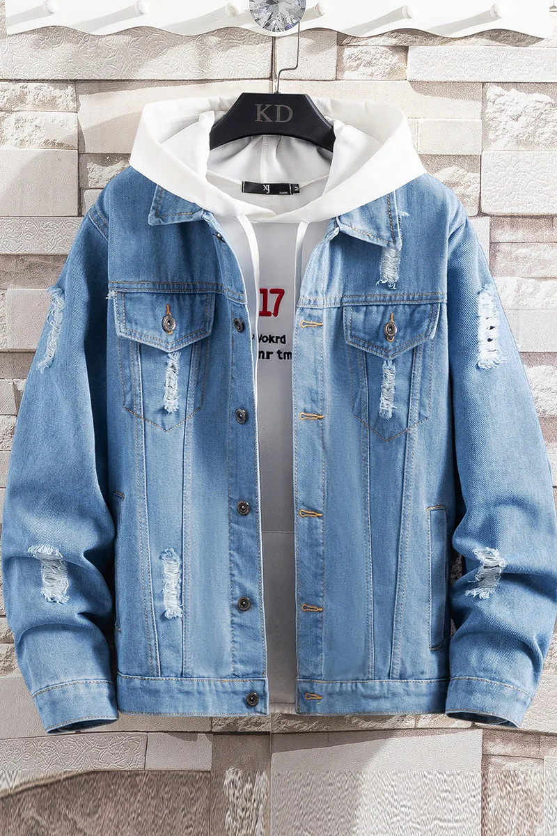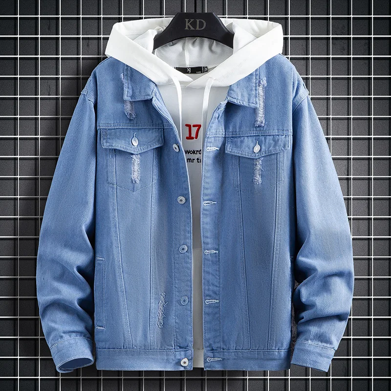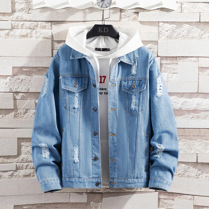 Nice Denim Jacket Men Hole Retro Motorcyle Basic Coat Streetwear Hip Hop Bomber Jacket Cowboy Men’s Jean Jacket Chaqueta Hombre
