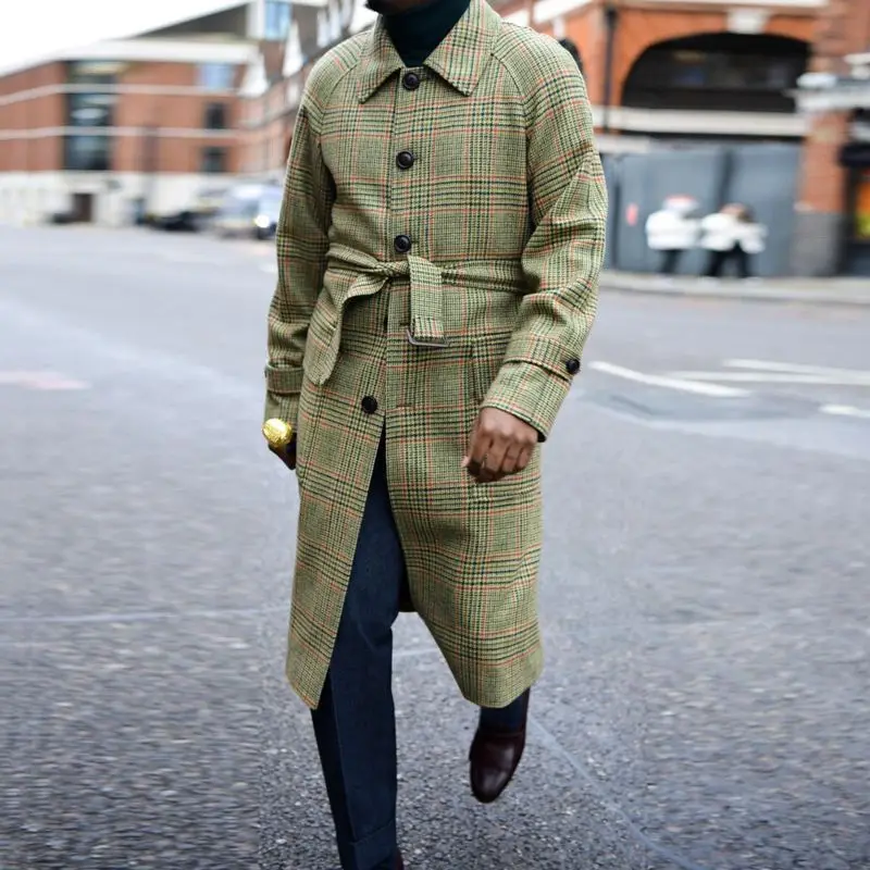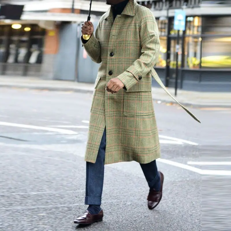 Nice European and American autumn and winter Pop men’s long windbreaker over the knee coat
