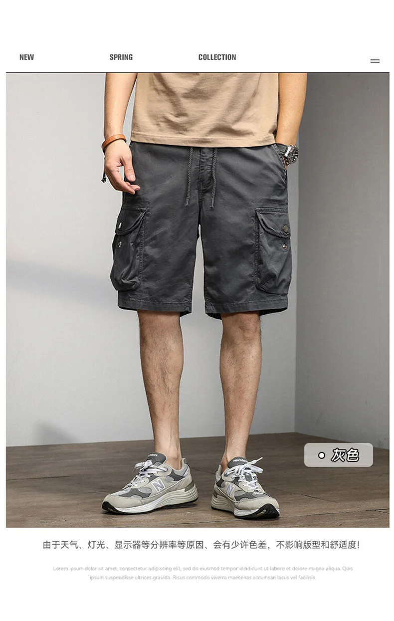 Nice New Men’s Cargo Shorts Summer Men Casual Cotton Short Pants Sport Solid Color Knee Length Shorts Male Multi-Pocket Military