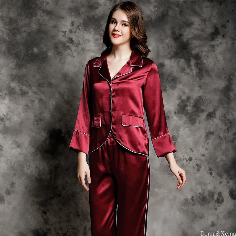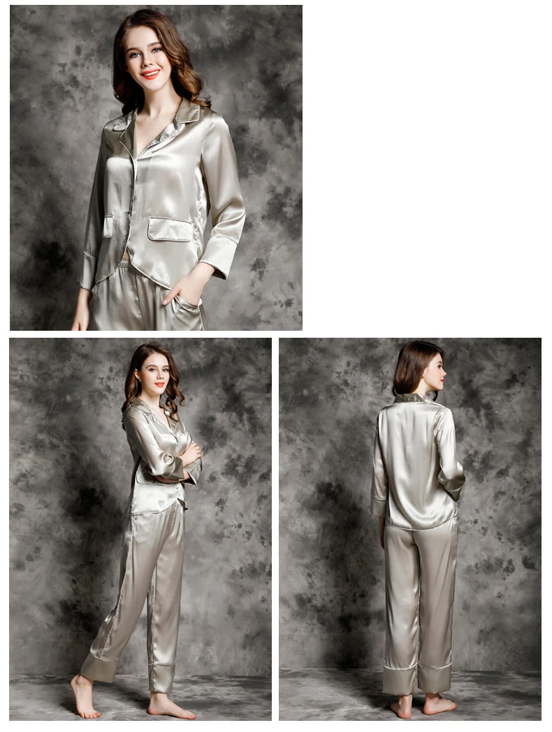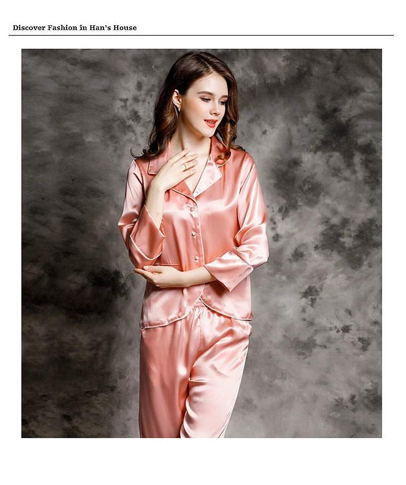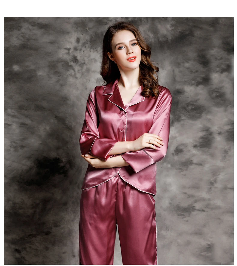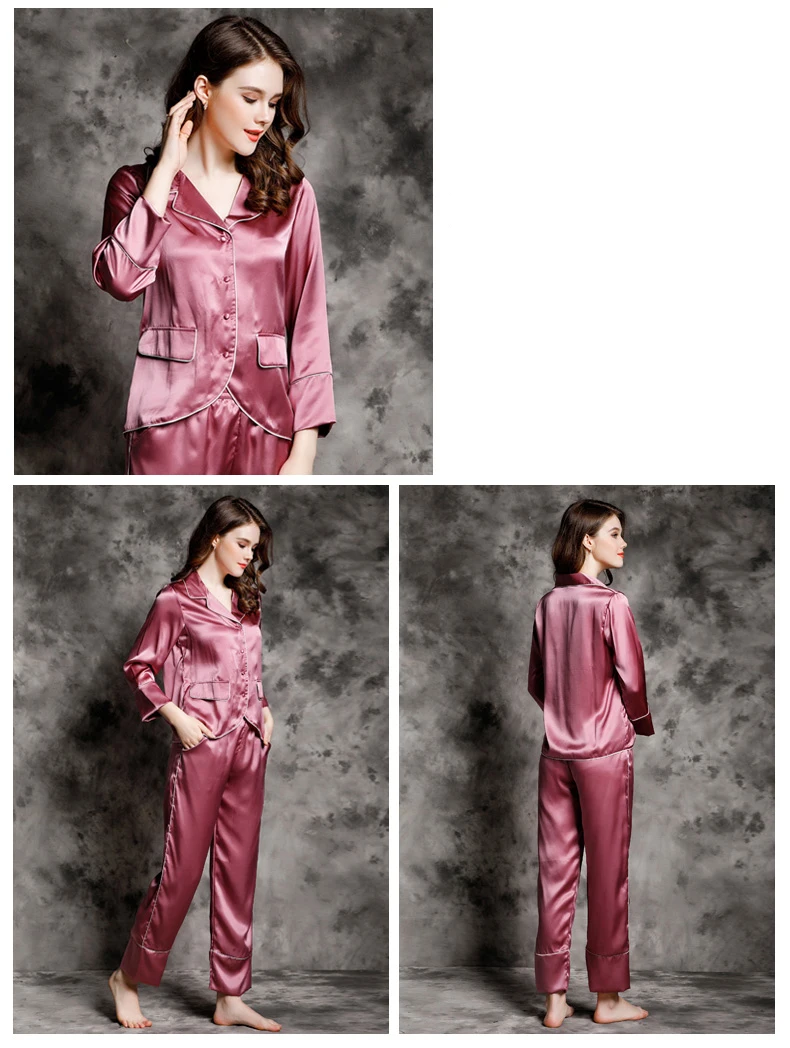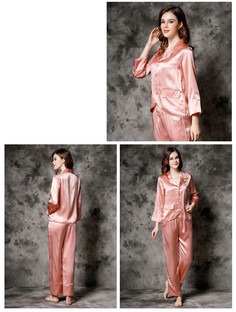Nightgowns Women 100% Silk Nightcloth Two Pieces Set Long Sleeve Elastic Waist Long Pants Loose Suits 5 Co’lo’r’s All Season