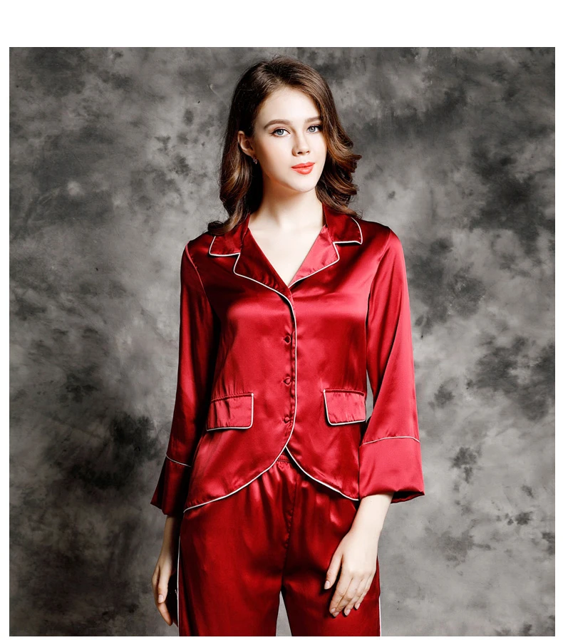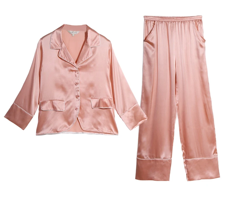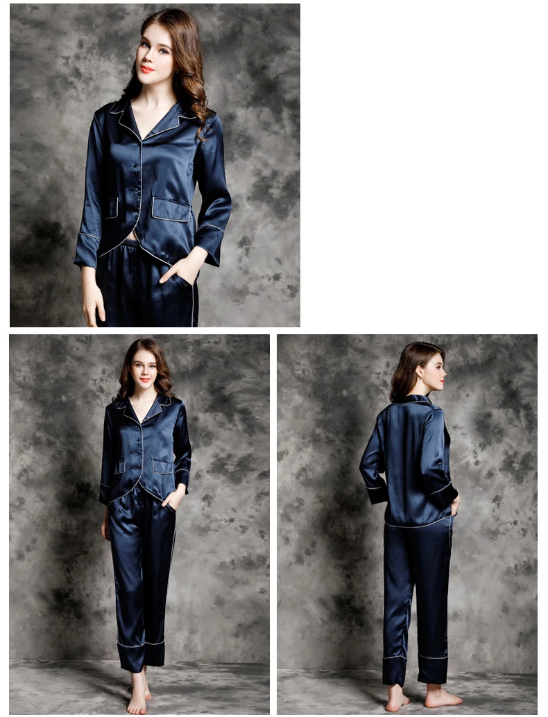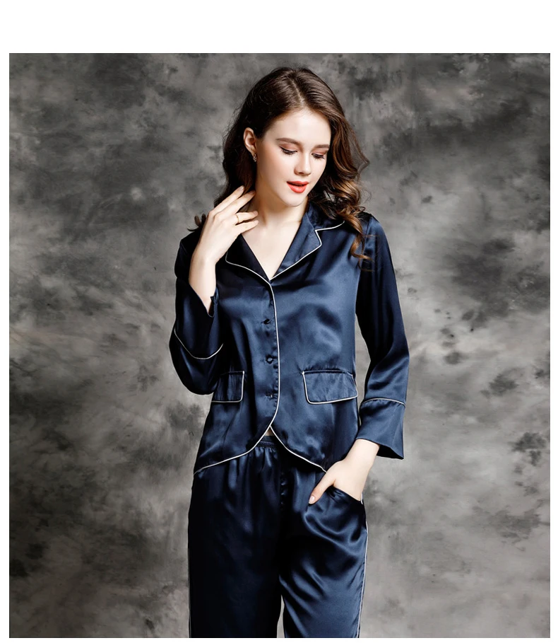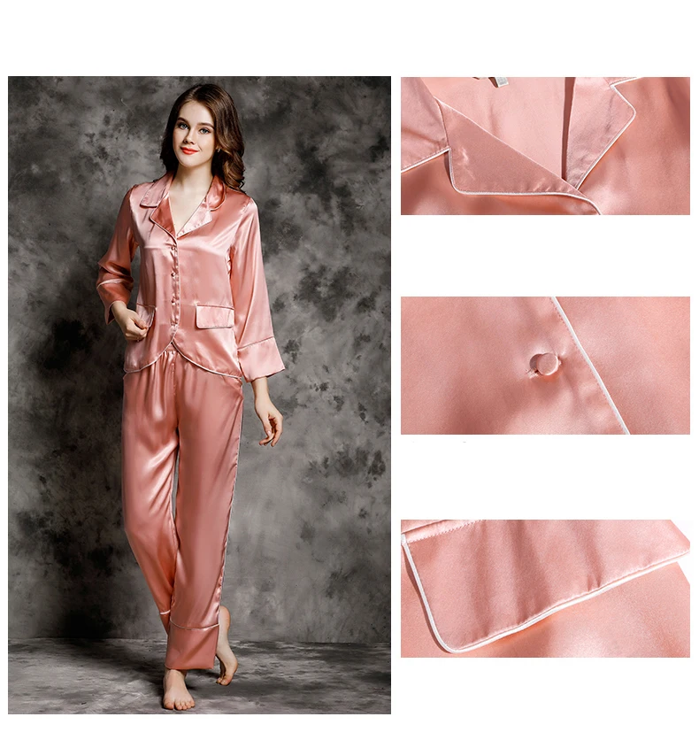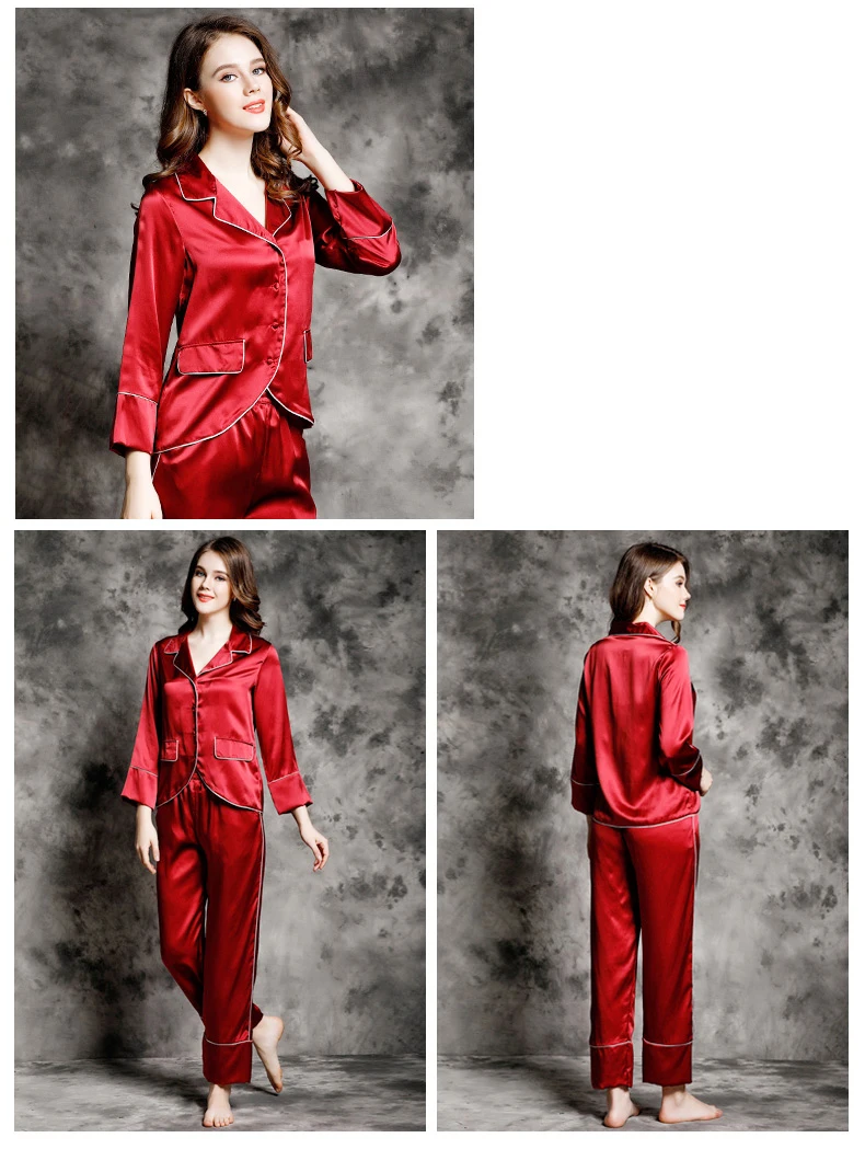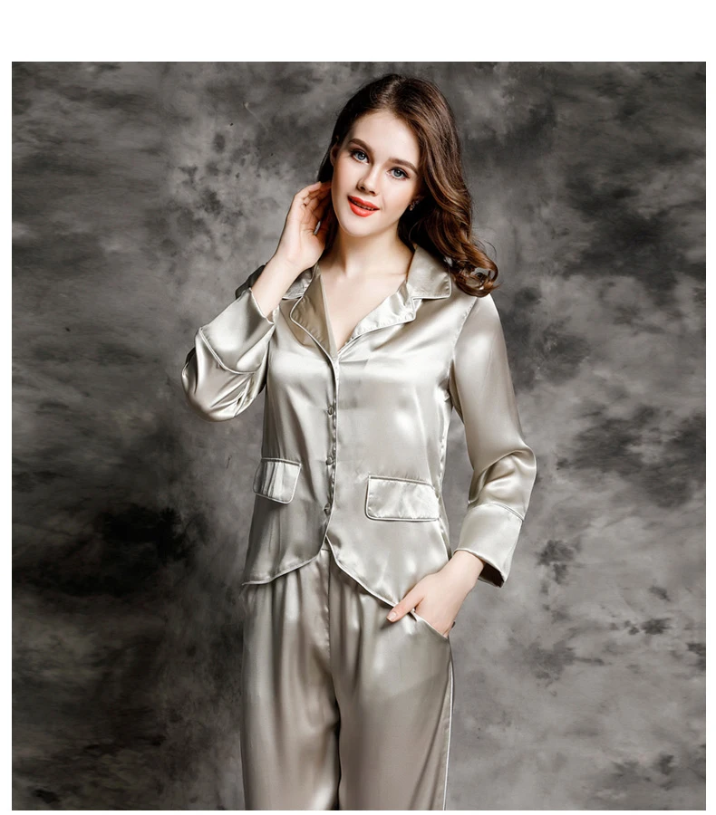Nightgowns Women 100% Silk Nightcloth Two Pieces Set Long Sleeve Elastic Waist Long Pants Loose Suits 5 Co’lo’r’s All Season