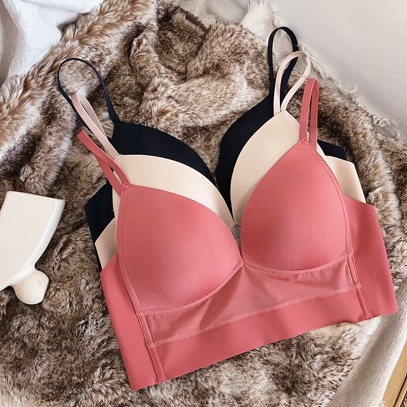 No trace thin-strap bra thin gathered triangle cup underwear inside wear women sexy lingerie plus size candy color bralette