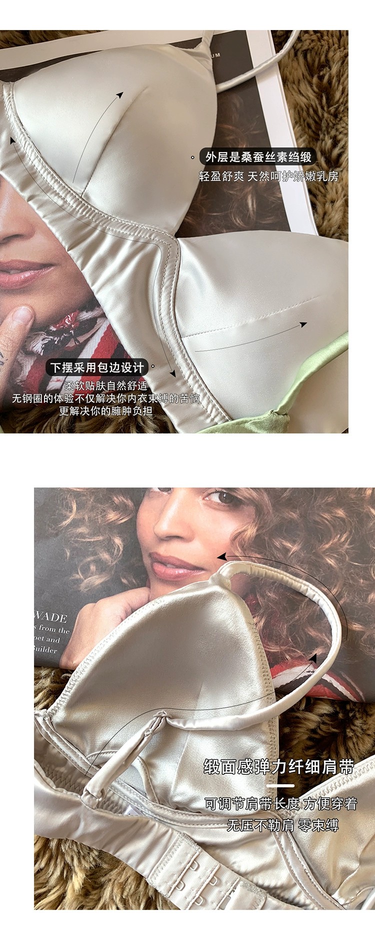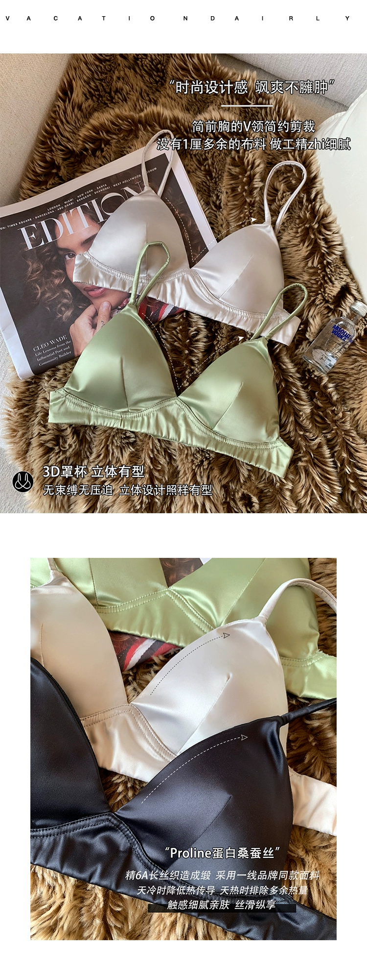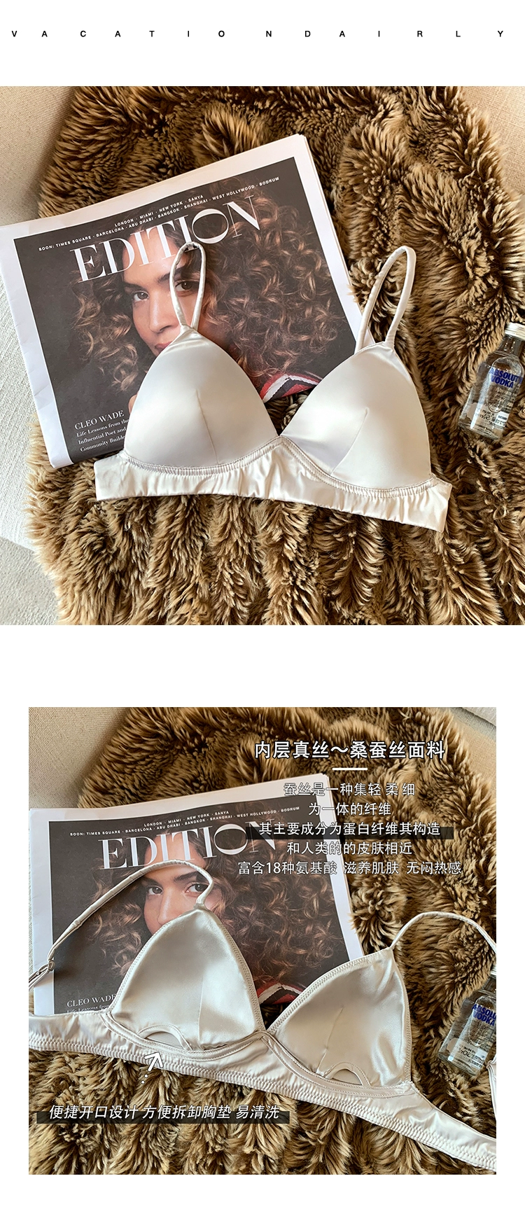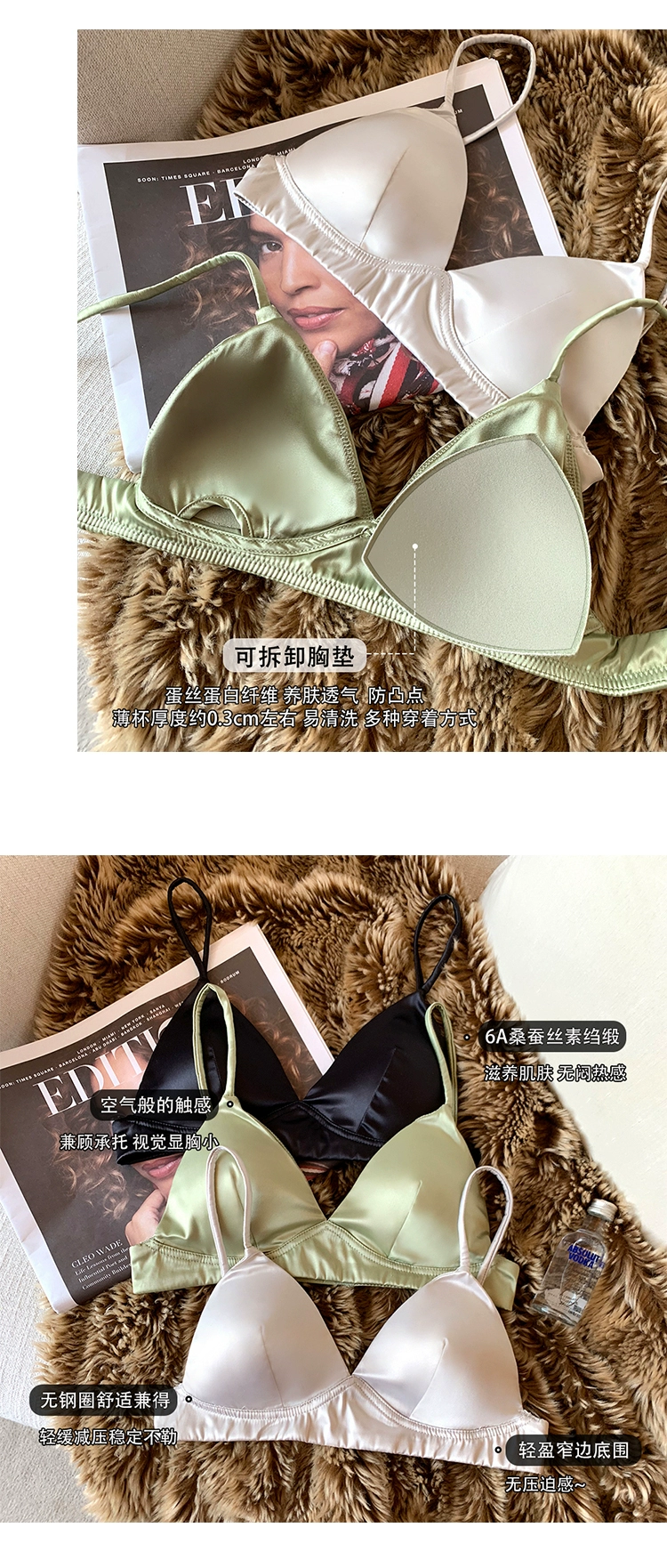 Non-marking mulberry silk underwear women’s thin triangle cup without steel ring lingerie comfortable and breathable girl bra