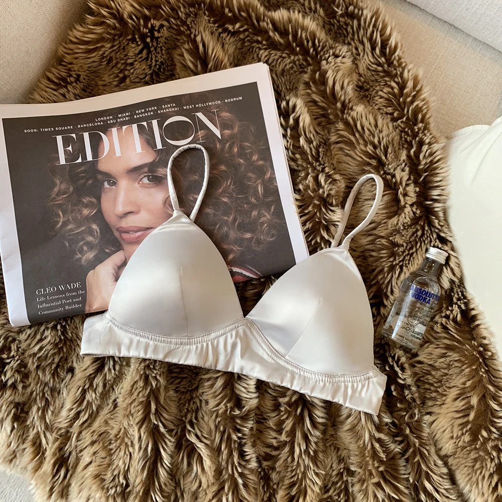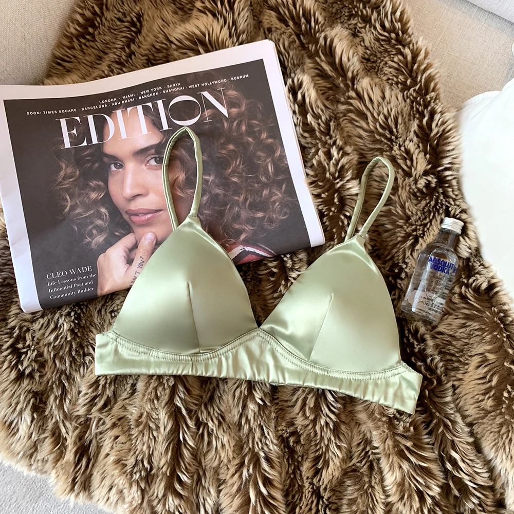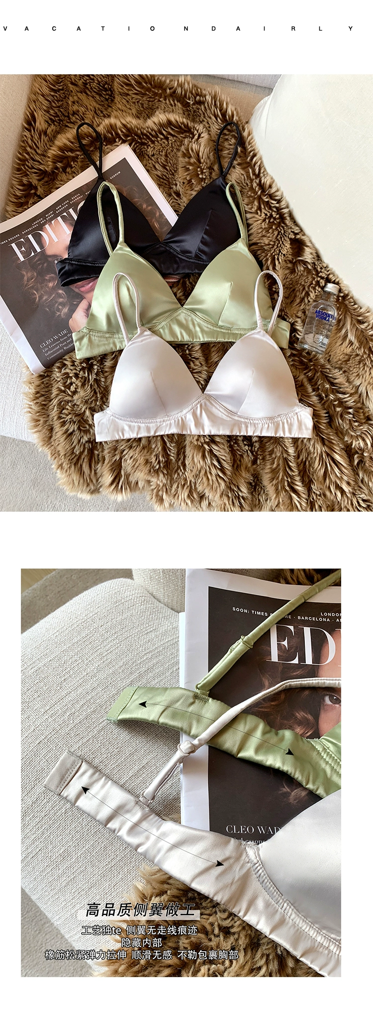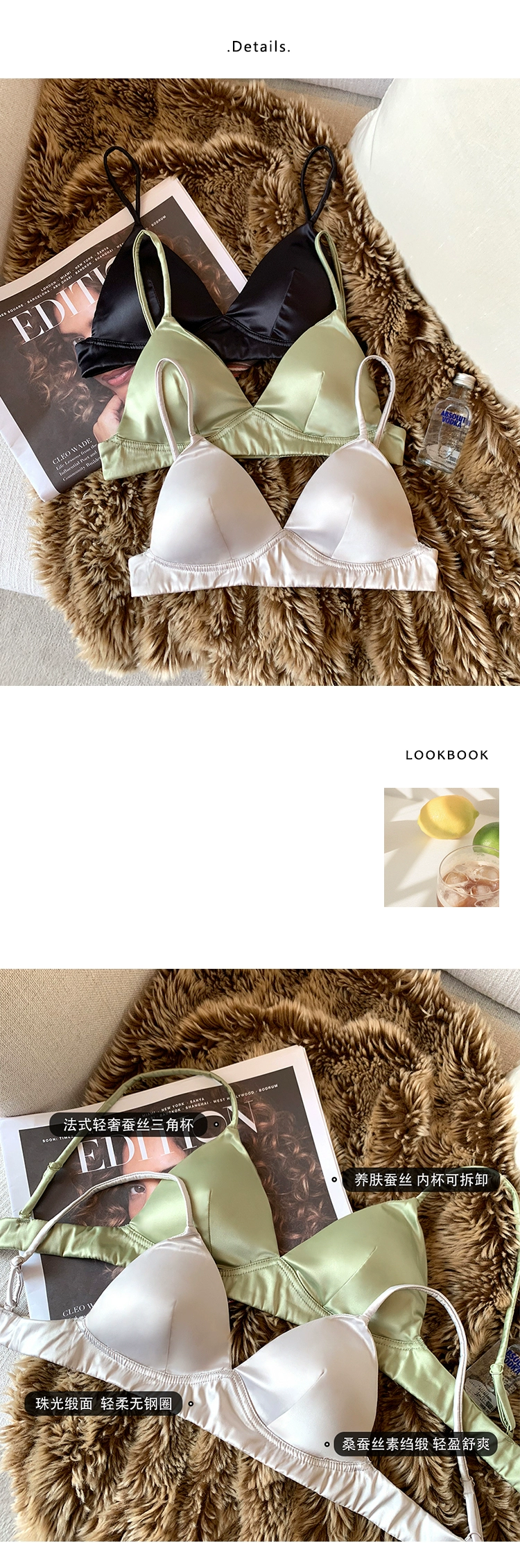 Non-marking mulberry silk underwear women’s thin triangle cup without steel ring lingerie comfortable and breathable girl bra