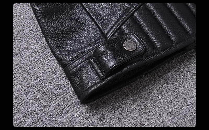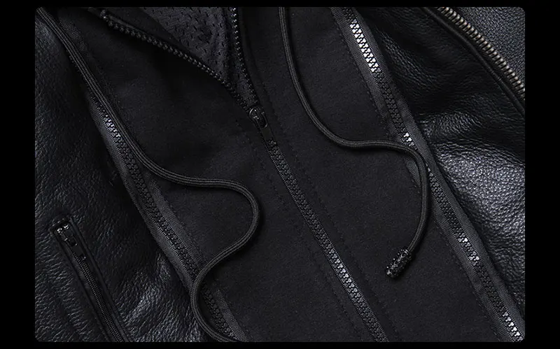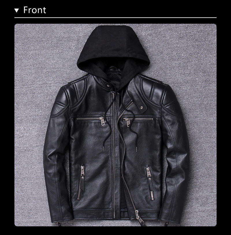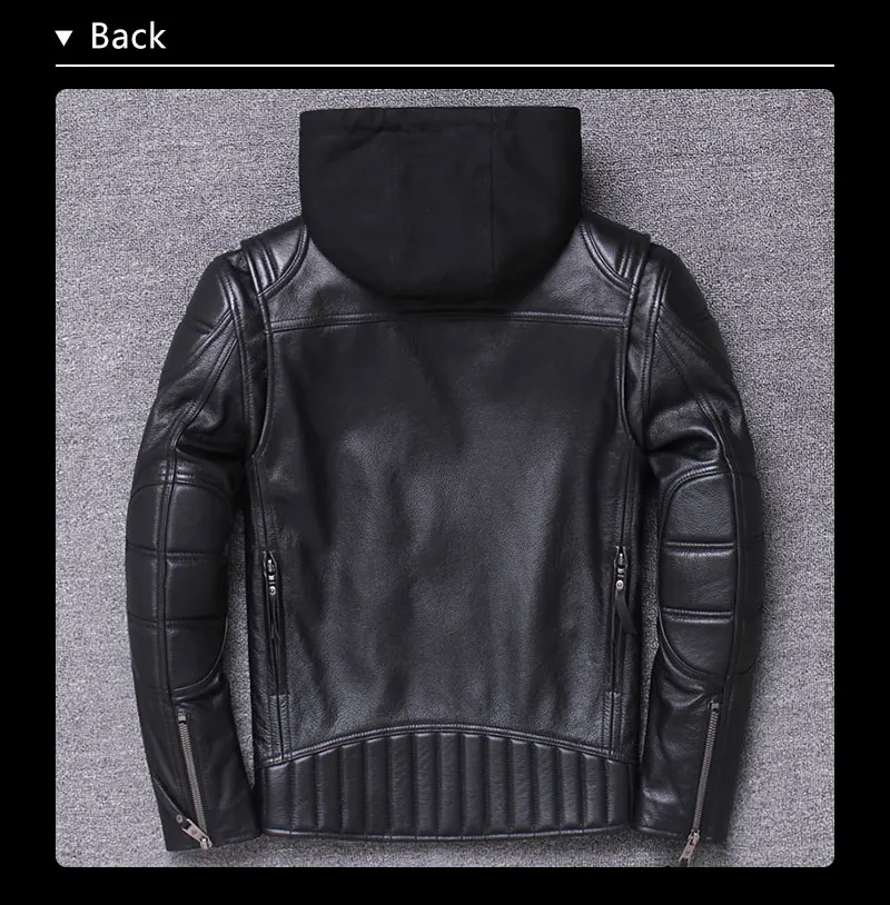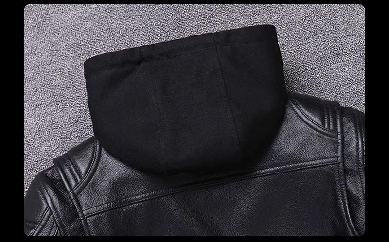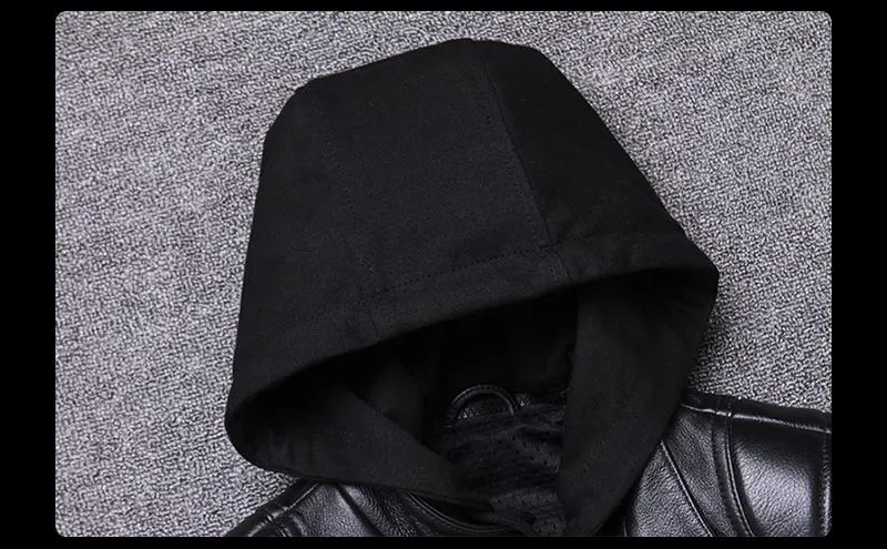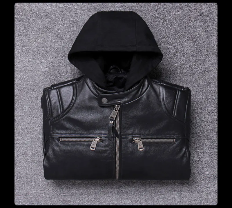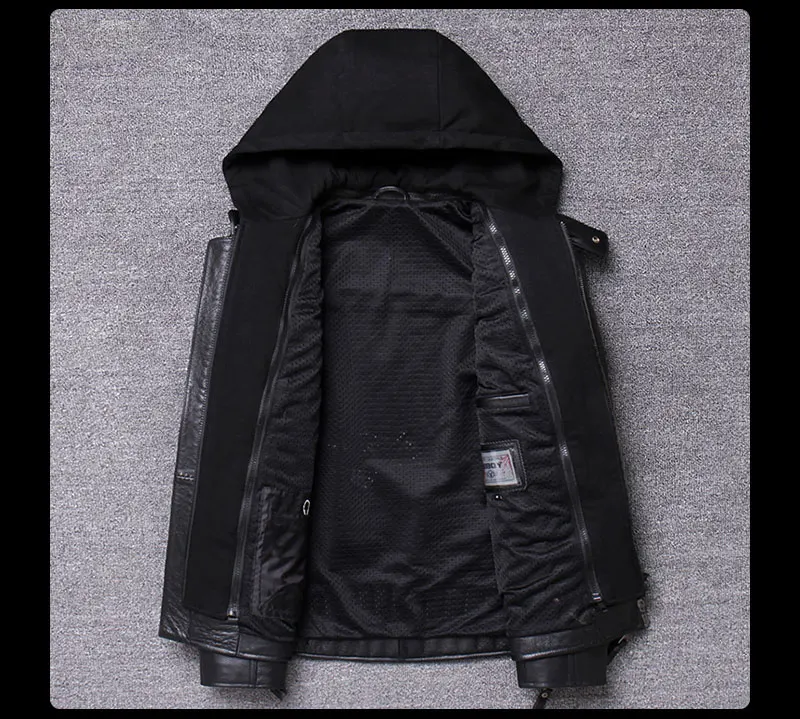 Novmoop high street fashion style black detachable hooded cowskin genuine leather coat young boy winter jacket płaszcz LT2986