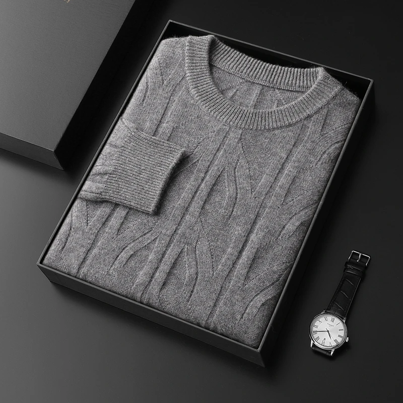 O-neck Men Sweaters High Stretch Knitted Cashmere Soft Warm Pullovers 2023 Winter Office Male Fashion Loose Casual Tops DX01