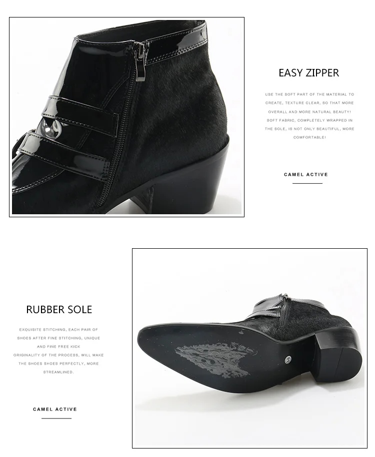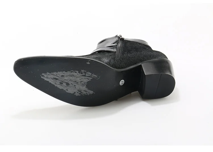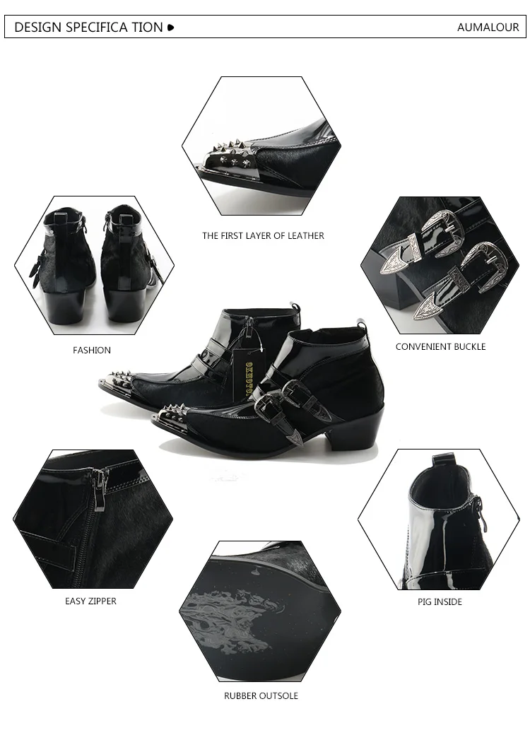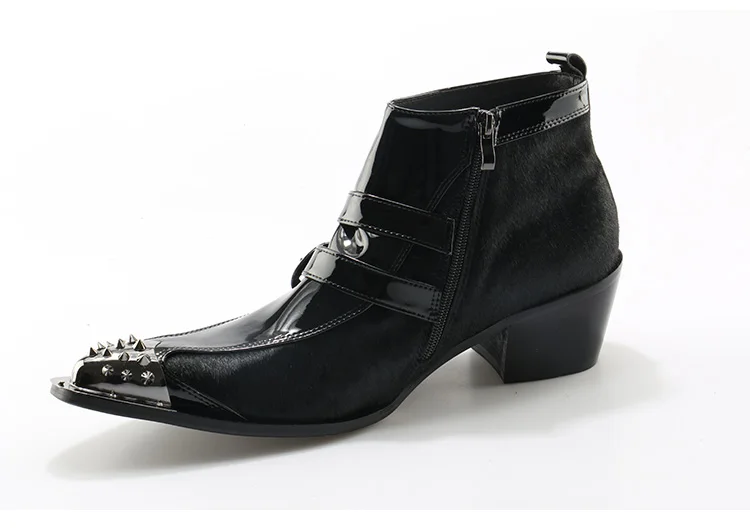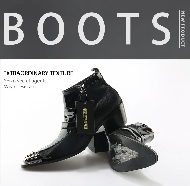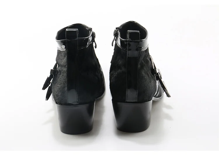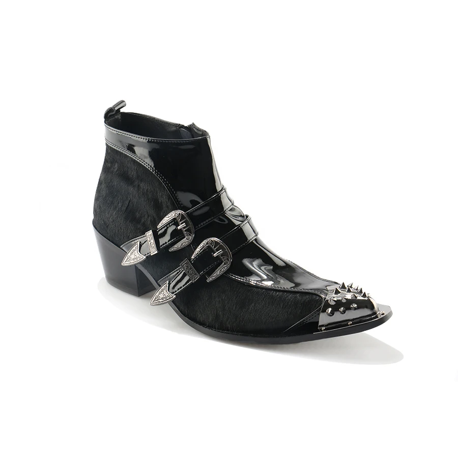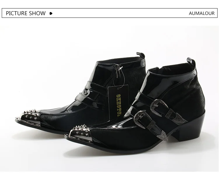 OKHOTCN Genuine Leather Men Ankle Boots Iron Rivets Pointed Toe Mens Military Boots Horsehair Double Buckles Botas Hombre