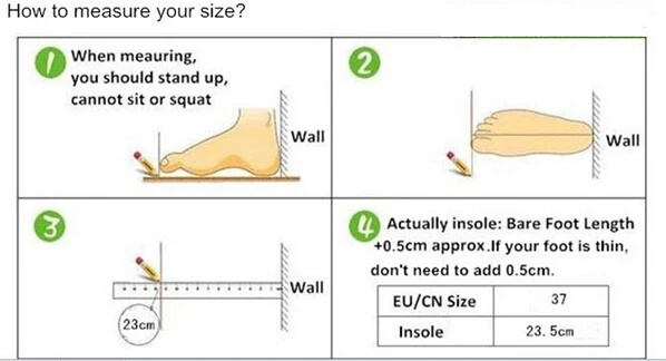 The following is the women shoes reference size chart, please refer it and your usual wear size to choose fit size.