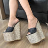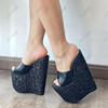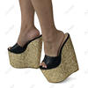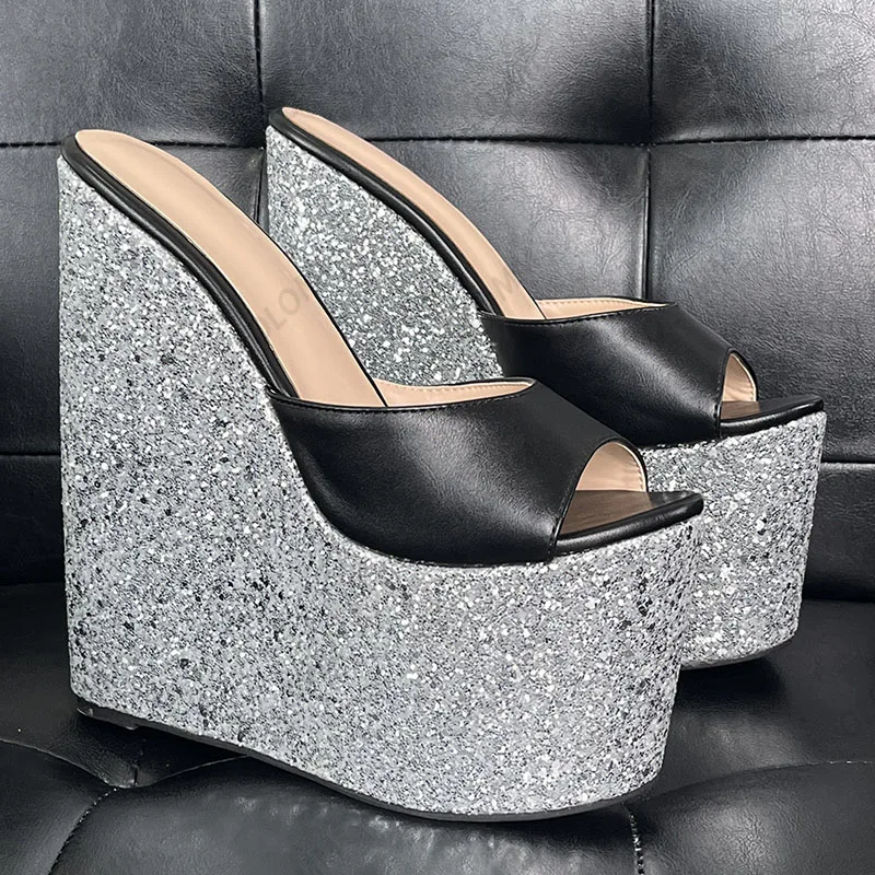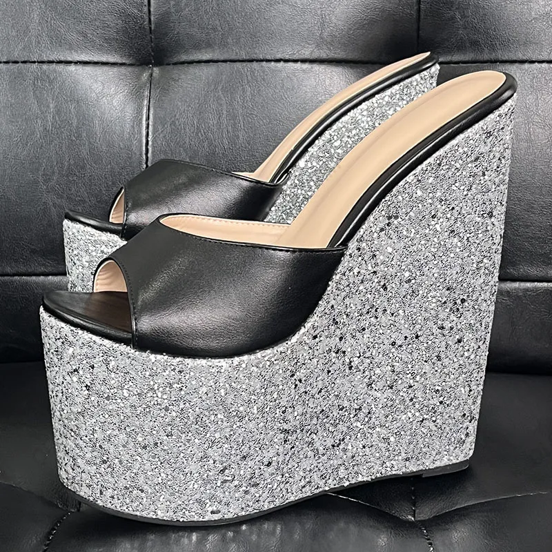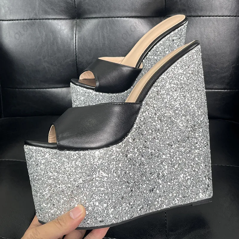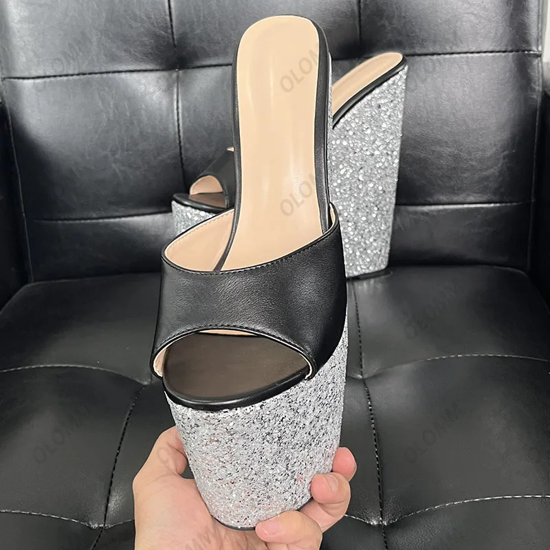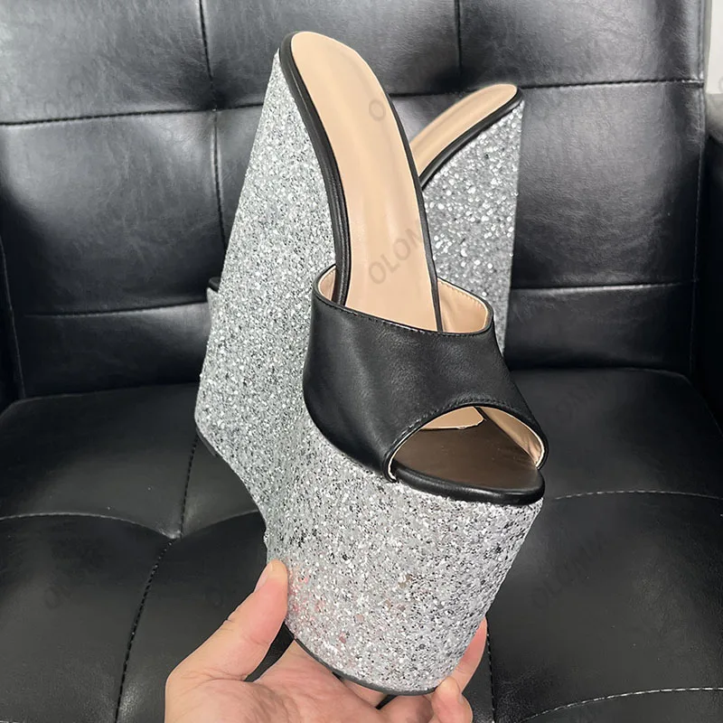 Olomm Handmade Women Platform Sandals Glitter Ultra High Wedges Heels Peep Toe Pretty Gold Night Club Shoes Ladies Size 4-15
