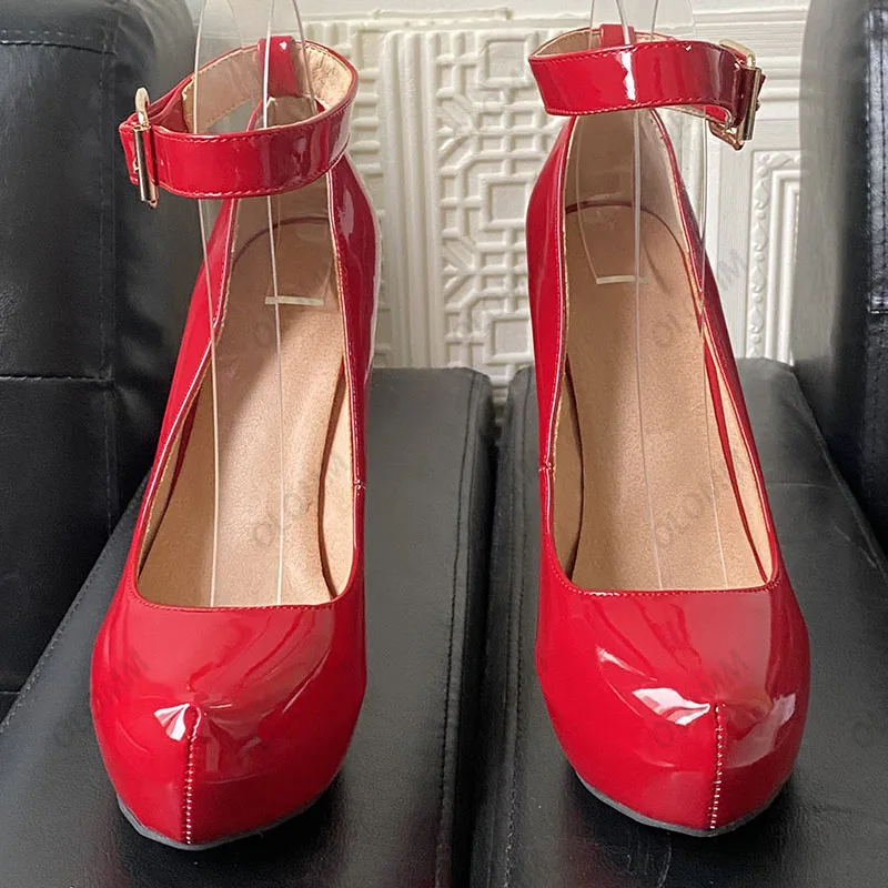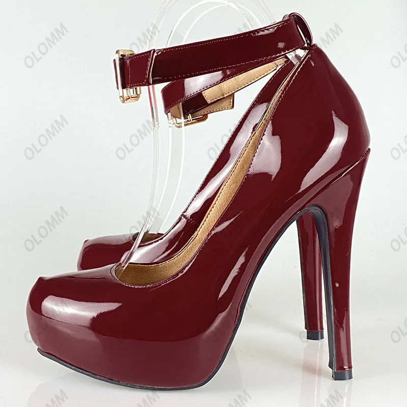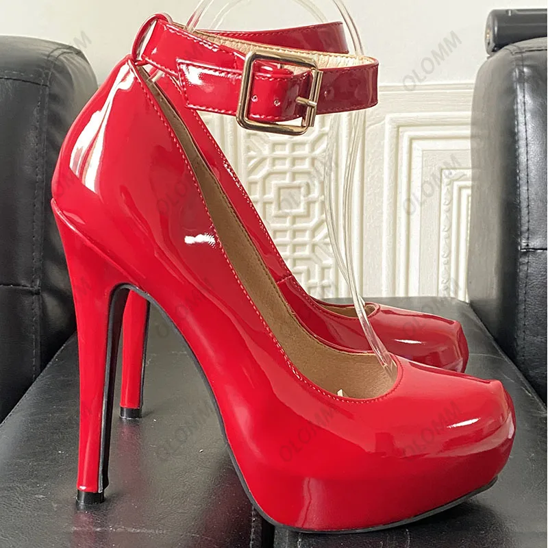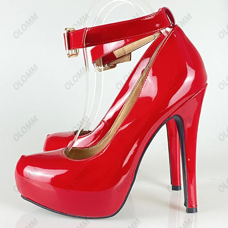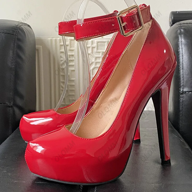 Olomm Handmade Women Spring Pumps Hidden Platform Ankle Strap Sexy Stiletto Heels Round Toe Pretty Red Party Shoes US Size 5-20.Please Refer to Our Sizing Info When Selecting Size.