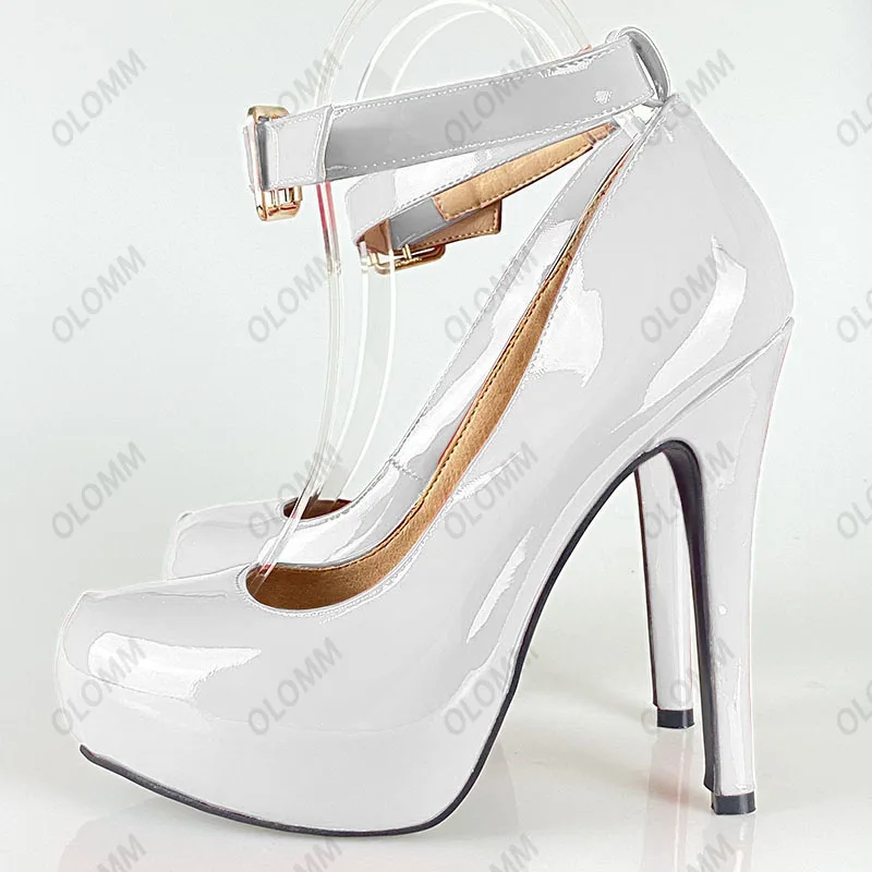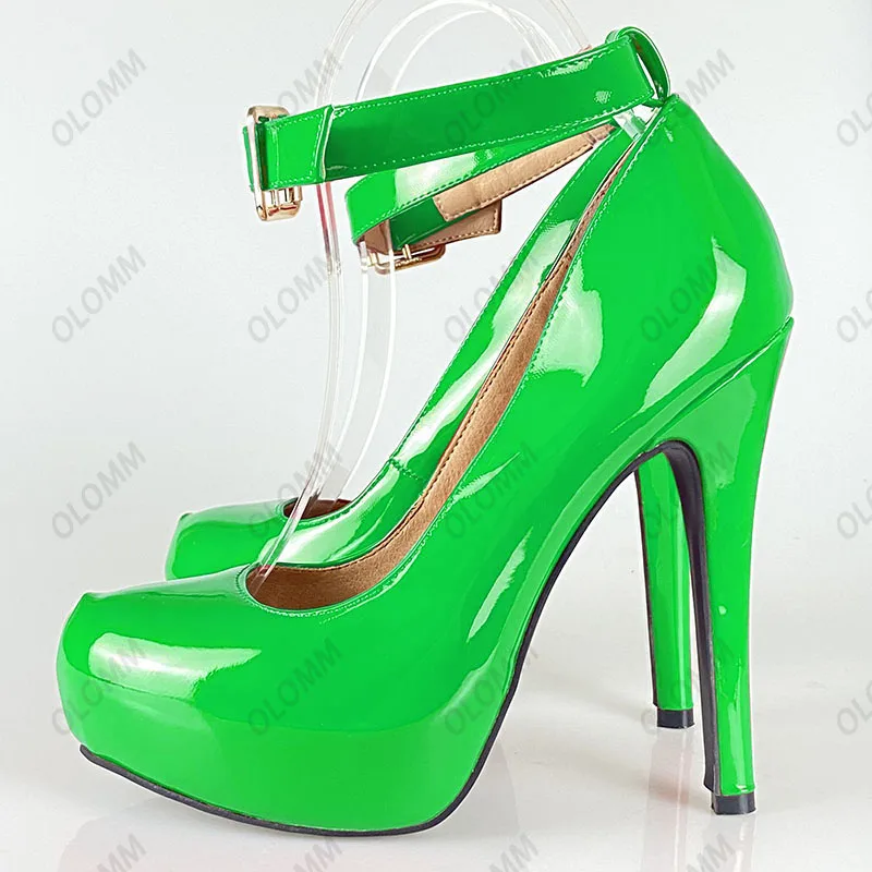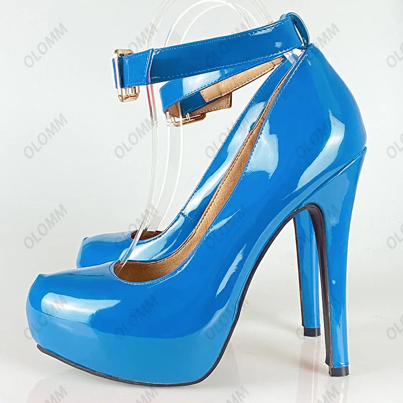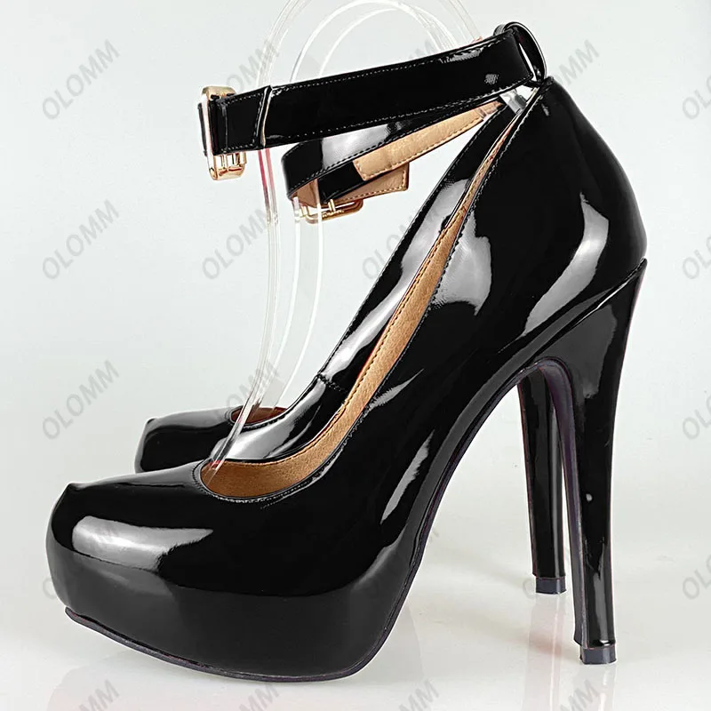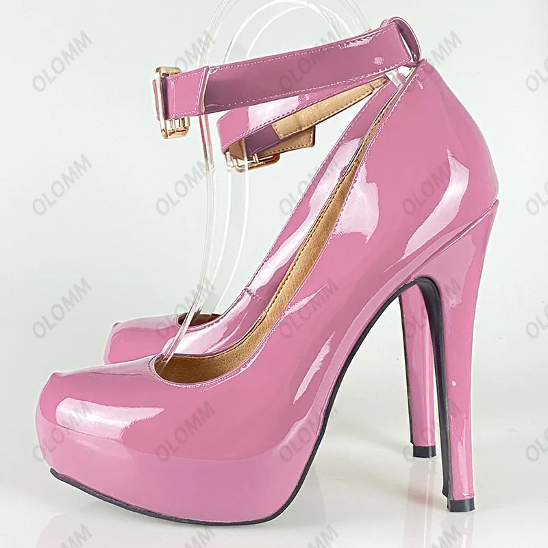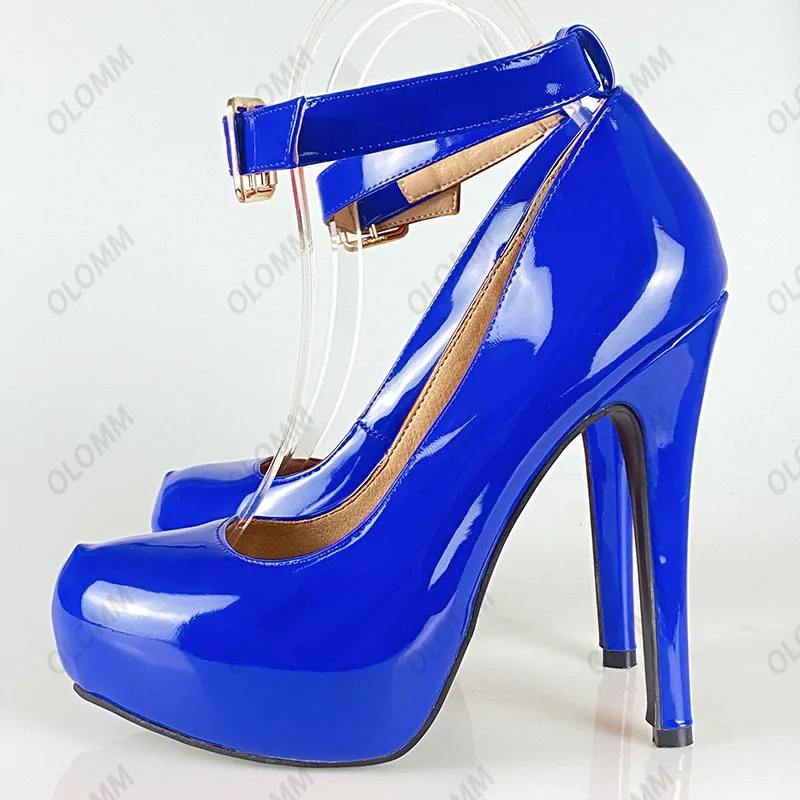 Olomm Handmade Women Spring Pumps Hidden Platform Ankle Strap Sexy Stiletto Heels Round Toe Pretty Red Party Shoes US Size 5-20.Please Refer to Our Sizing Info When Selecting Size.