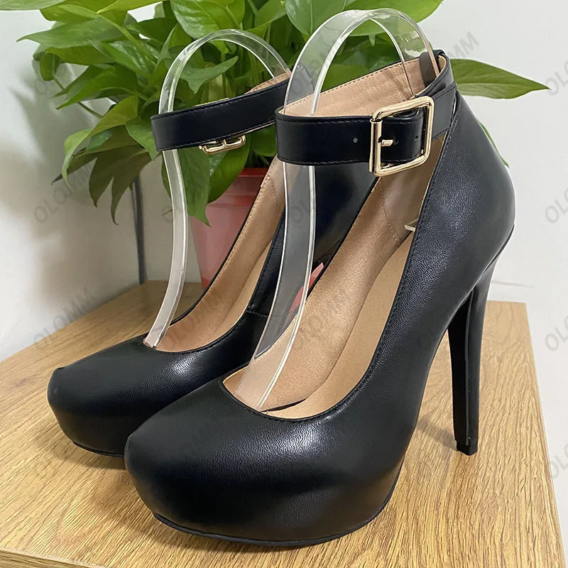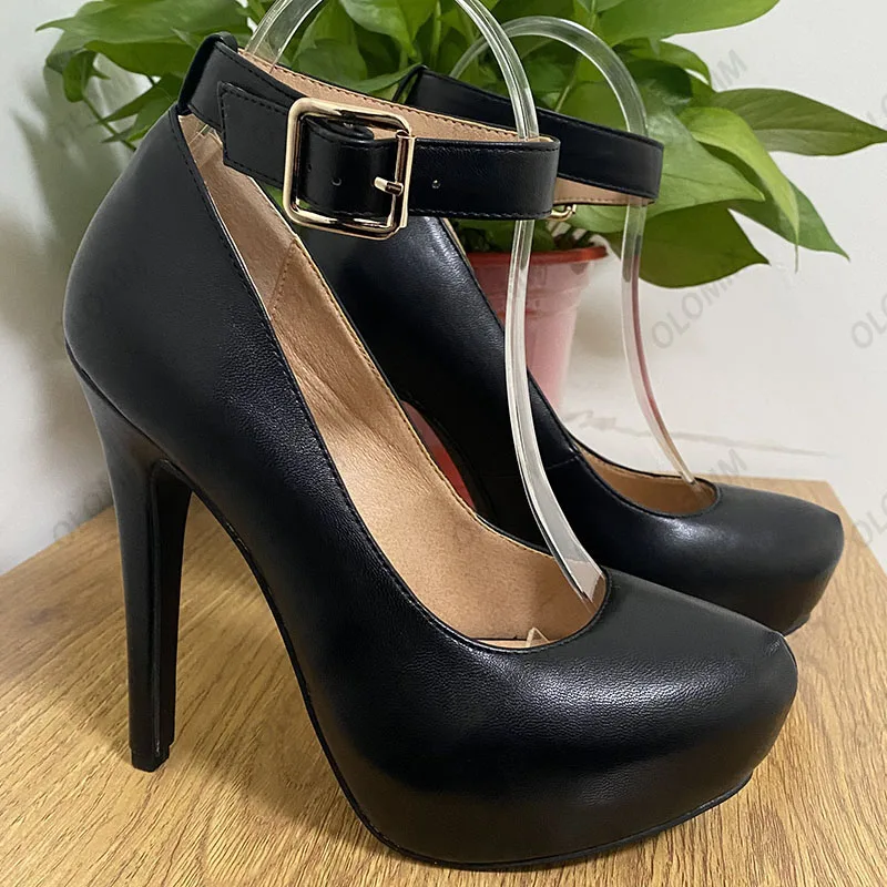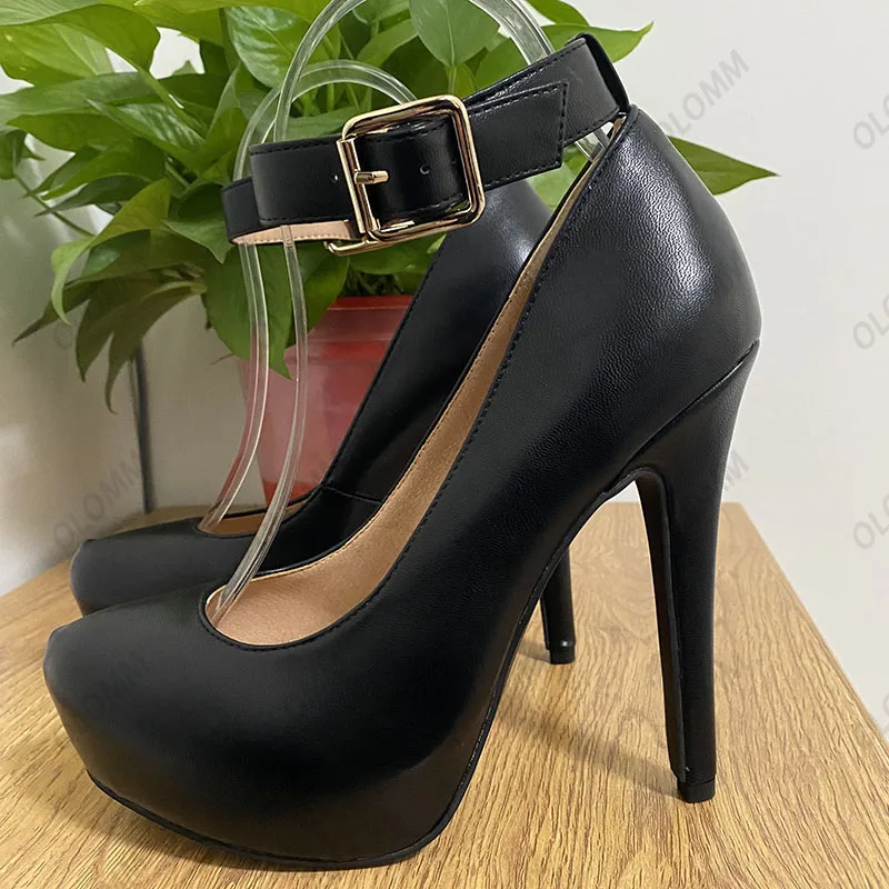Olomm Handmade Women Spring Pumps Hidden Platform Buckle Strap Stiletto Heels Round Toe Pretty Black Party Shoes US Size 5-20.Please Refer to Our Sizing Info When Selecting Size.