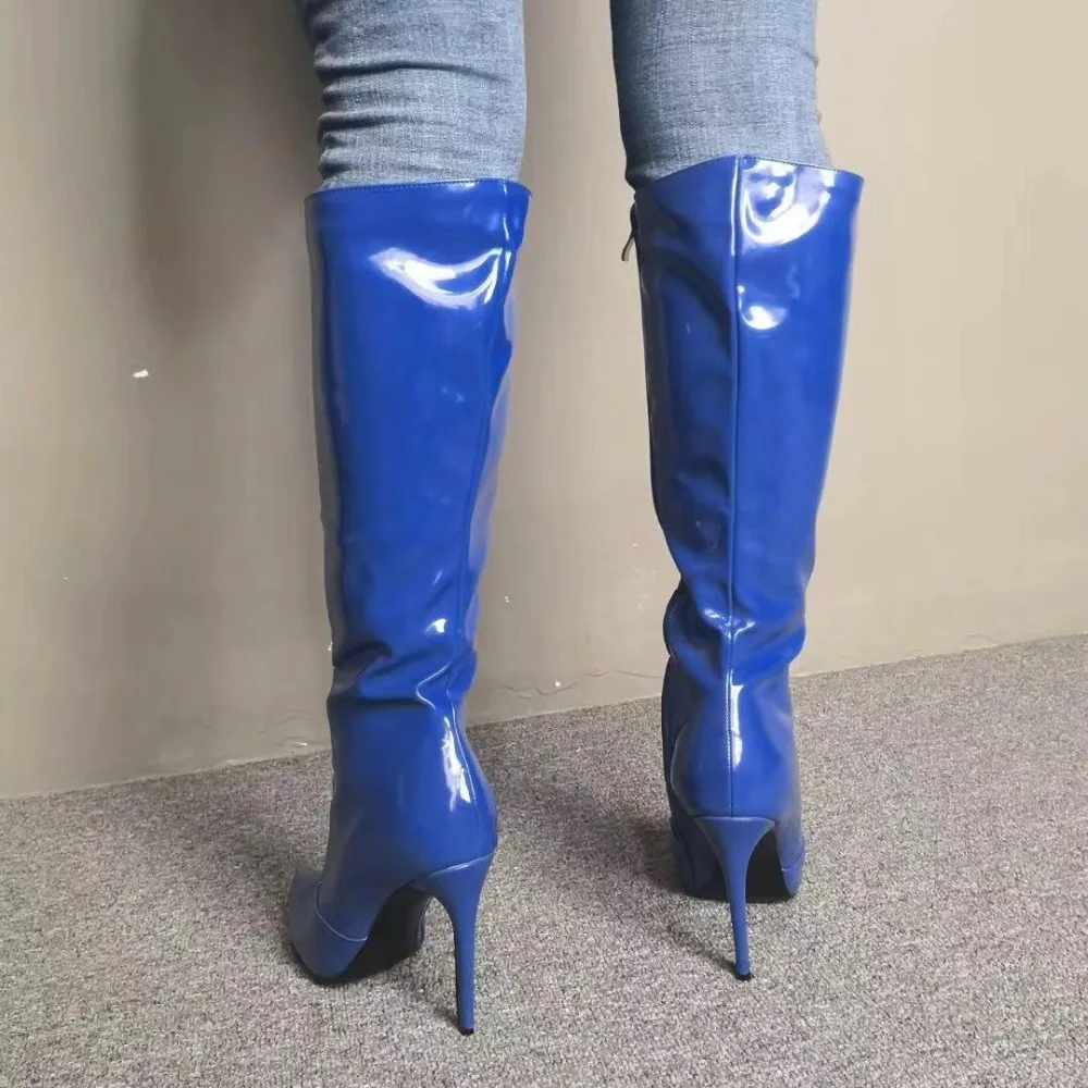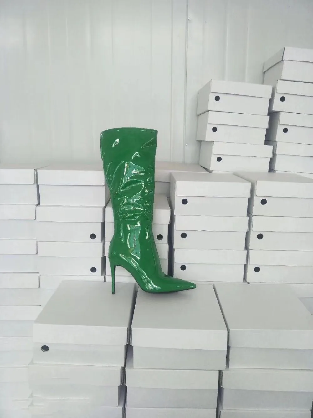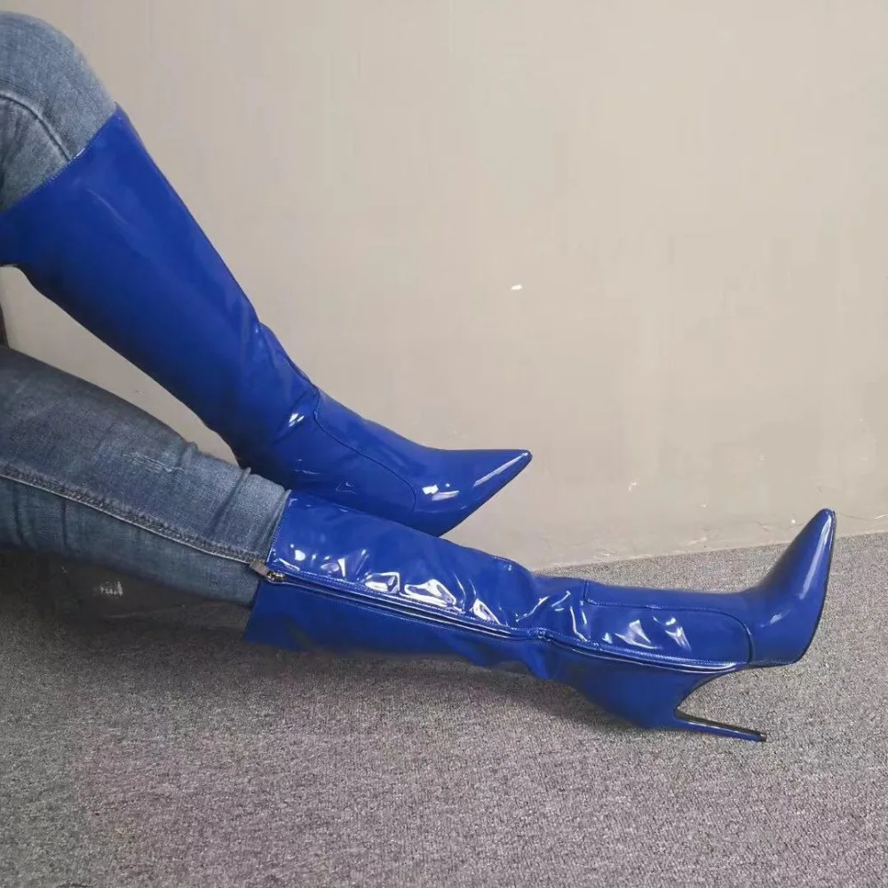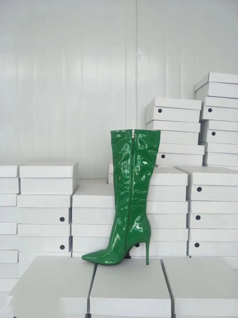 Yifsion New Stylish Women Knee High Boots Thin High Heels Boots Pointed Toe Black Green Blue Dress Shoes Women Plus US Size 5-15.Please Refer to Our Sizing Info When Selecting Size.