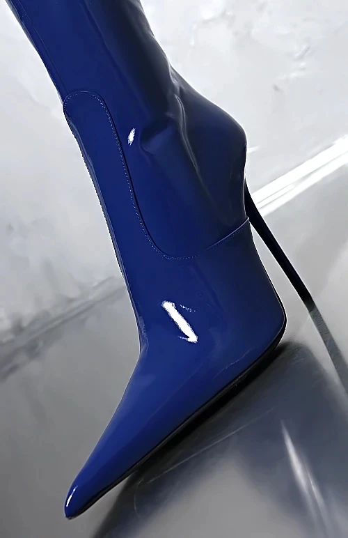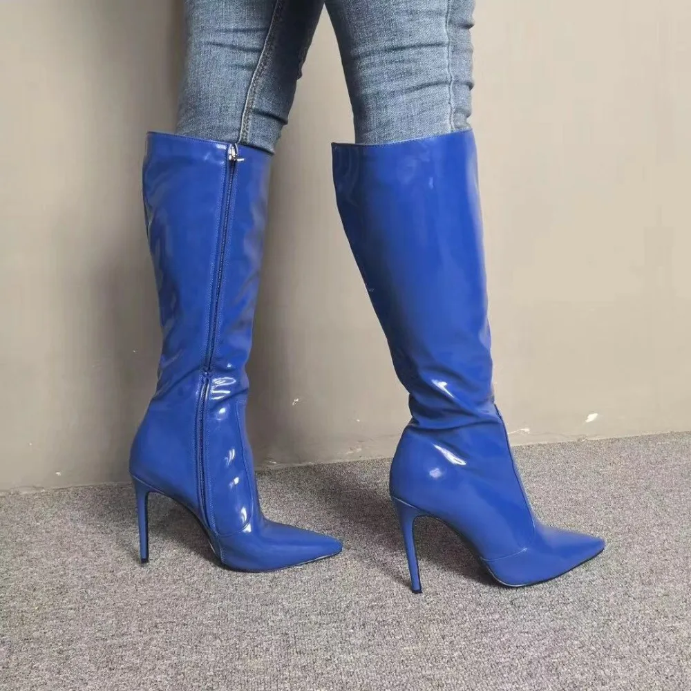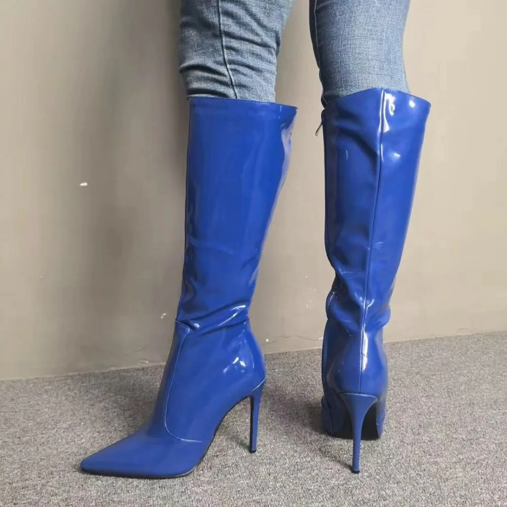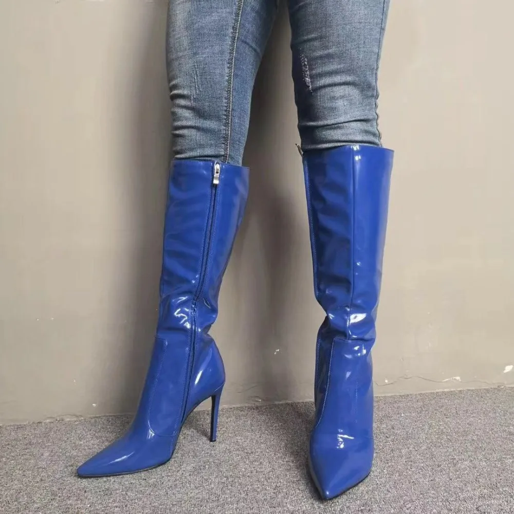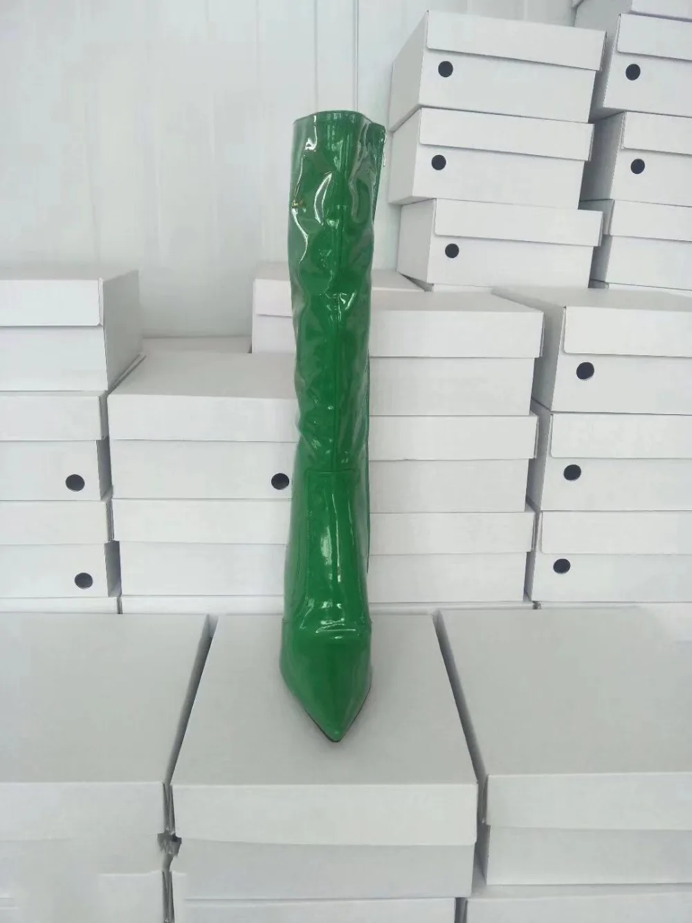 Yifsion New Stylish Women Knee High Boots Thin High Heels Boots Pointed Toe Black Green Blue Dress Shoes Women Plus US Size 5-15.Please Refer to Our Sizing Info When Selecting Size.