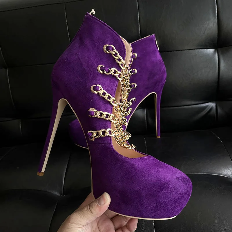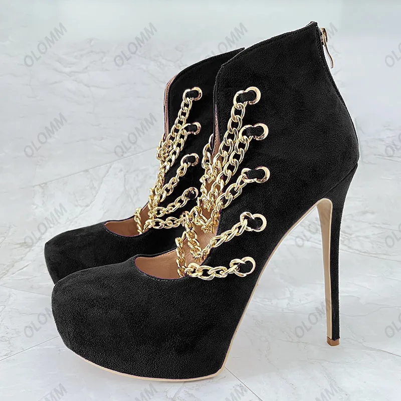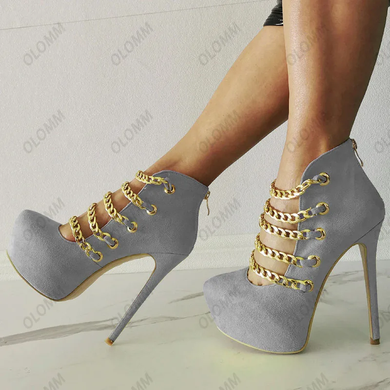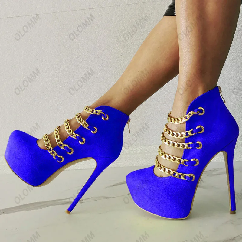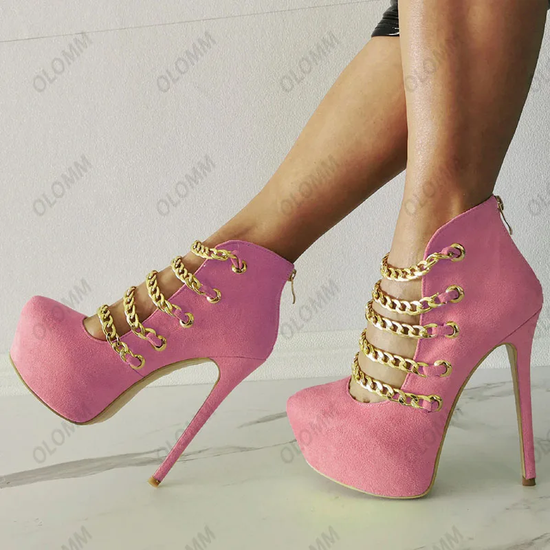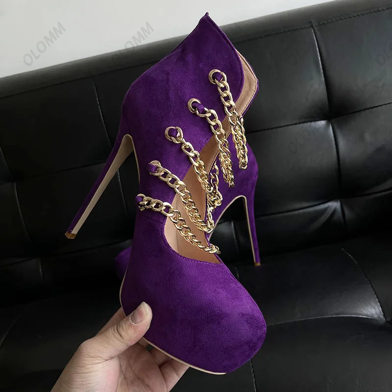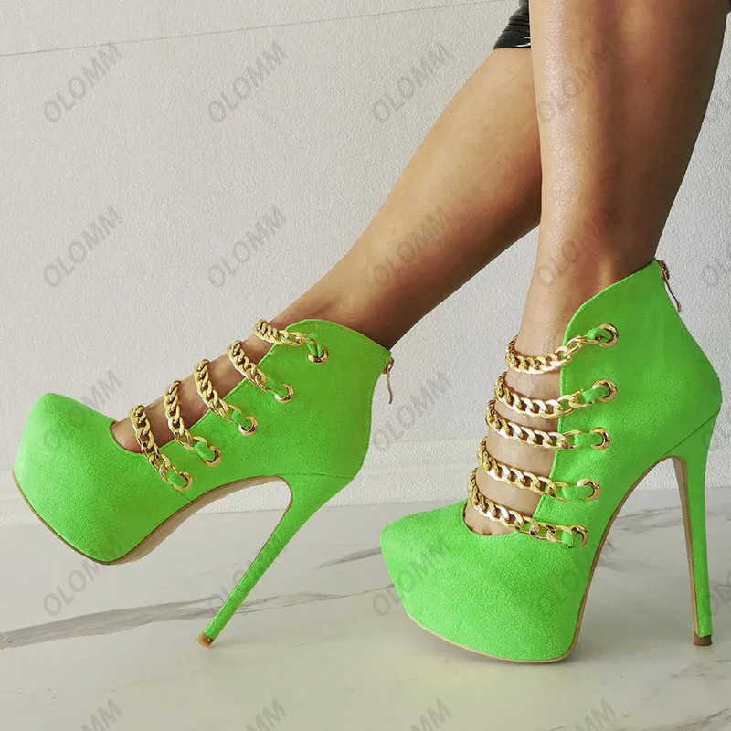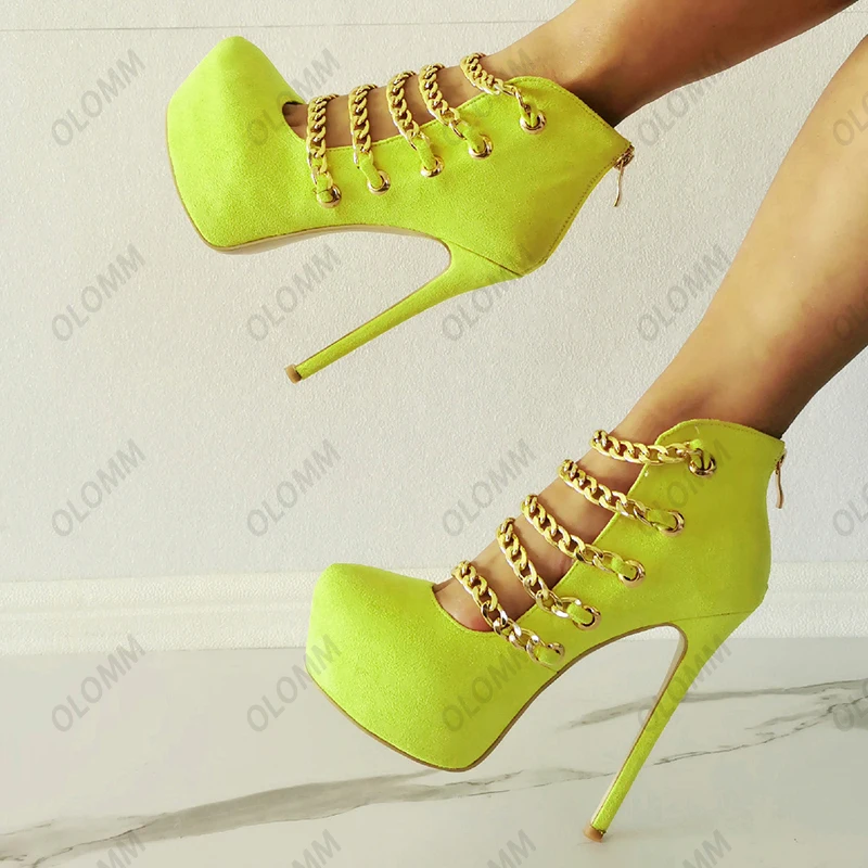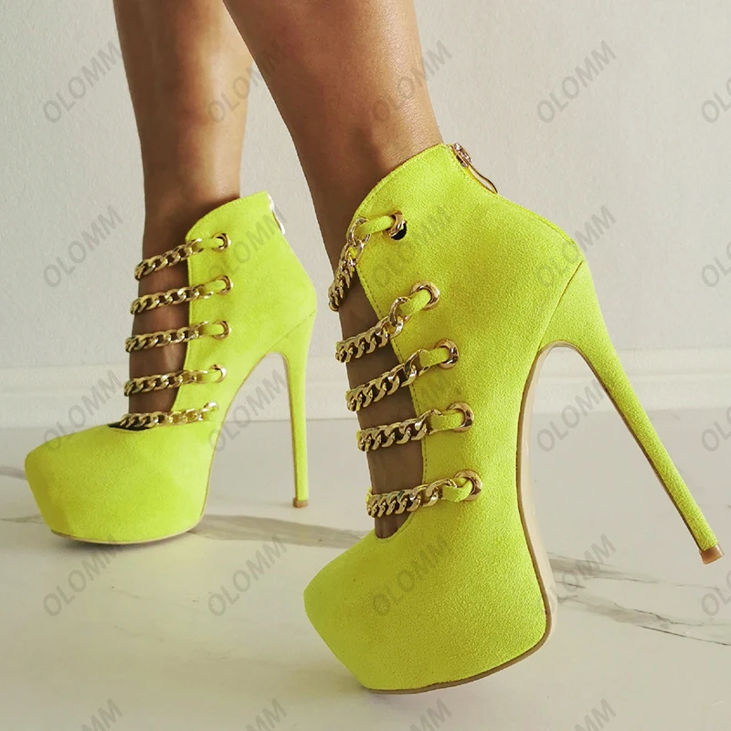 Olomm Women Platform Pumps Hidden Platform Sexy Chain Stiletto Heels Round Toe Amazing Yellow Dress Shoes Plus US Size 5-20.Please Refer to Our Sizing Info When Selecting Size.