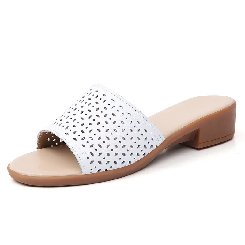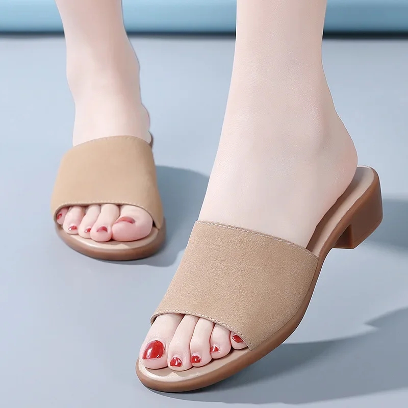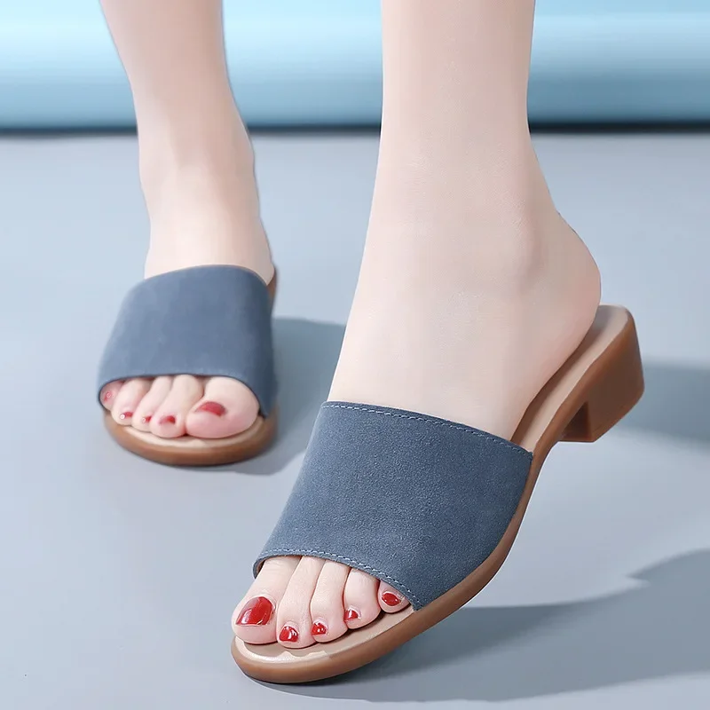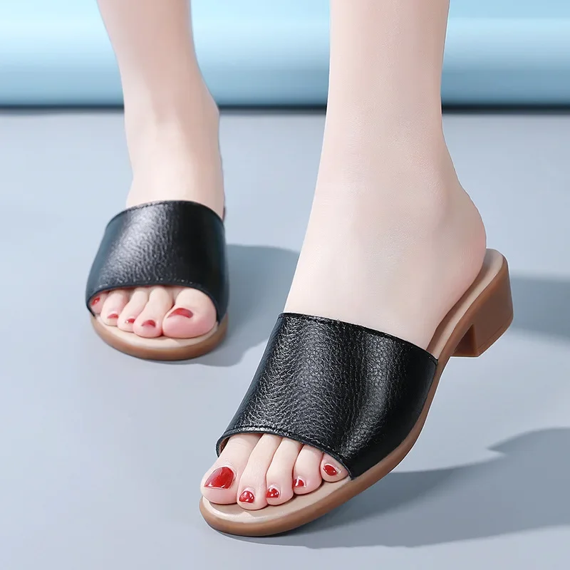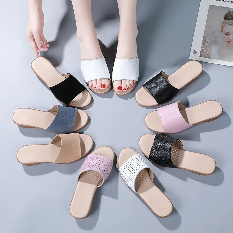 One-Word Slippers for Women to Wear Online Red New Fashion Shoes Summer Flat Aunt Women’s Shoes Leather Slippers