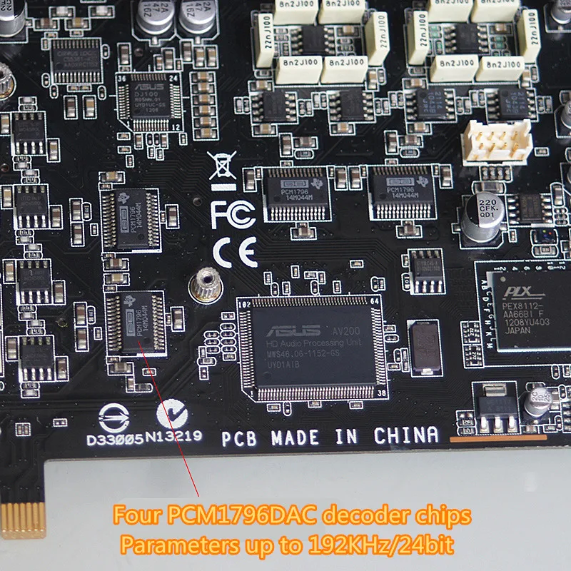 Asus Xonar D2X uses bidirectional 24-bit, 192KHz audio input and output,Its signal-to-noise ratio is as high as 118dB.