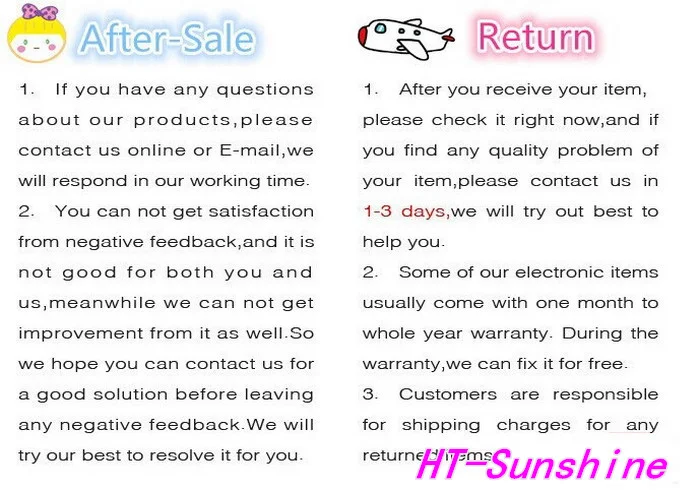 • If you did not receive the product within the guaranteed time( 45 days not including 2-5 day processing) you can request a refund or a reshipment.