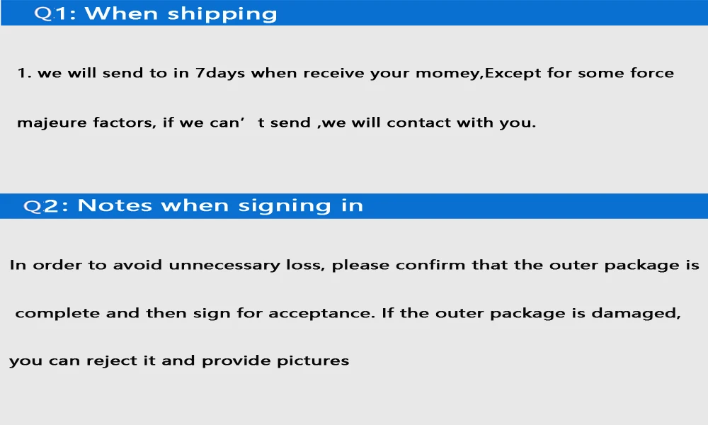• If you did not receive the product within the guaranteed time( 45 days not including 2-5 day processing) you can request a refund or a reshipment.