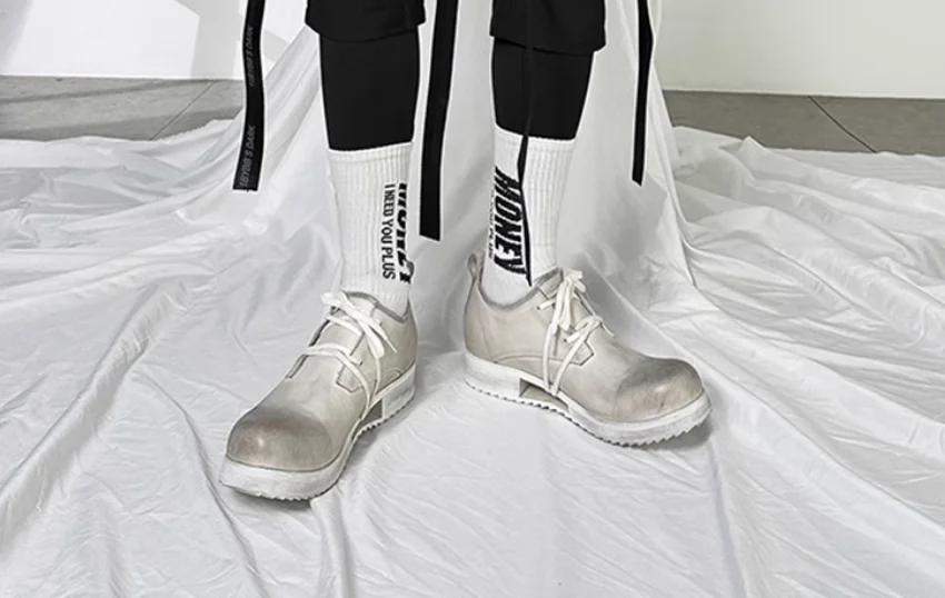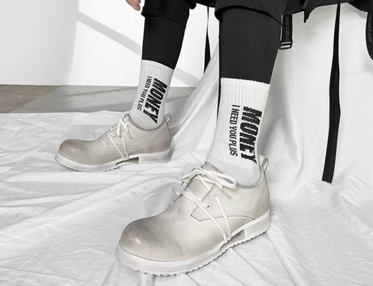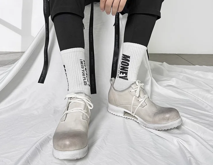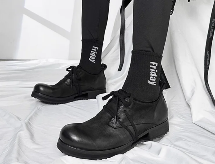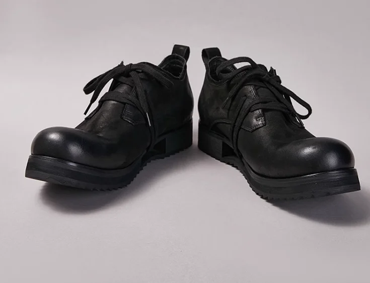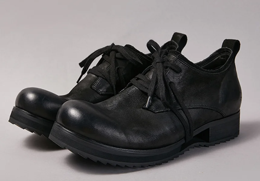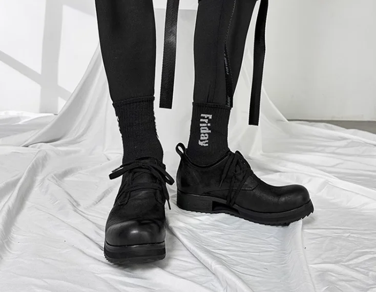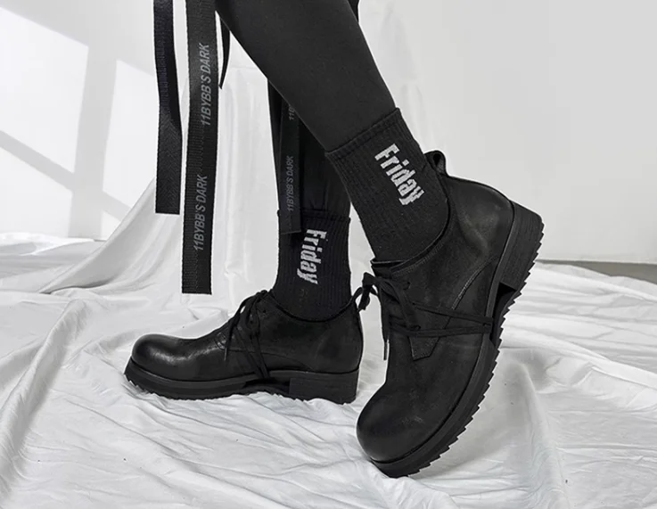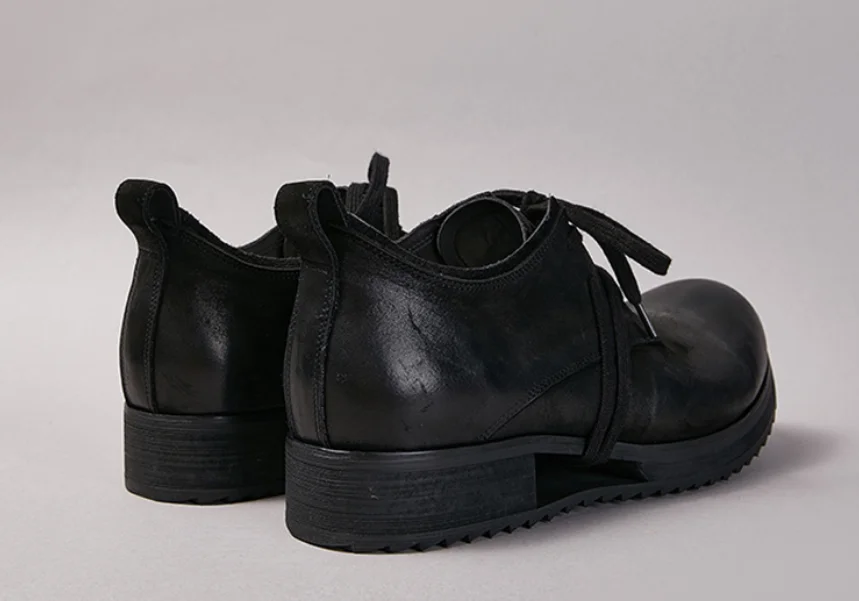 Original niche design handmade leather thick-soled black derby shoes casual national trendy style low top heightening round toe