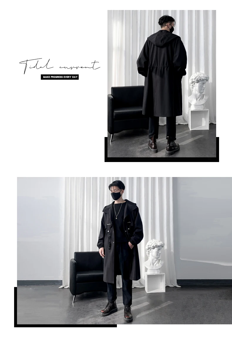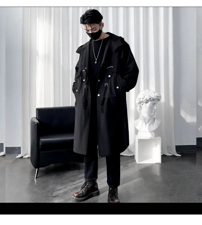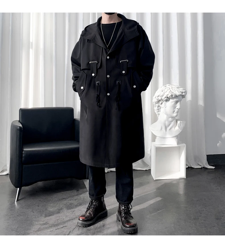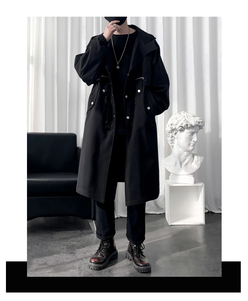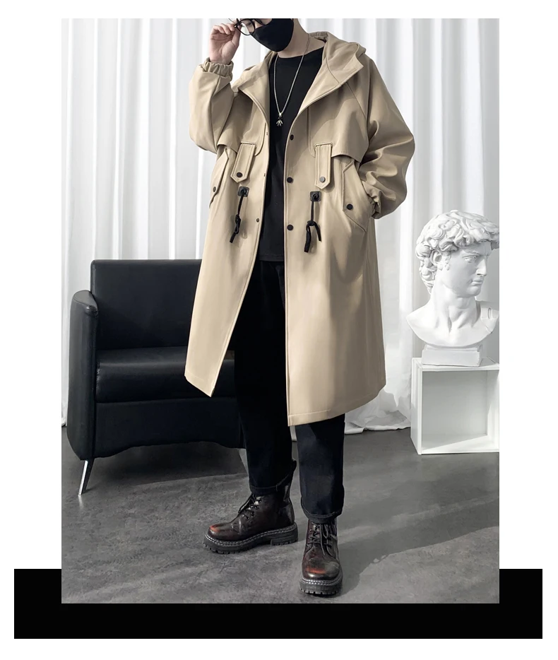 Oversize Loose Khaki Mens Large Hooded Jackets Black Long Winter Overcoat Spring Gentleman Parker Steampunk Style Clothing Punk