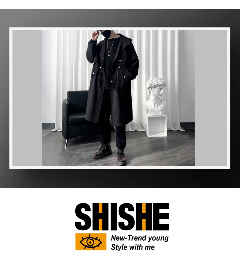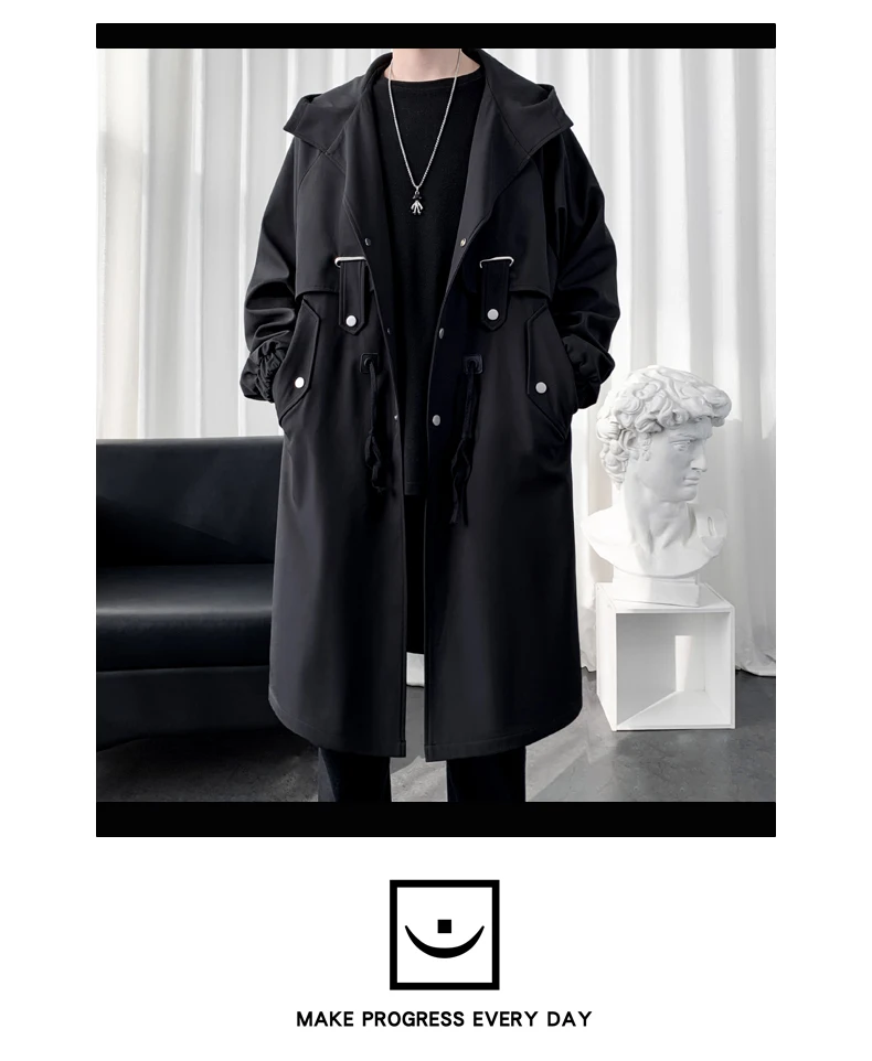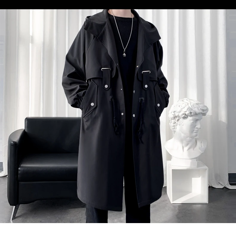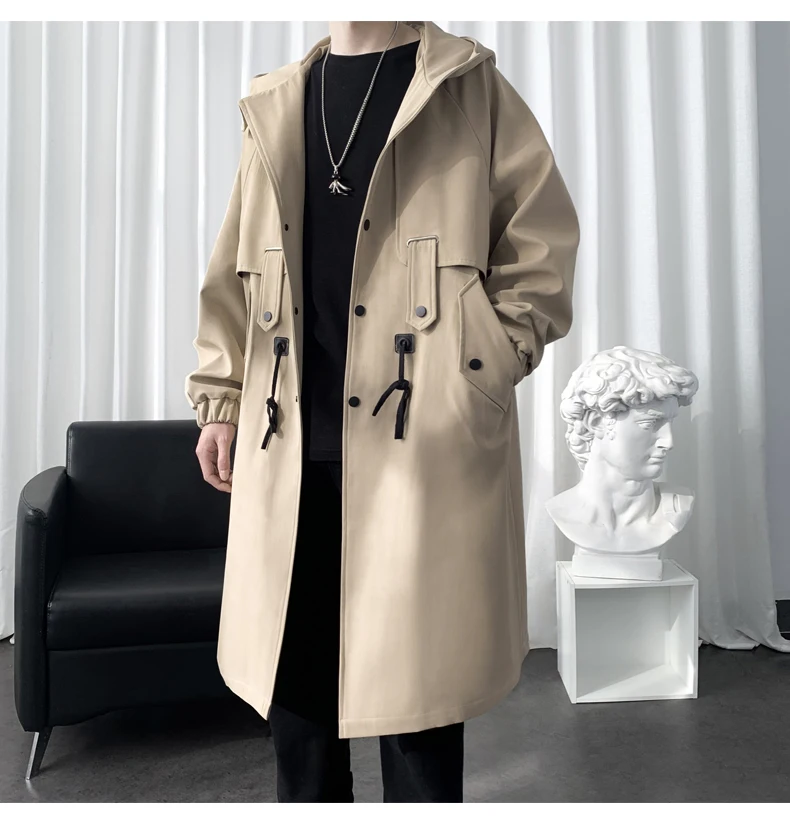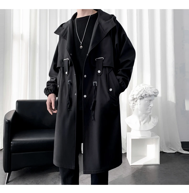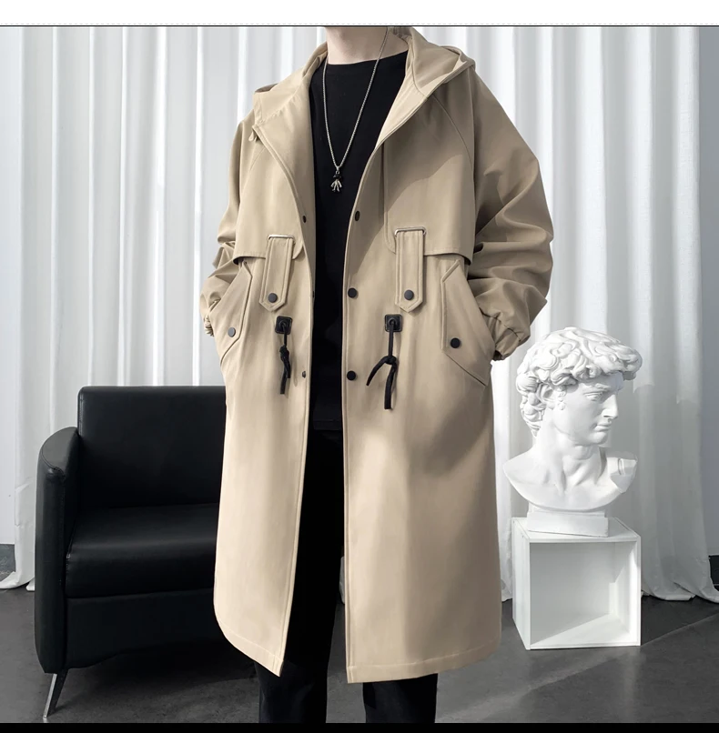 Oversize Loose Khaki Mens Large Hooded Jackets Black Long Winter Overcoat Spring Gentleman Parker Steampunk Style Clothing Punk