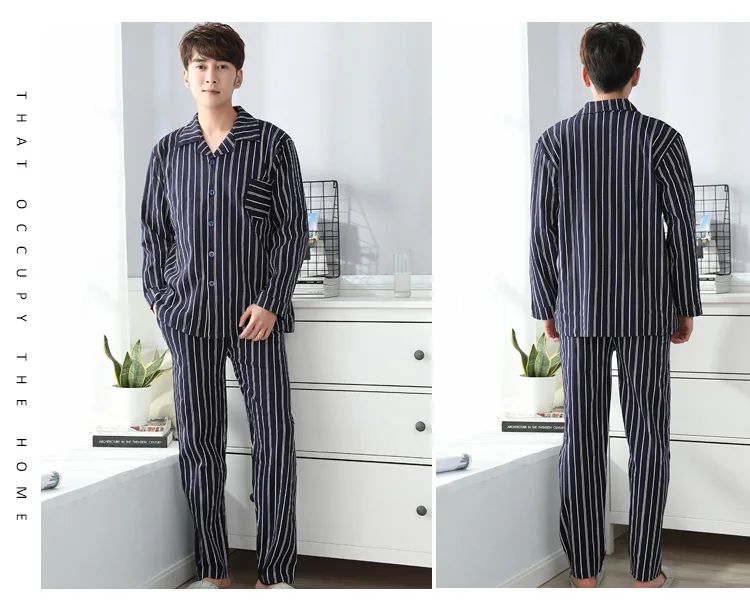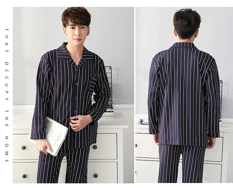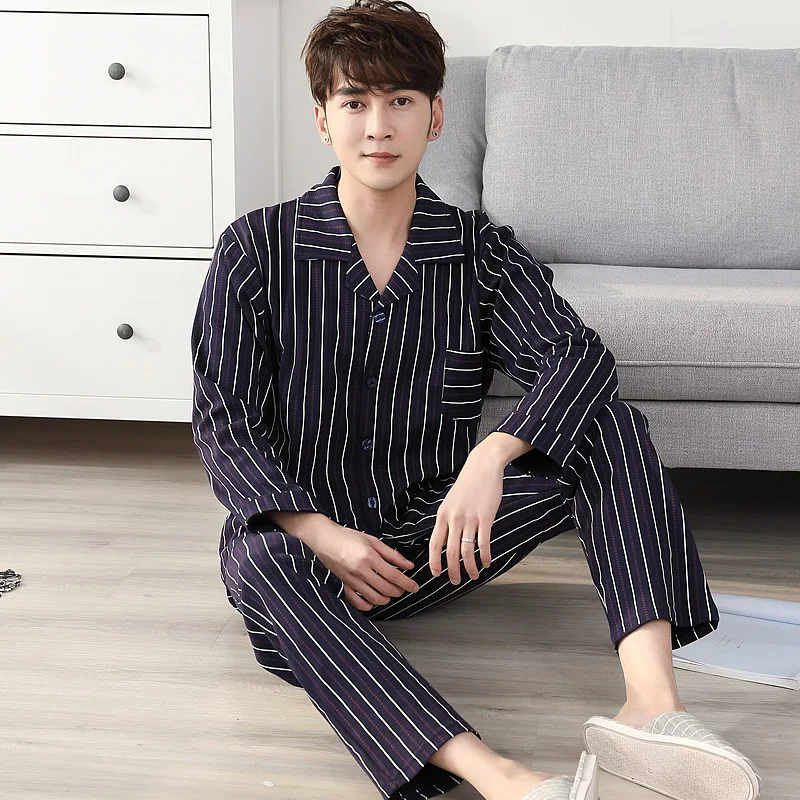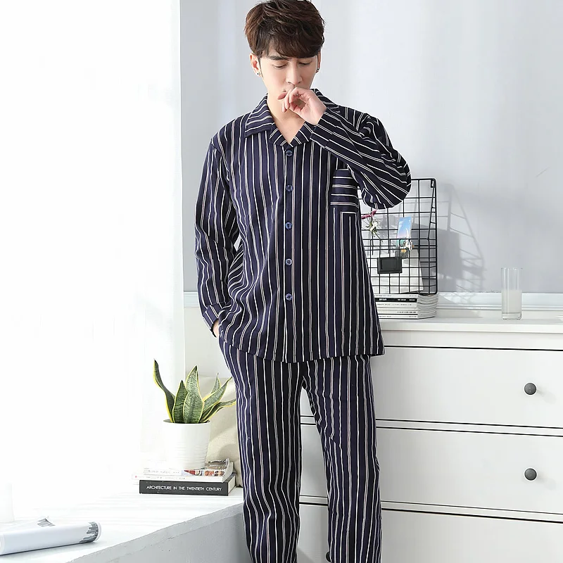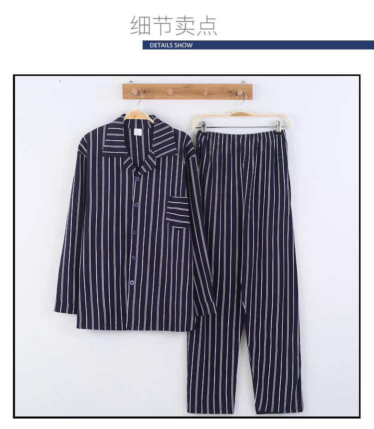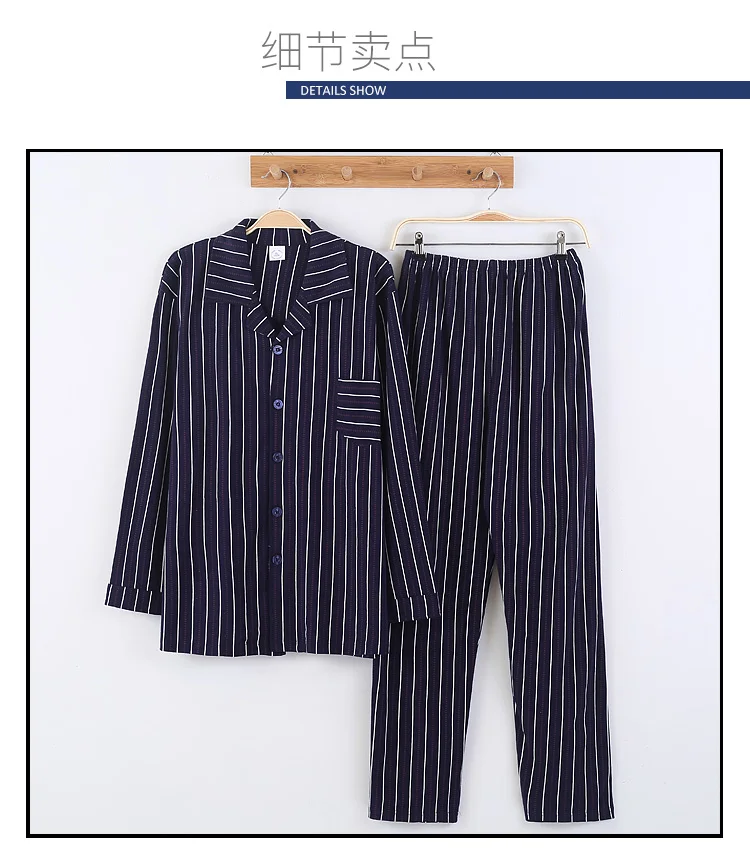 Pajamas Men Spring And Autumn Mens Pyjamas Cotton Striped Pajamas Long-sleeve Sleepwear Casual Men Pajama Set Big Yards M-3XL