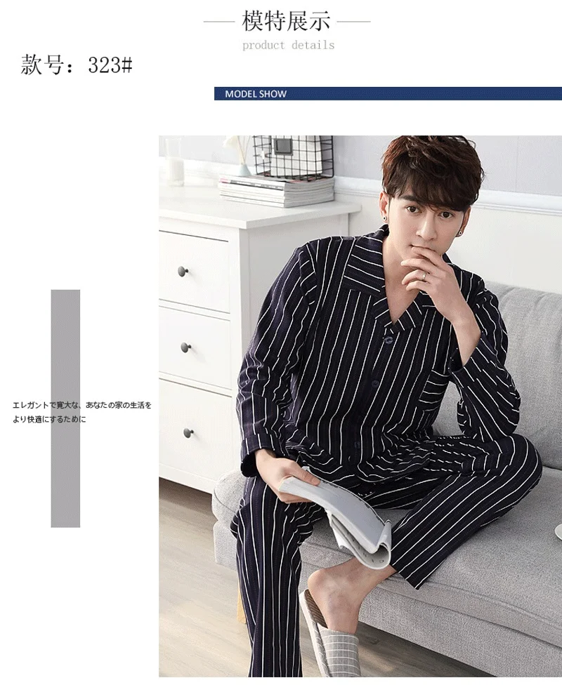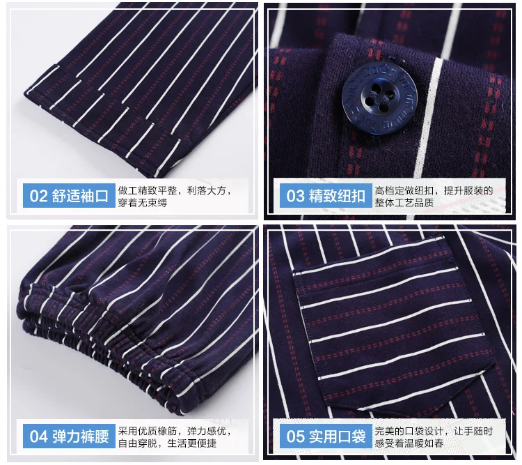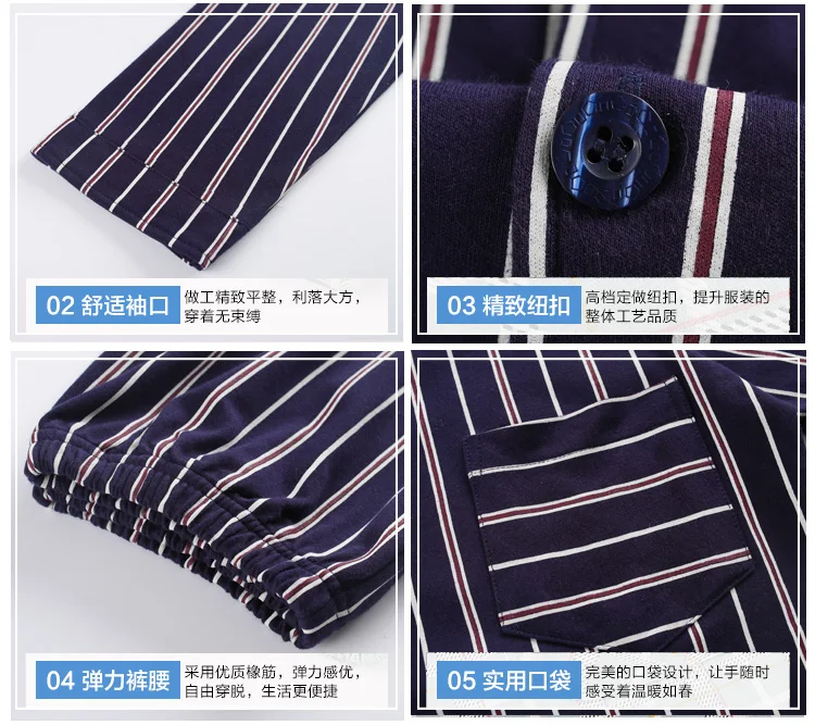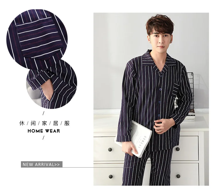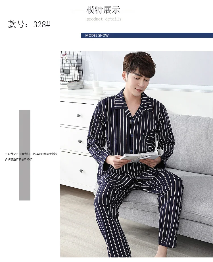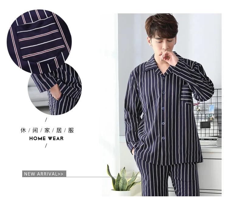 Pajamas Men Spring And Autumn Mens Pyjamas Cotton Striped Pajamas Long-sleeve Sleepwear Casual Men Pajama Set Big Yards M-3XL