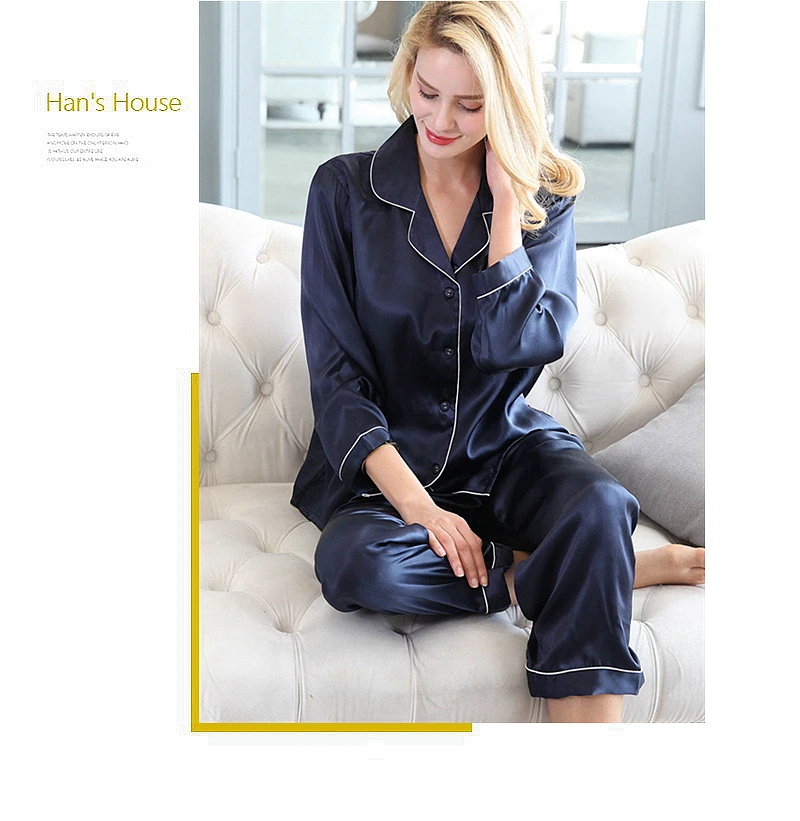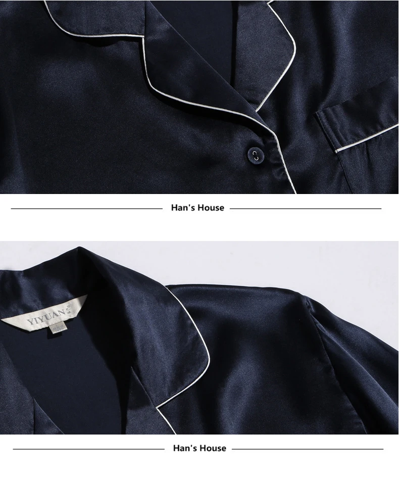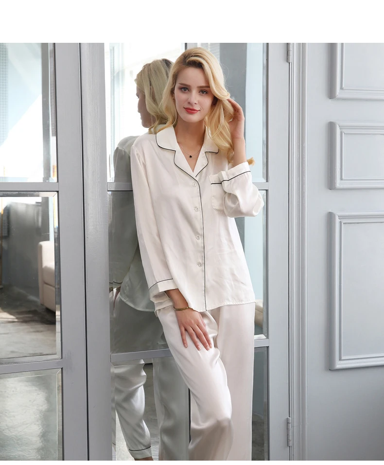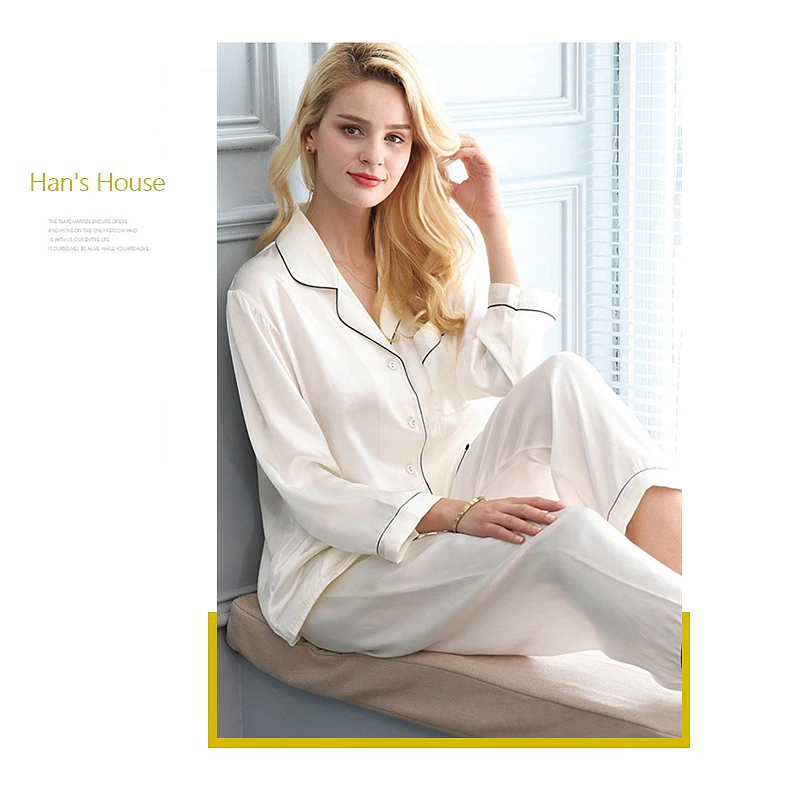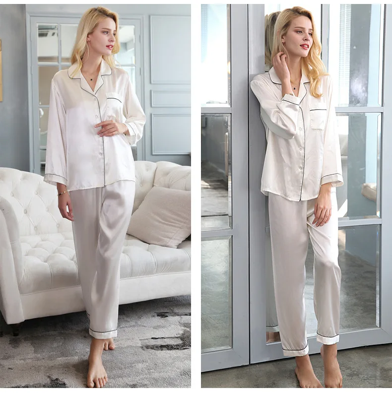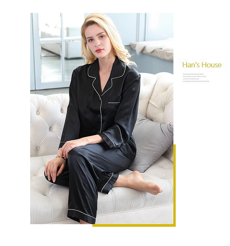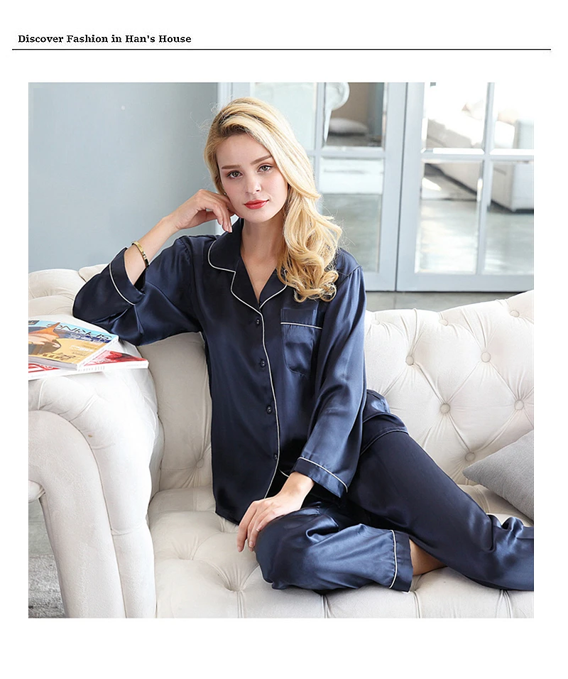 Pajamas Women Robe Sets 100% Silk Fabric Sleepwear Two Pieces Set Simple Style Turn-down Collar Elastic Waist 3 Colors Nightgown