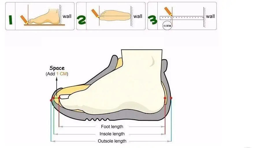 : Foot length + 1cm = insole length