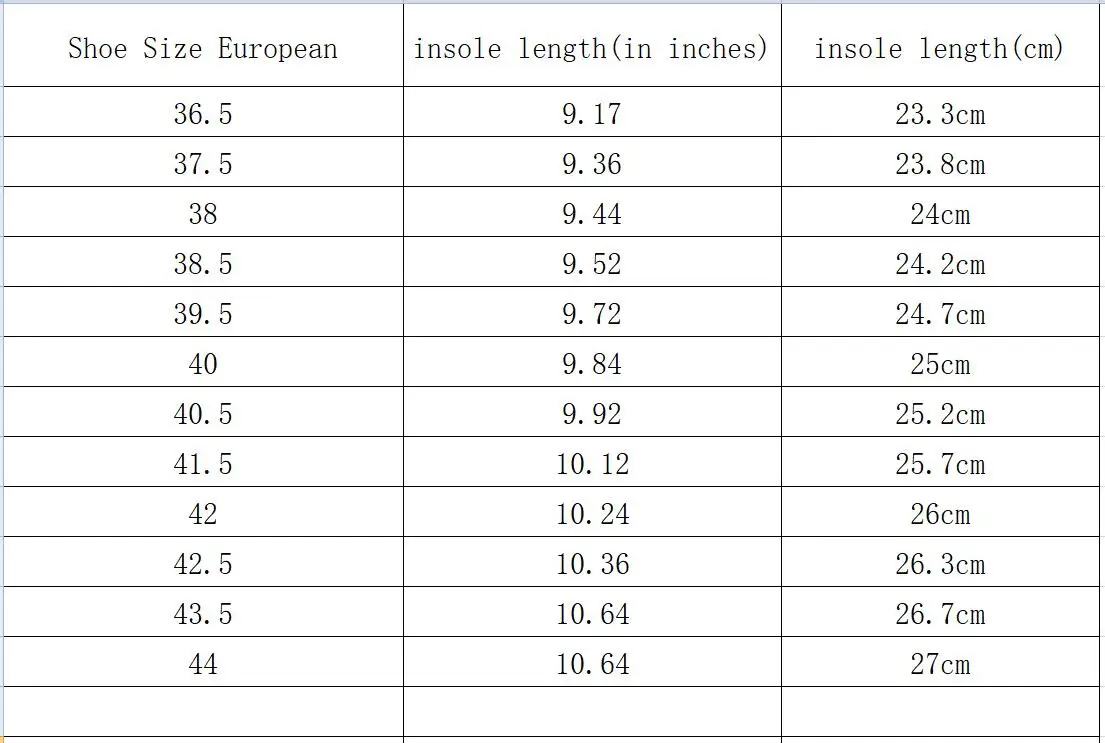 Shoe size: The following length is insole length.