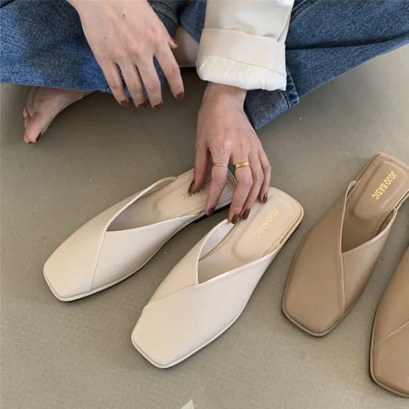 New Brand Square Toe Slippers Women Mules
