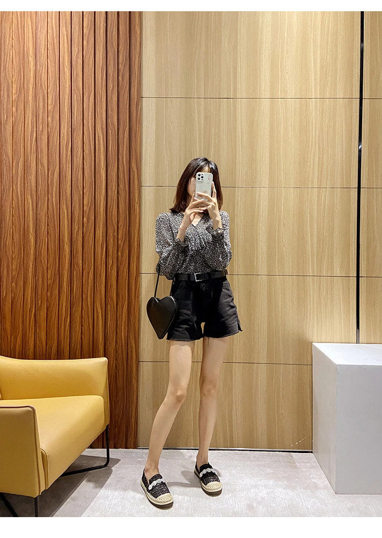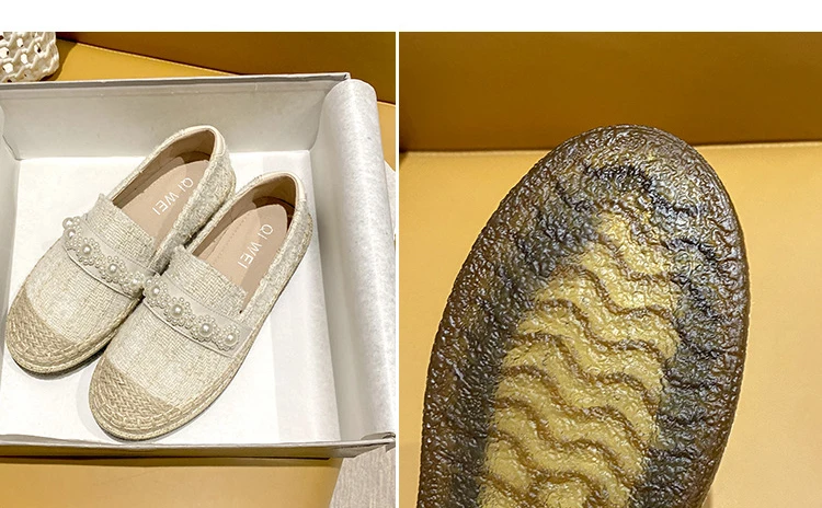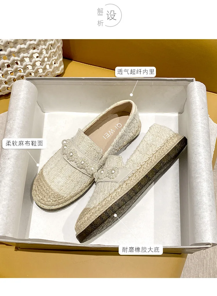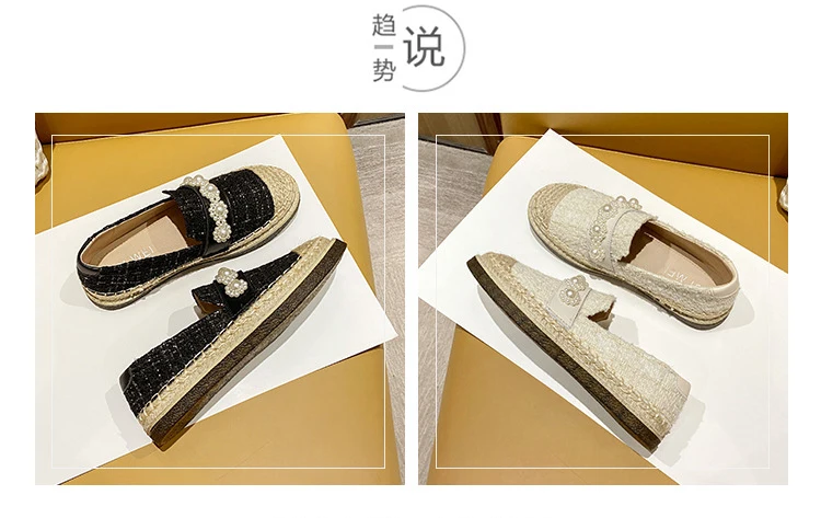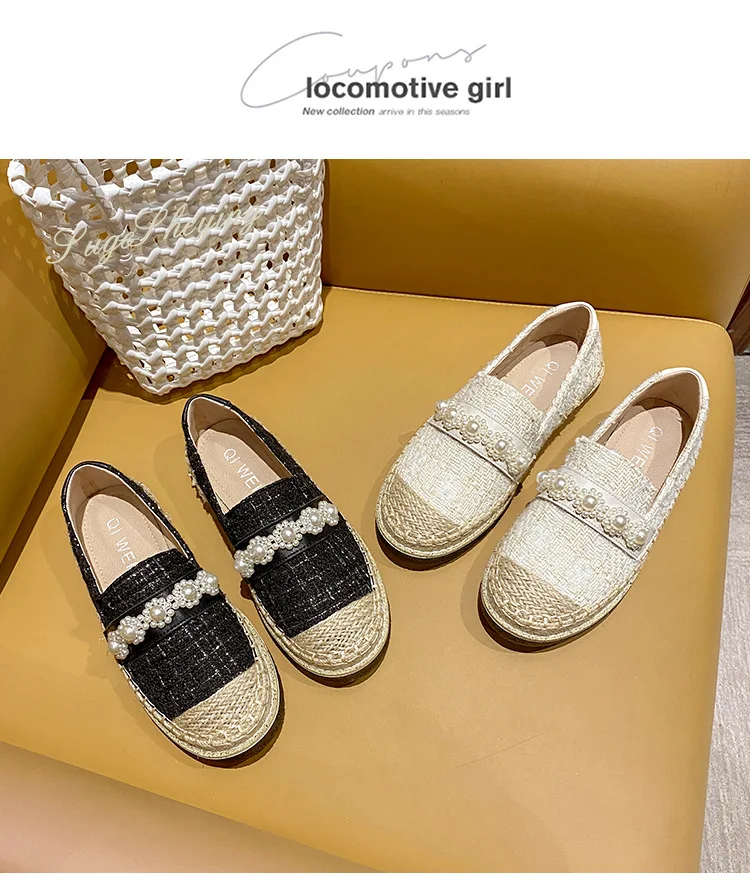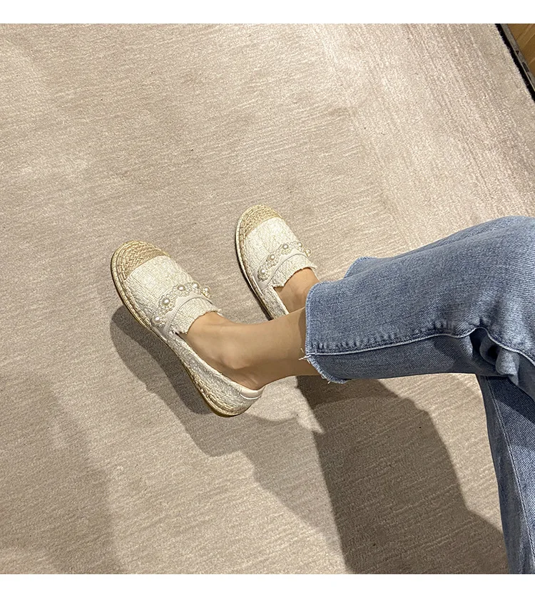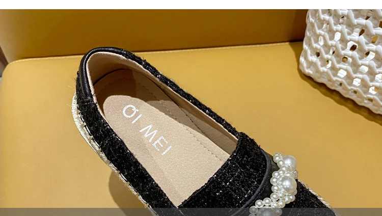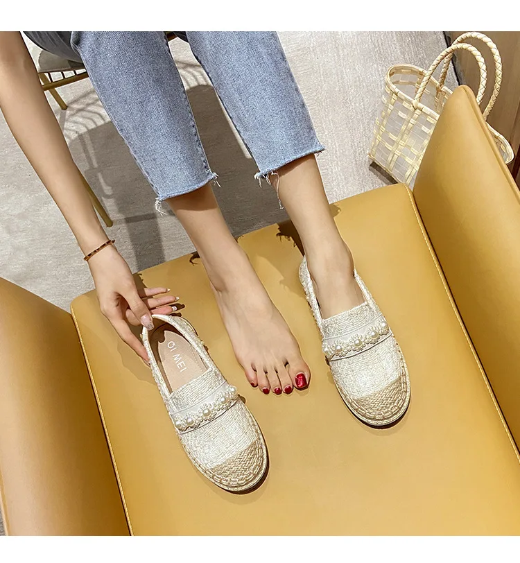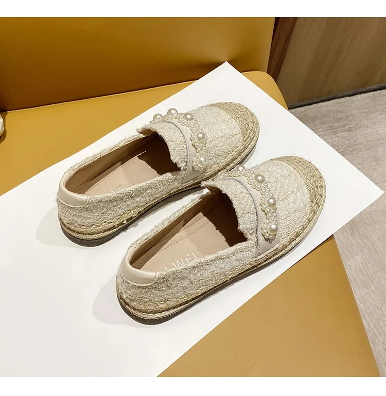 pearl flower decoration espadrilles women flats sequines cloth round toe moccasins famous designer plaid slip on loafers 2022
