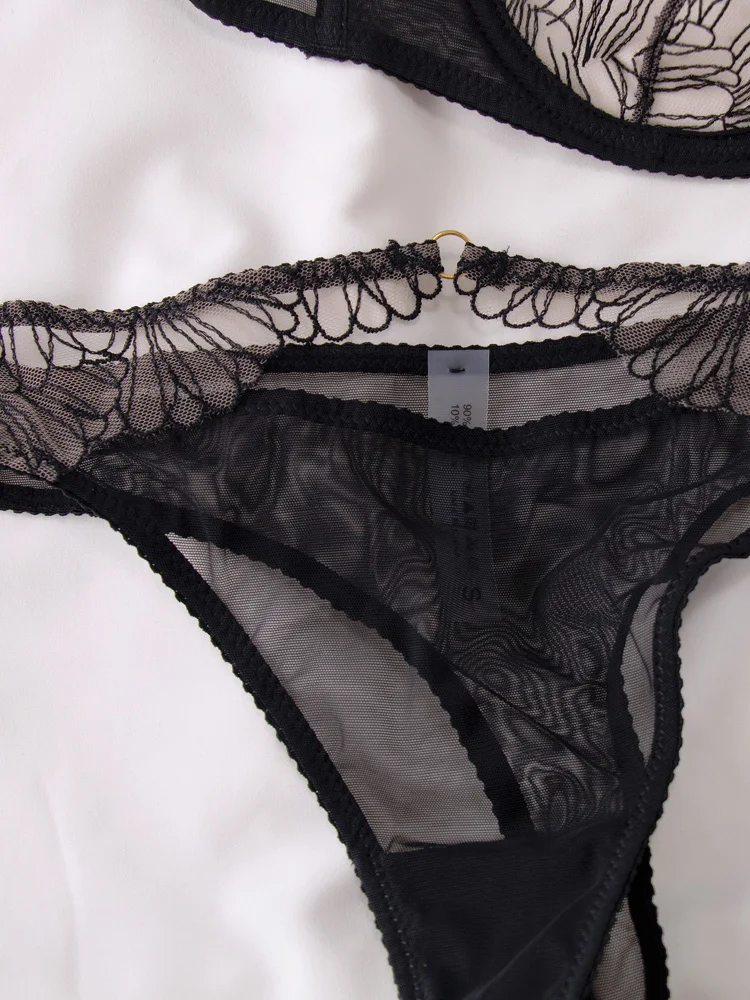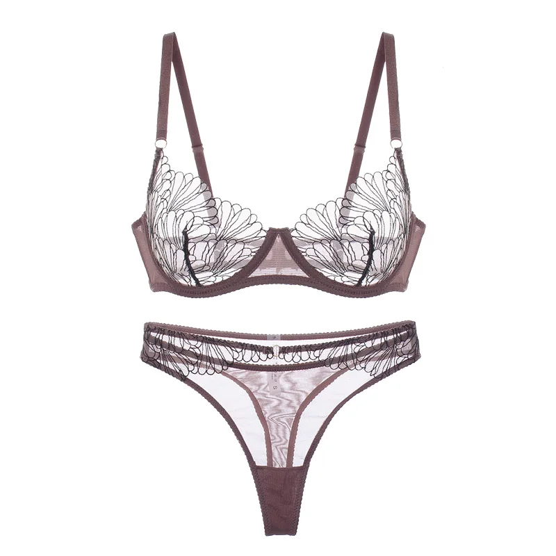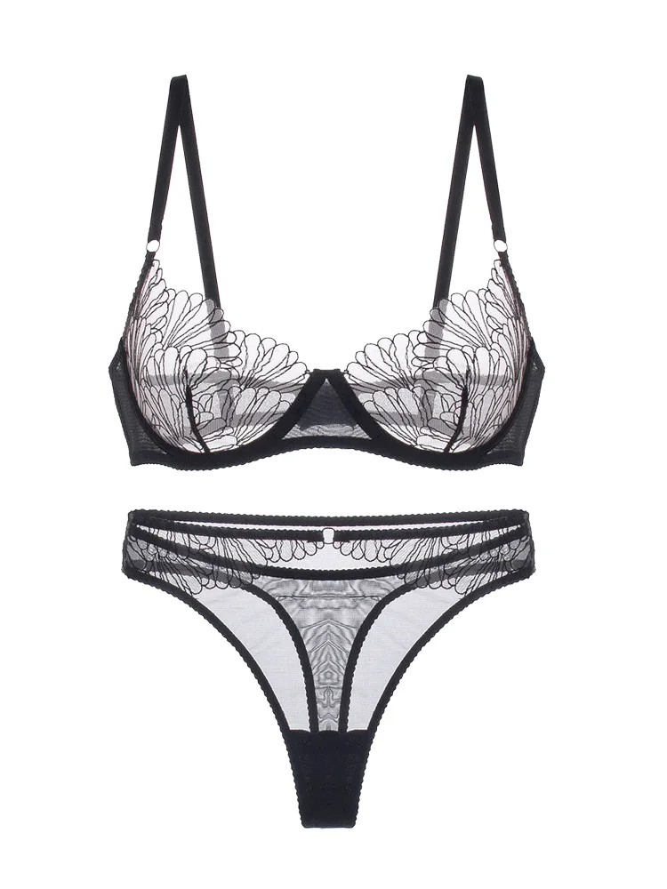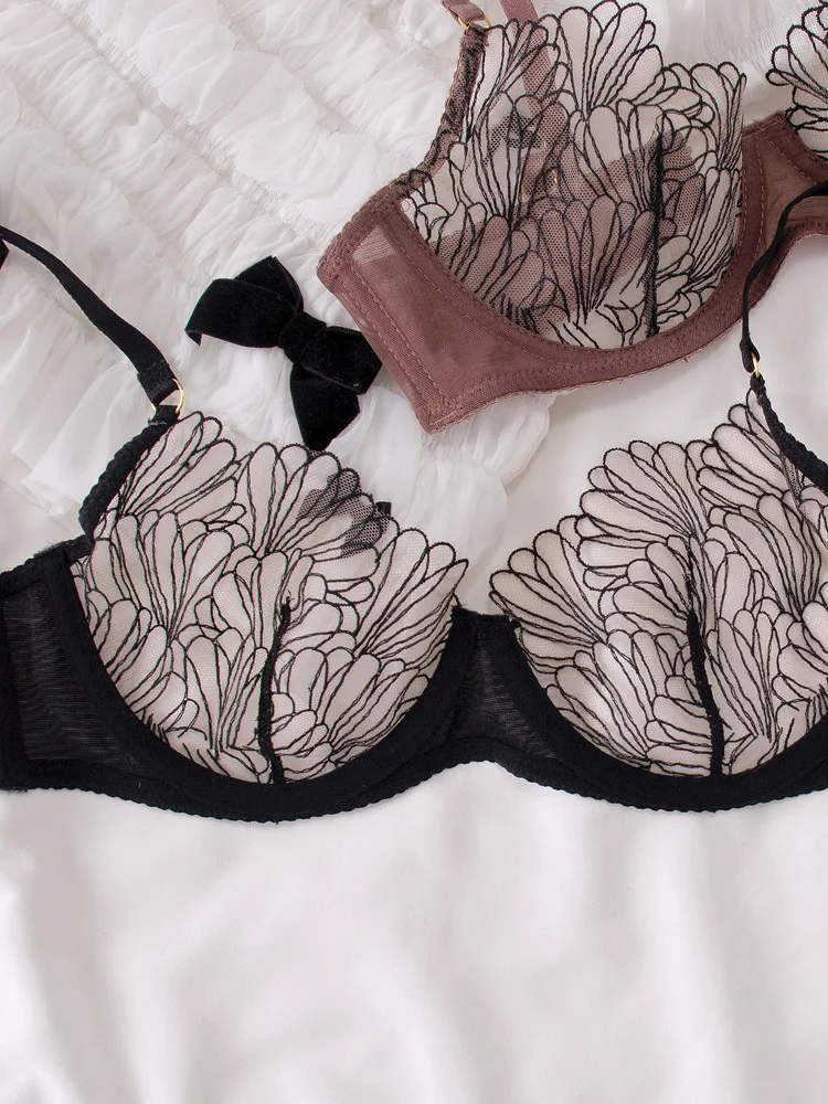Petal underwear sexy lace bralette panties thin transparent bra set female large size thin lingerie with underpants suit