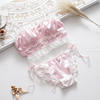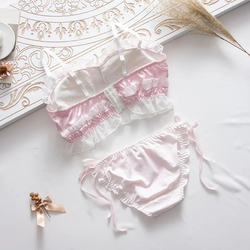 Pink bra set for teenage students thin molded cup lingerie solid color lace-up triangle cup bra underwear sets