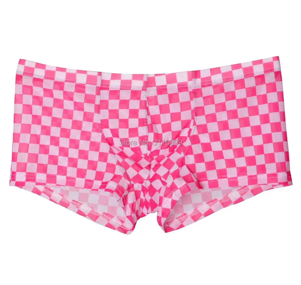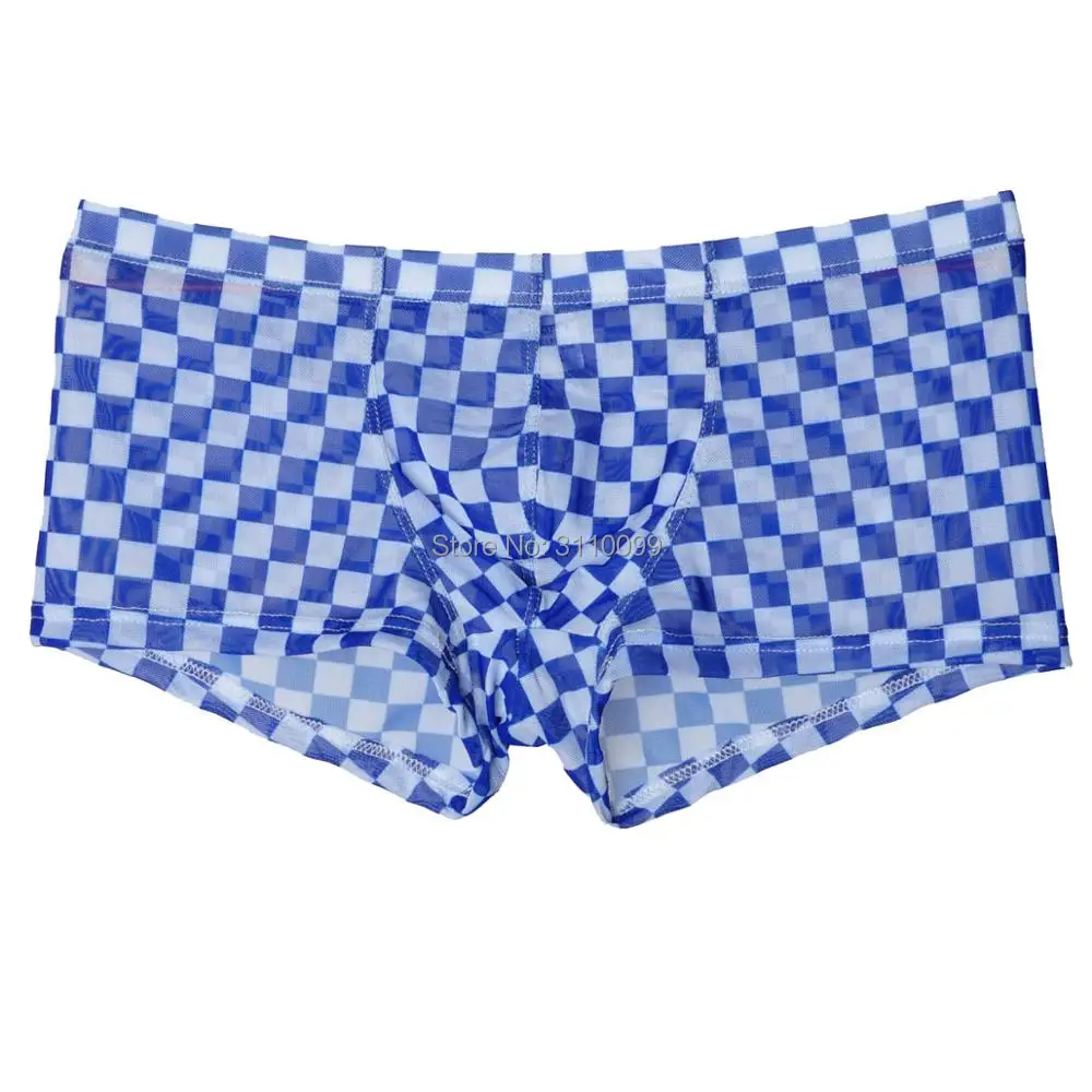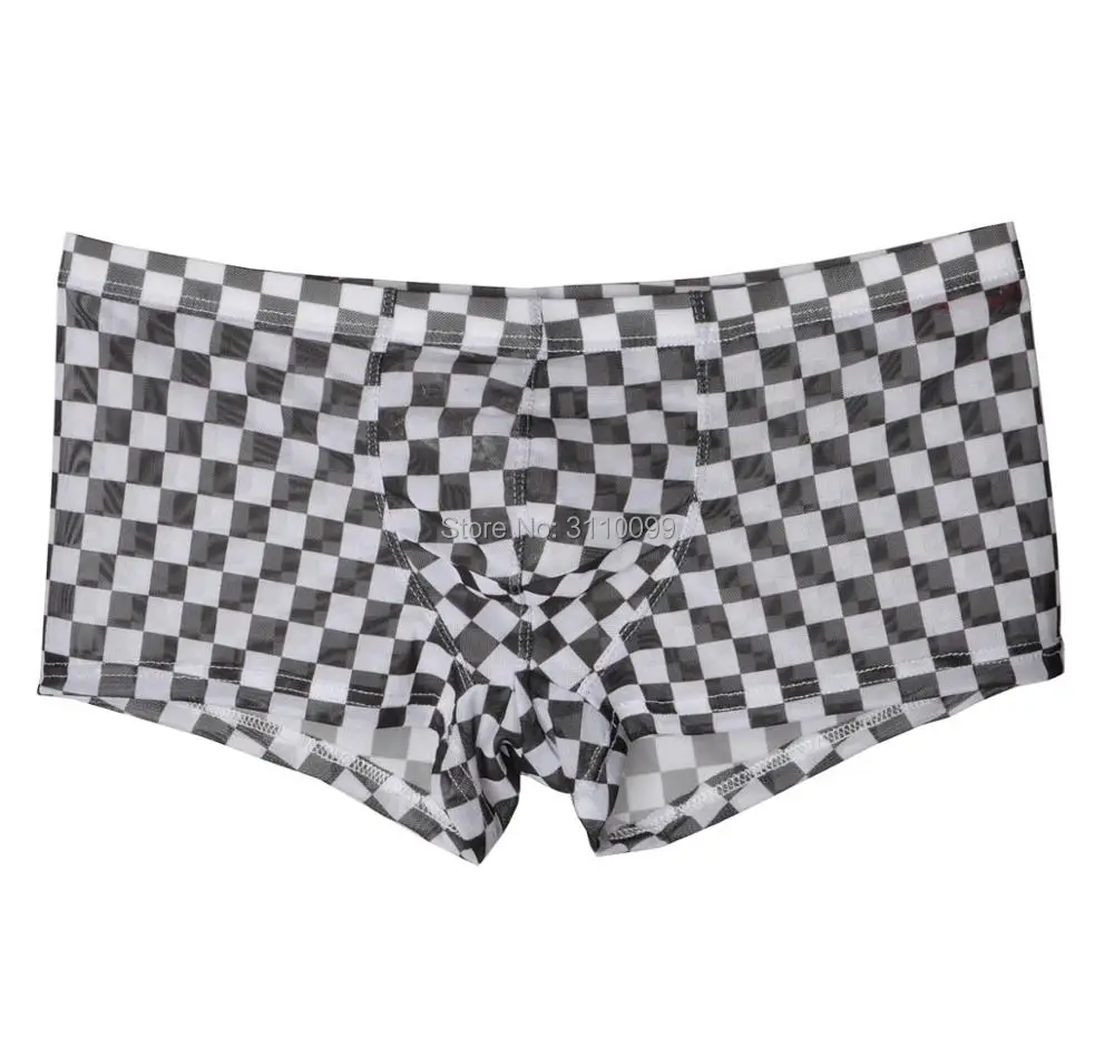 Plaid Pattern Fashion Casual Mens Underwear Boxer Shorts Transparent See Through Sexy Male Underwear Underpants Men Boxers Pouch TS216