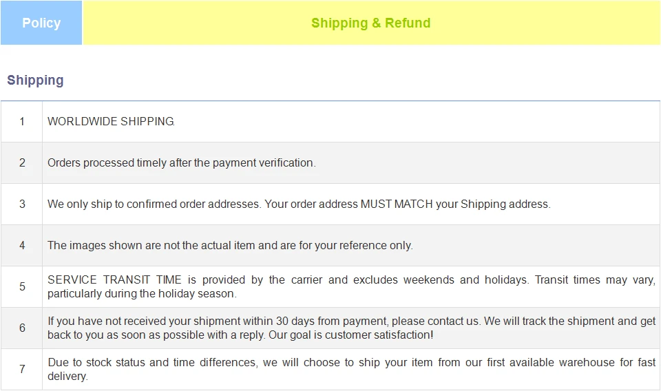 *You can submit refund requests within 15 days after the guaranteed period for delivery (45 days) has expired. You can do it by sending a message on Contact Us page
