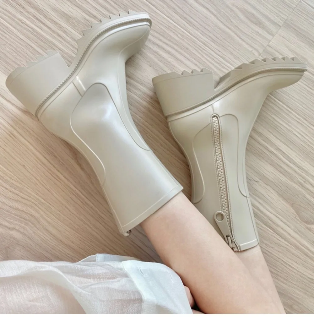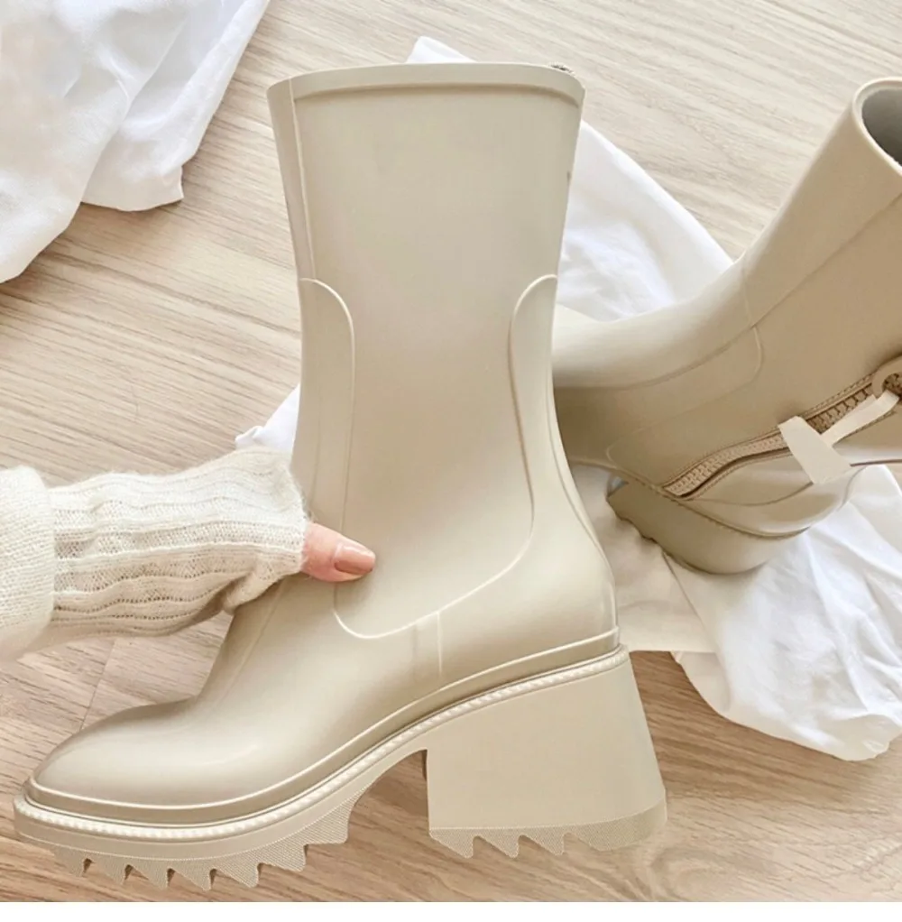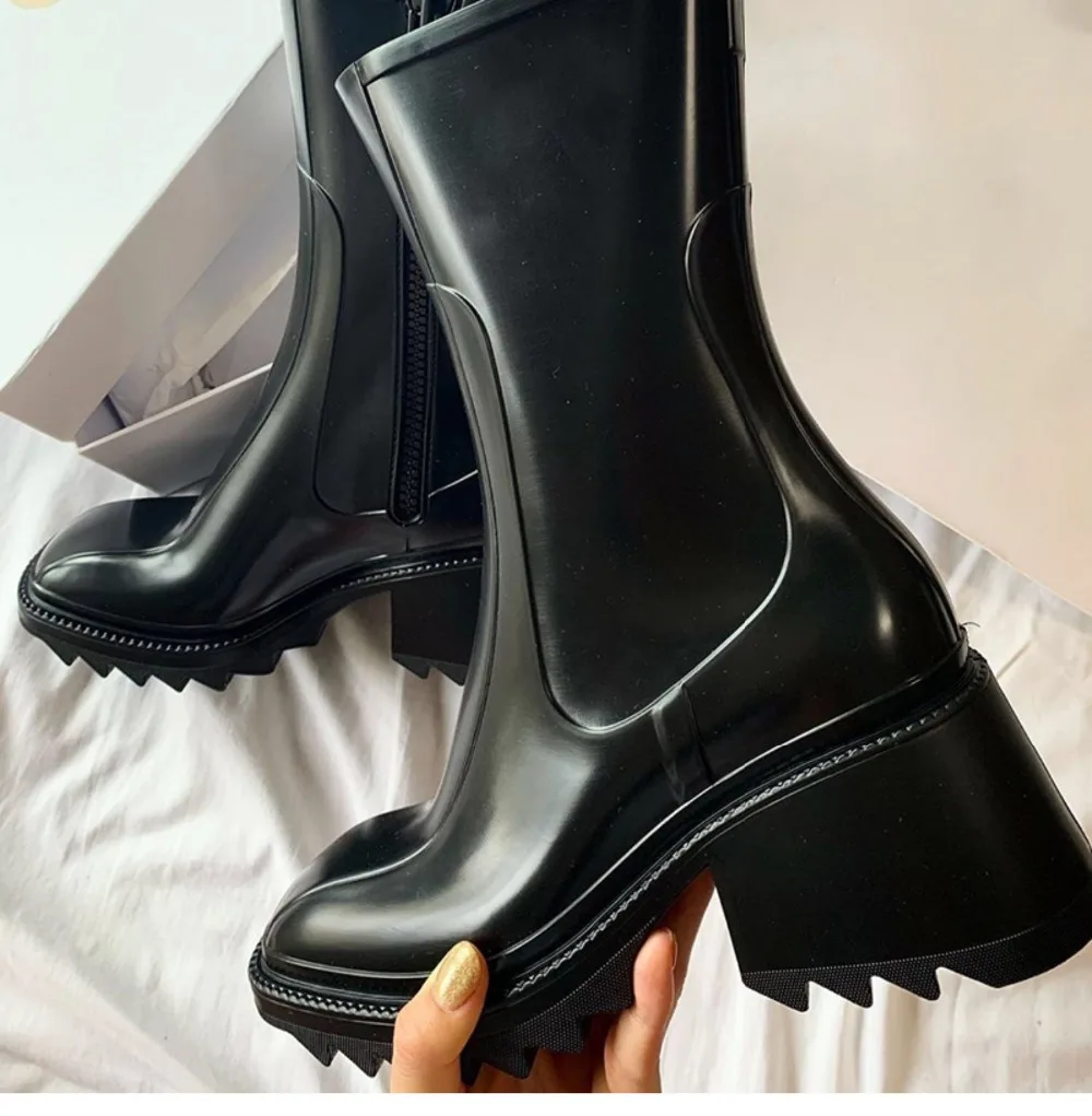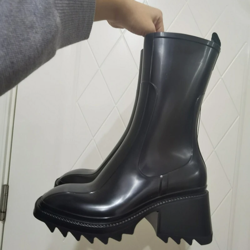 Platform Shoes Woman Chunky High Heels Square Toe Boots Woman Mid Calf Botas Mujer Ins Hot Zapatos De Mujer Rain Chelsea Boots