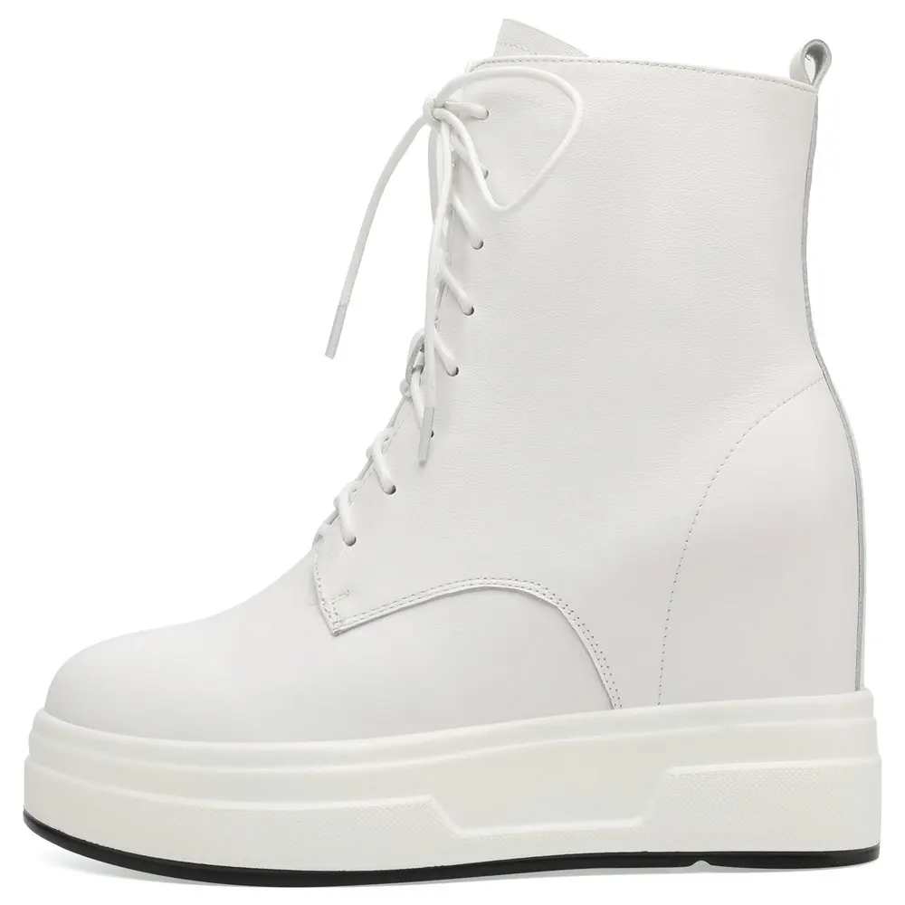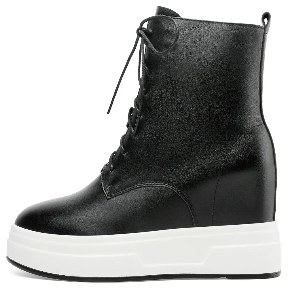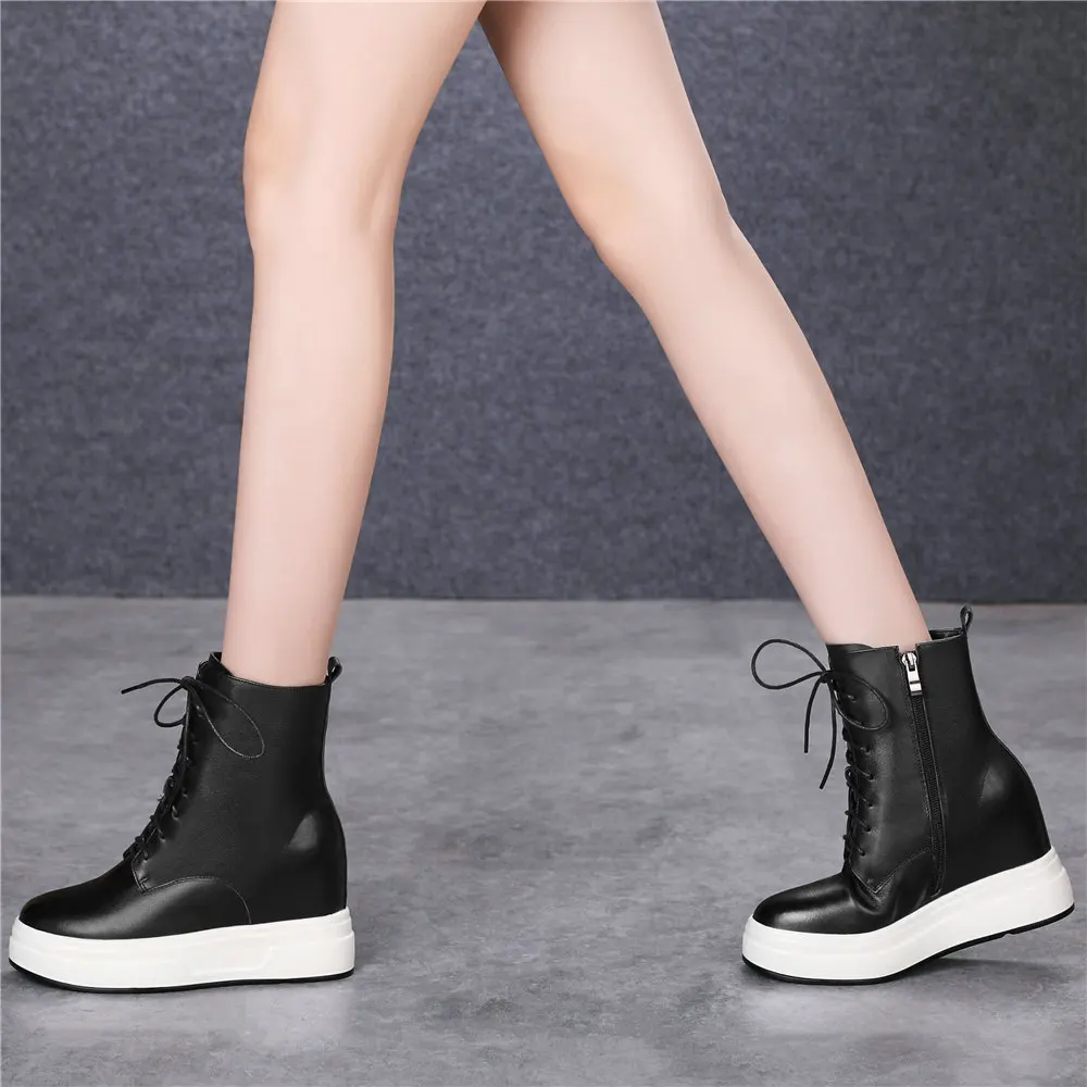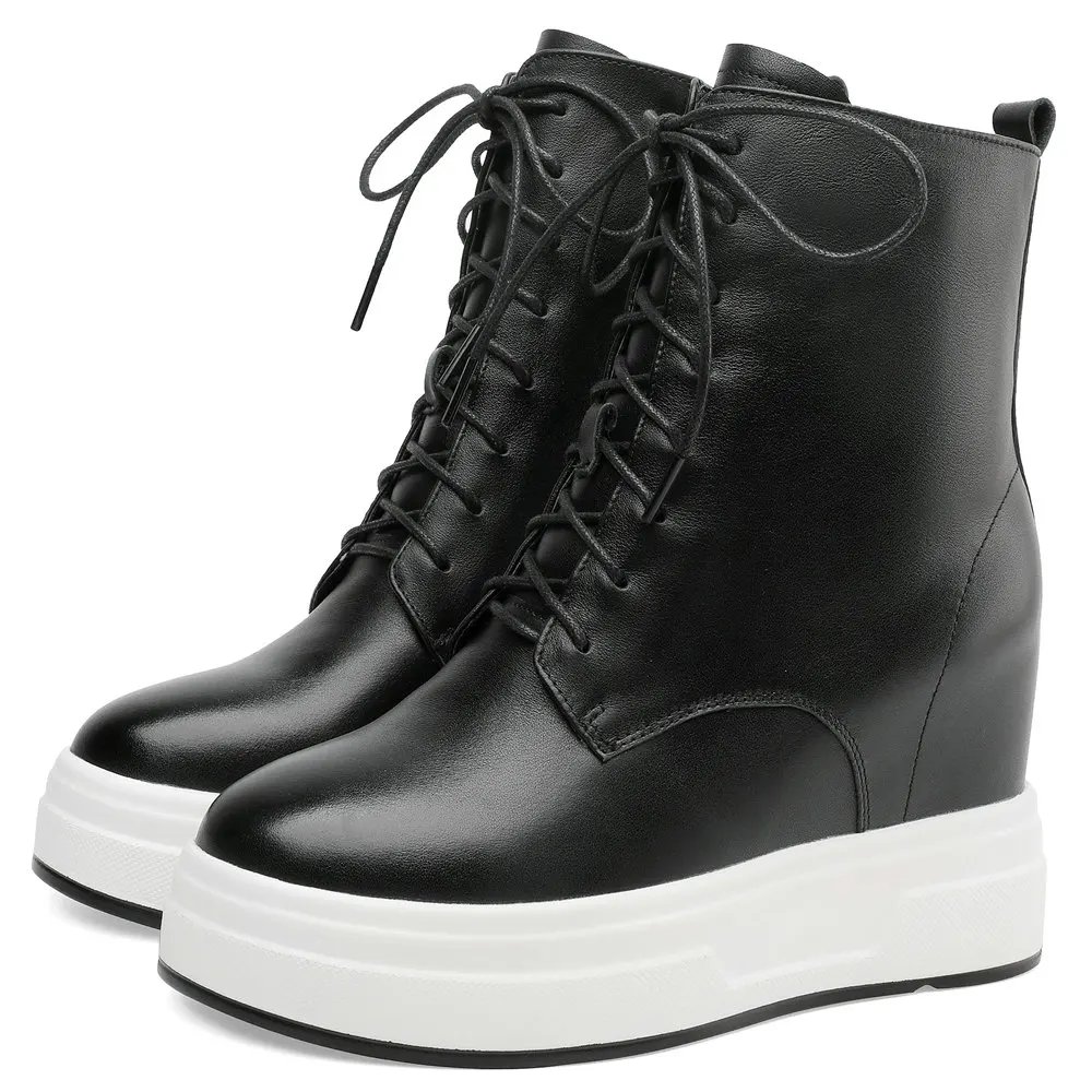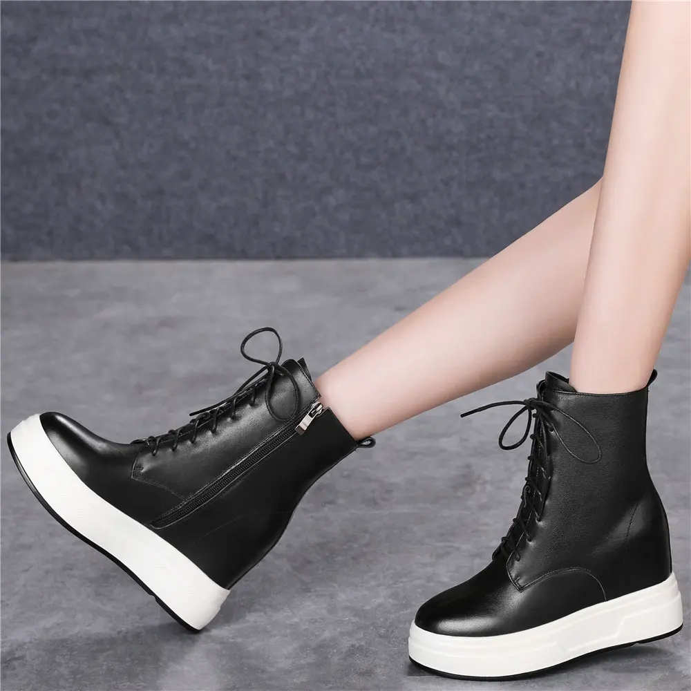 Platform Shoes Women’s Genuine Cow Leather Ankle Boots Thick Sole Creeper Boots Military Oxfords High Heels Punk Goth 34-40